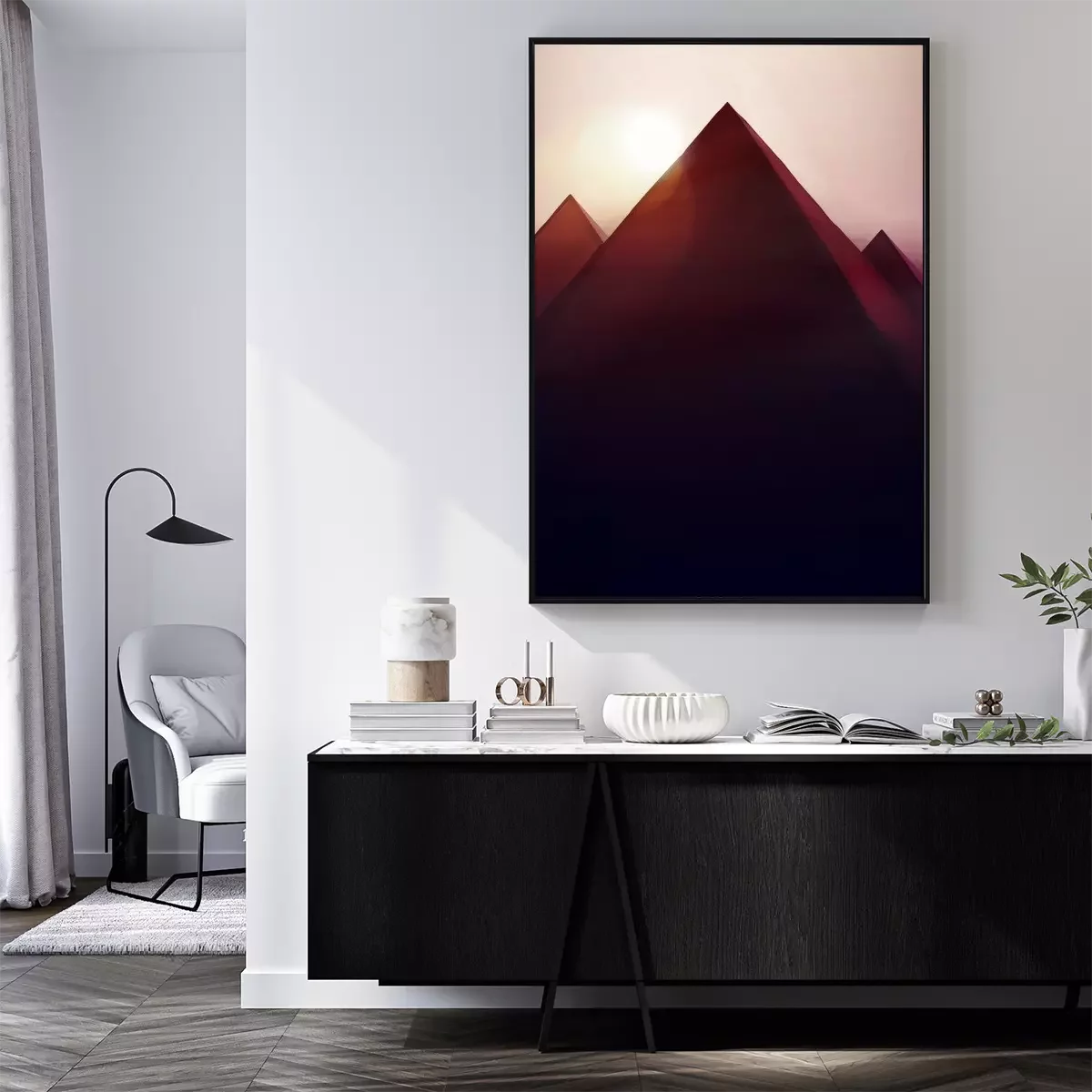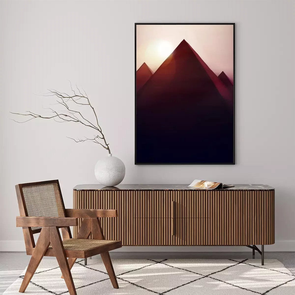 Poster Afrika drei Pyramiden auf dem Hintergrund der Sonne