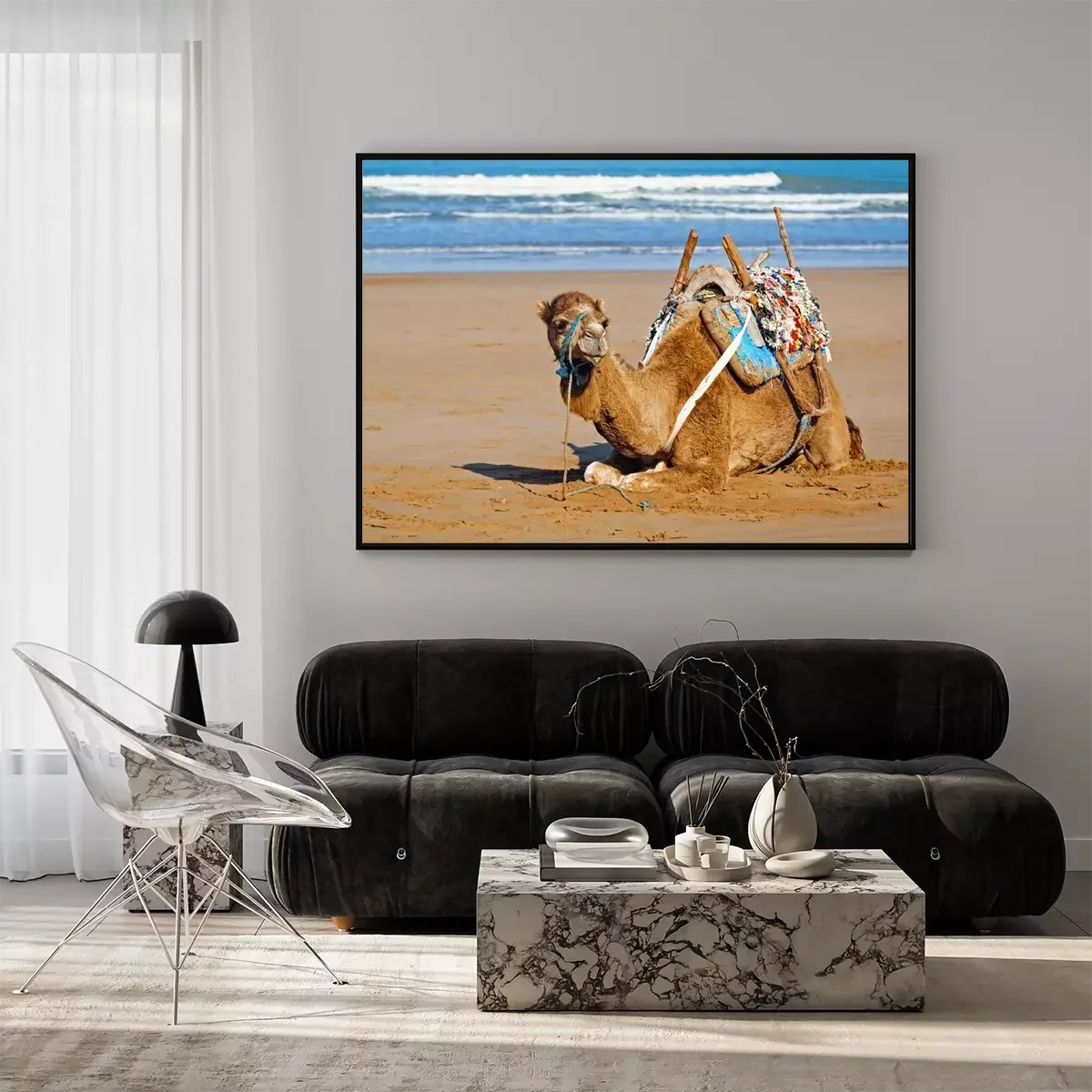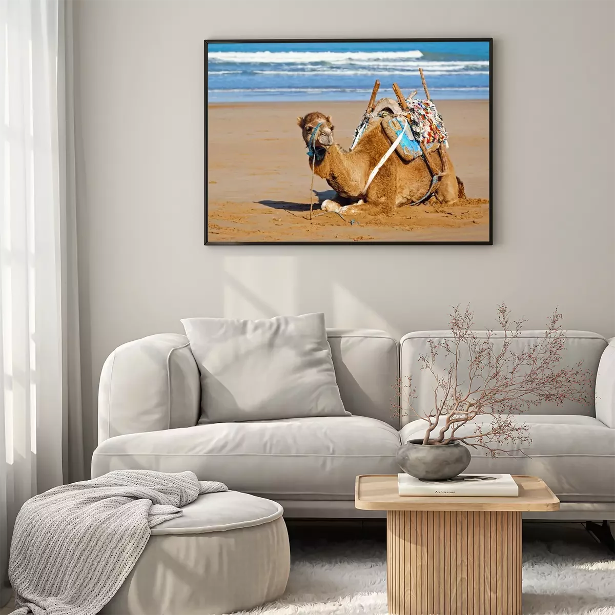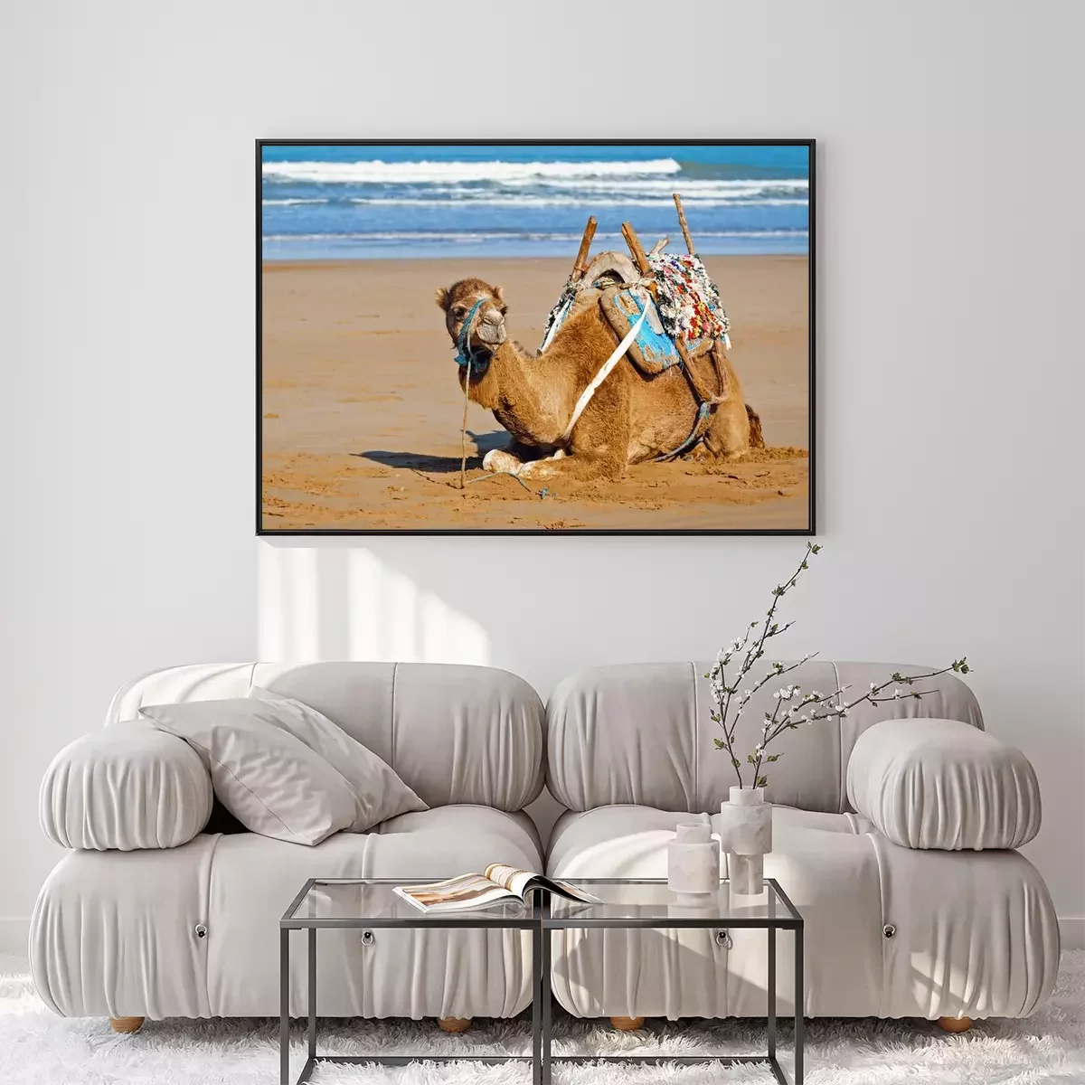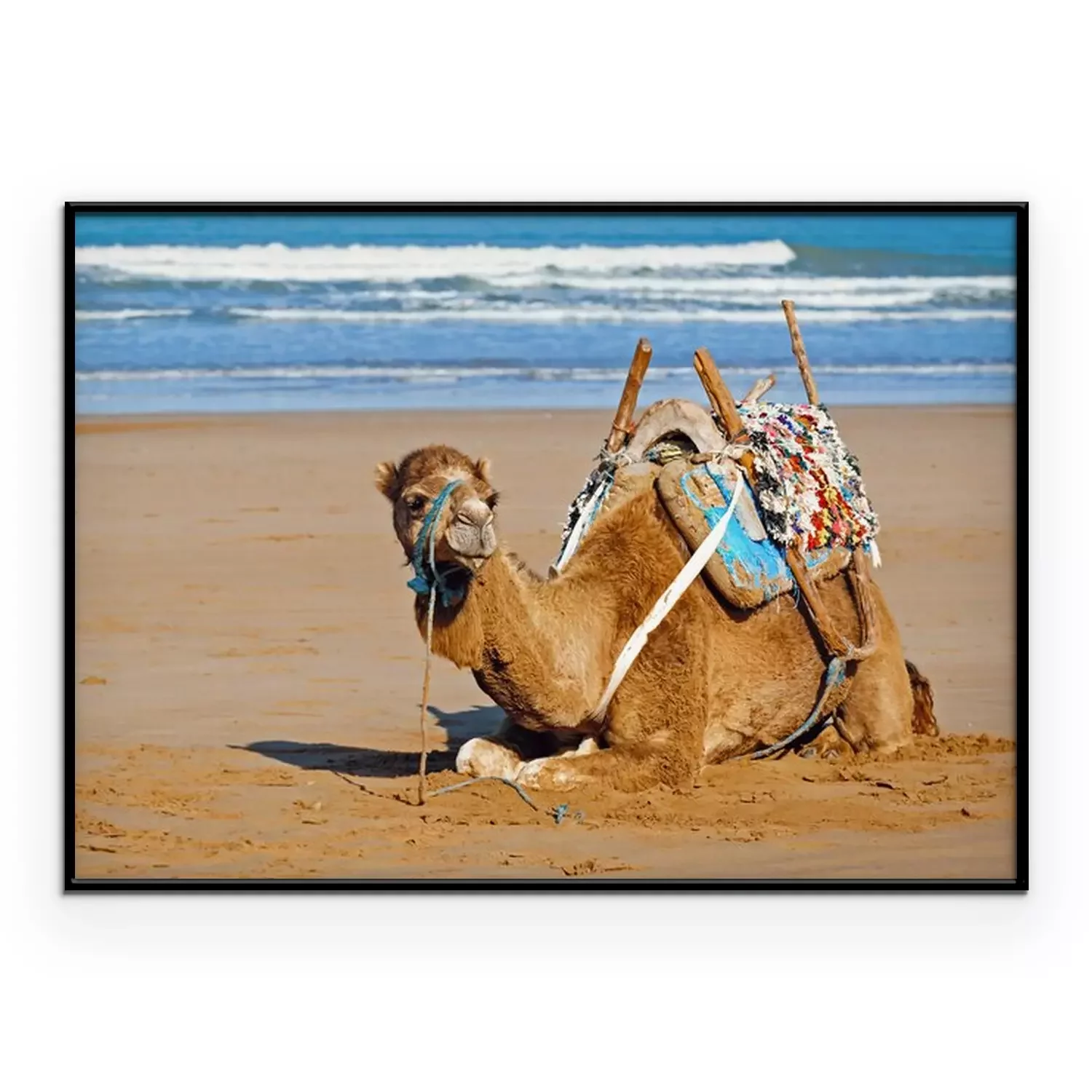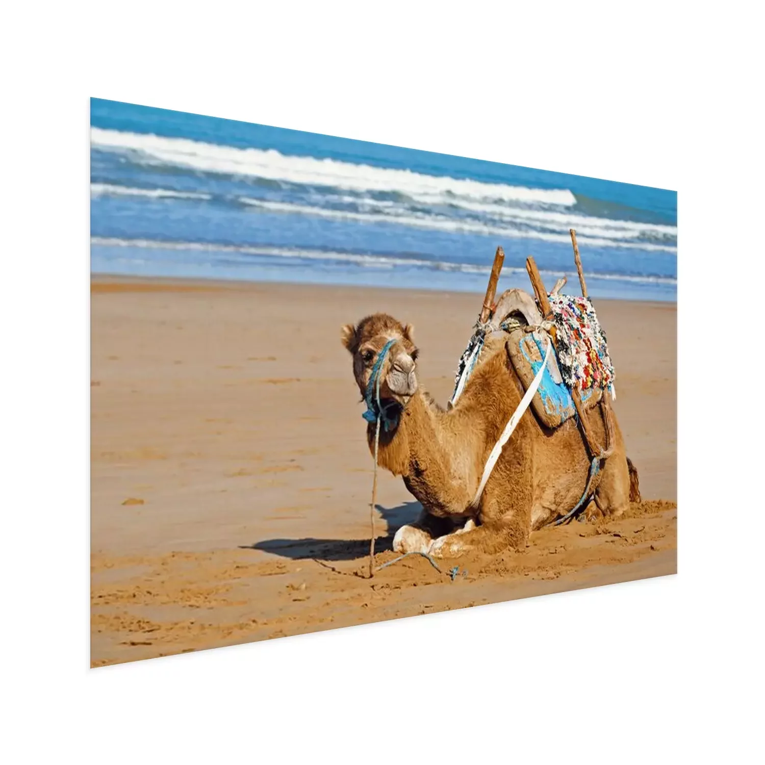 Poster: Afrika ein Kamel, das sich am Meeresufer ausruht