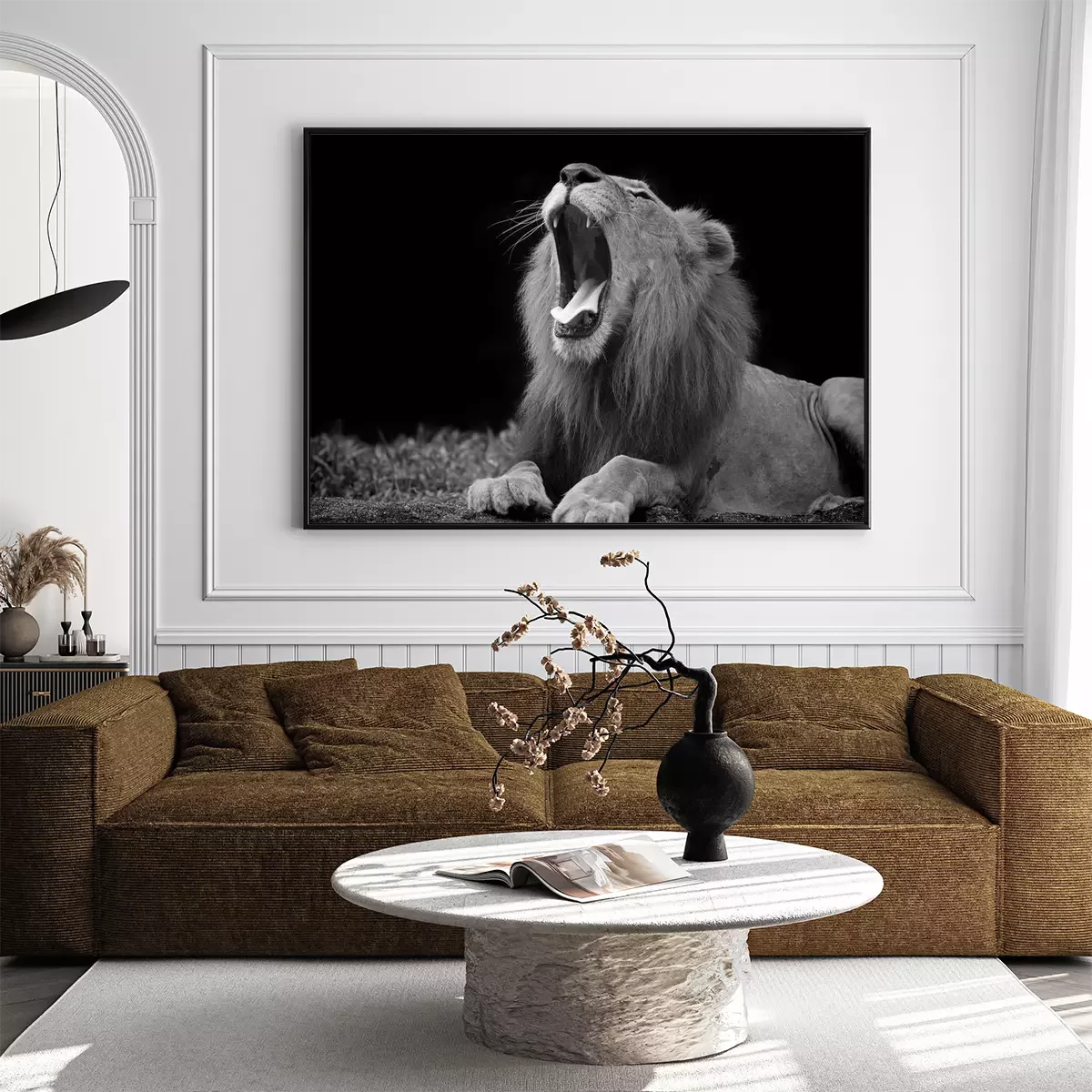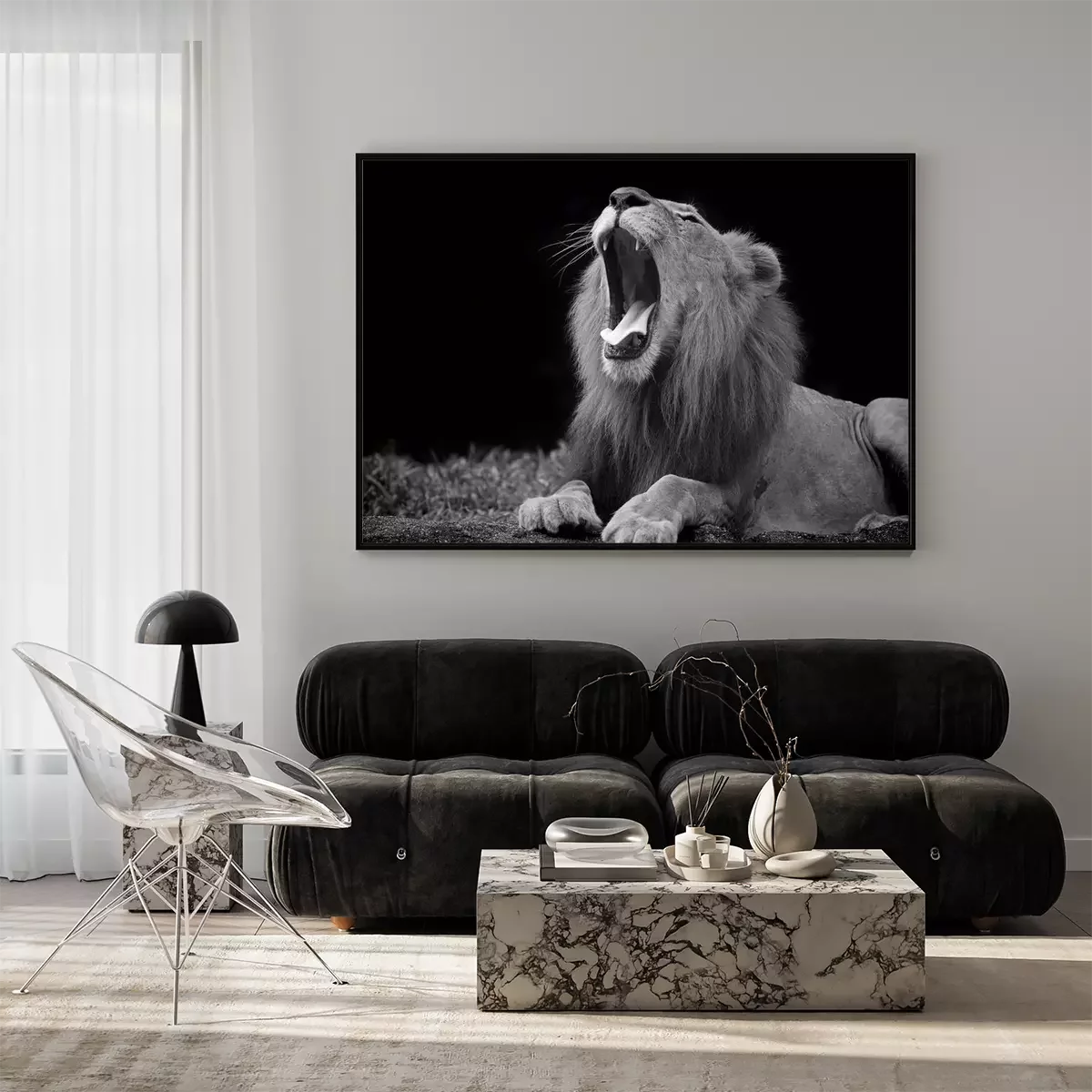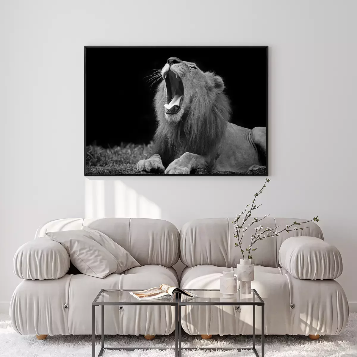 Poster: Afrika Tiere Löwe auf dem Schwarz-Weiß-Foto