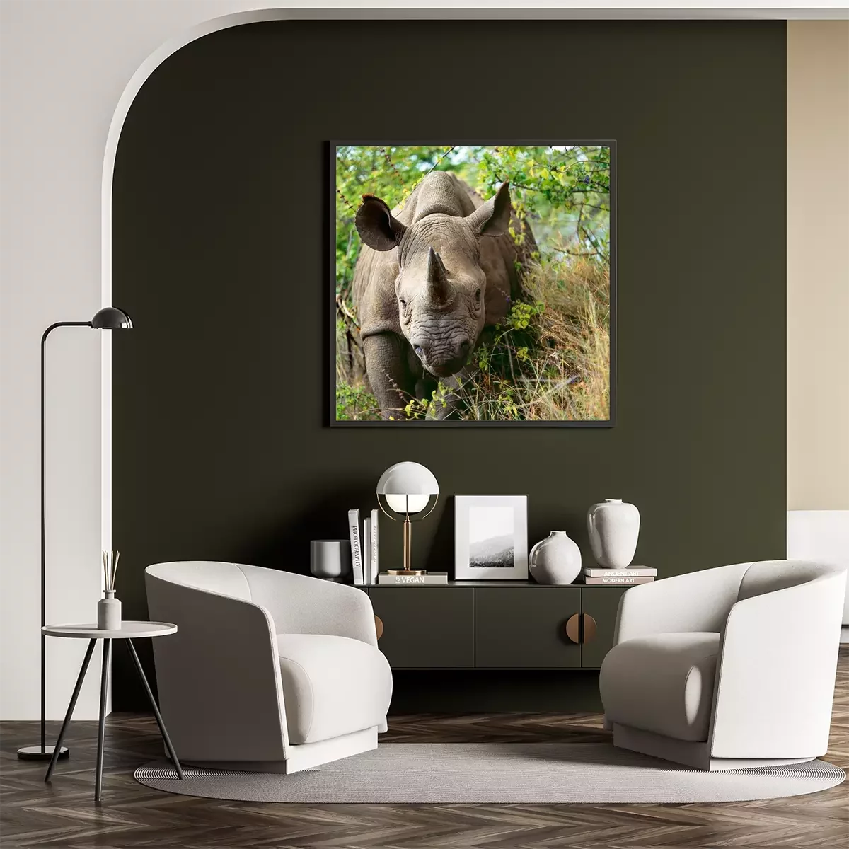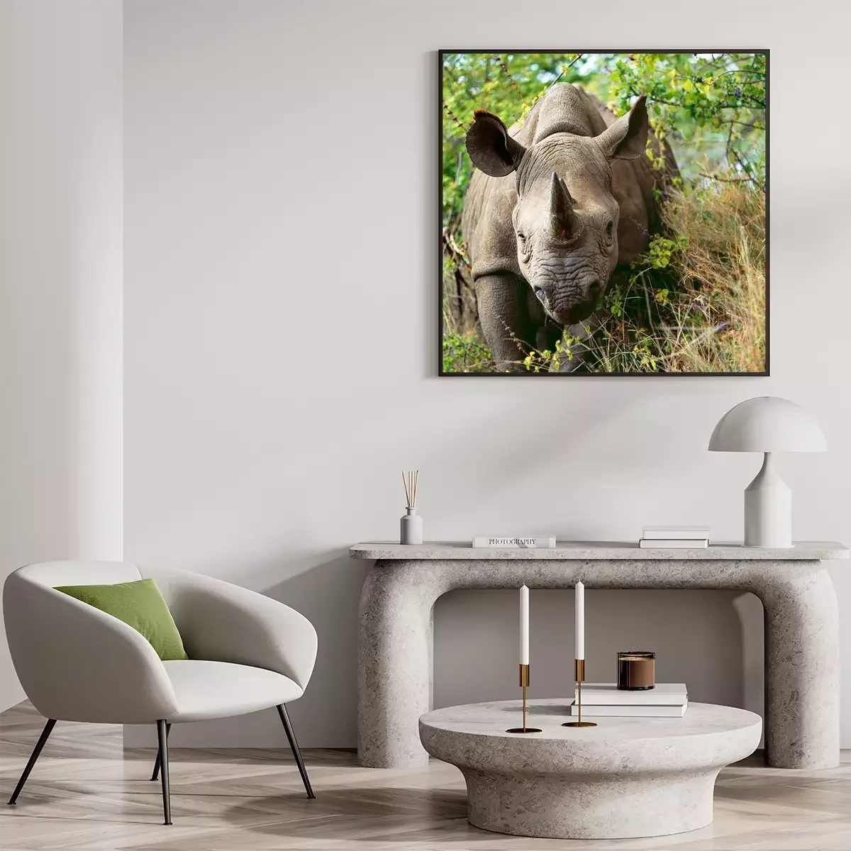 Poster Afrika Tiere Nashörner im Grünen