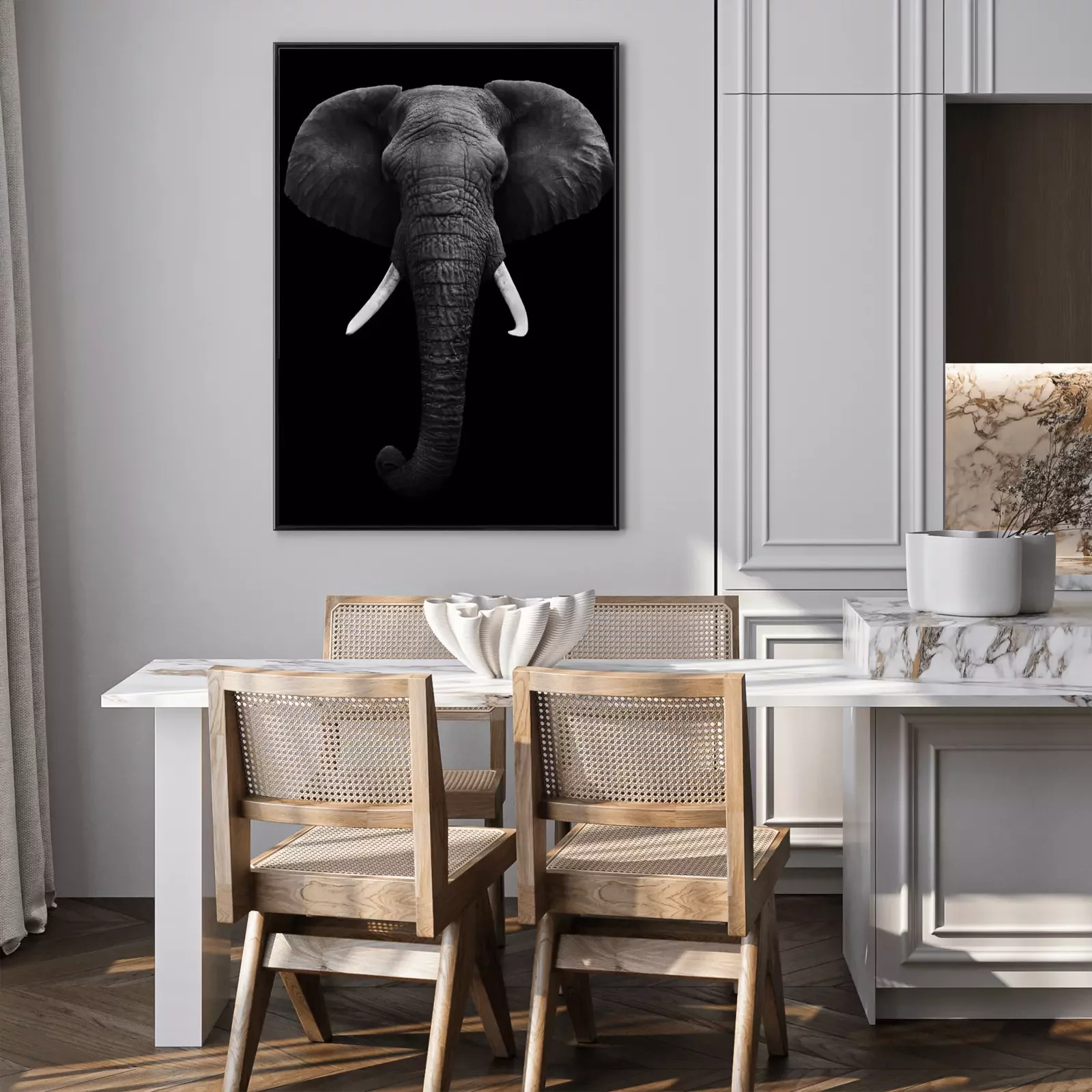 Poster Afrikanischer Elefant auf schwarzem Hintergrund