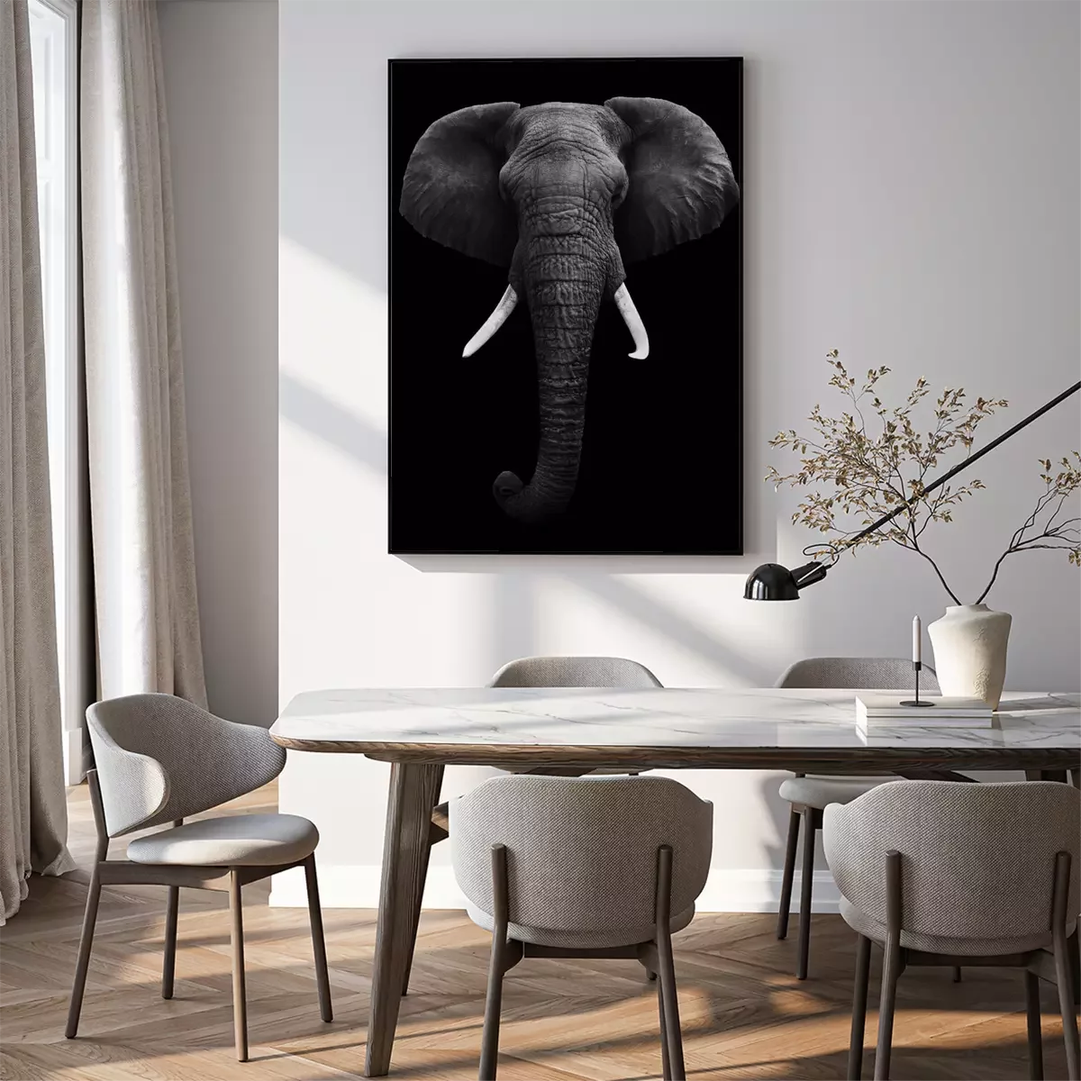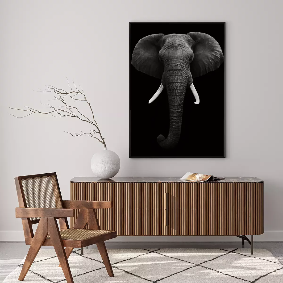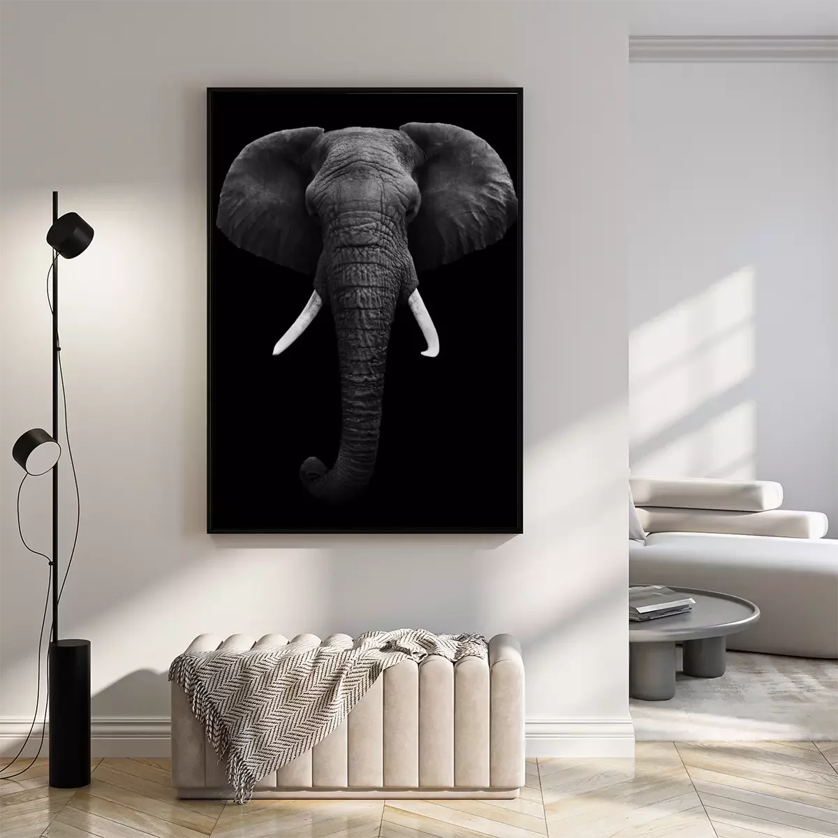 Poster: Afrikanischer Elefant auf schwarzem Hintergrund