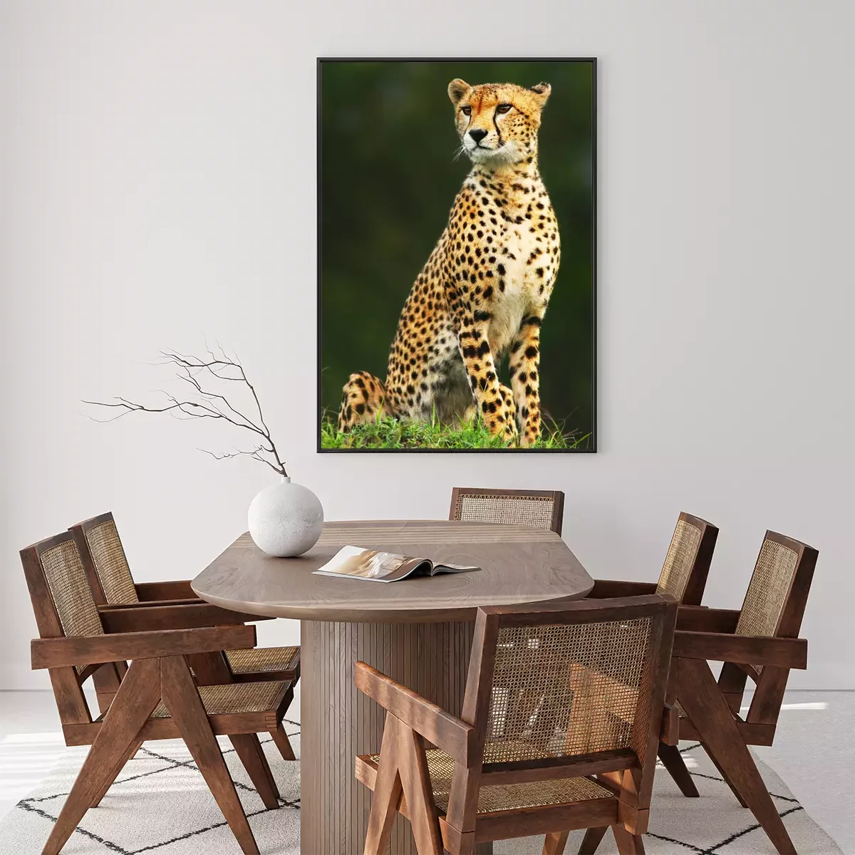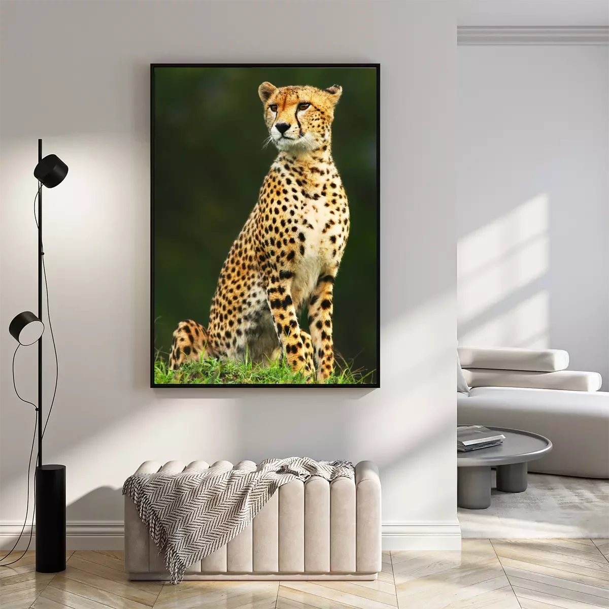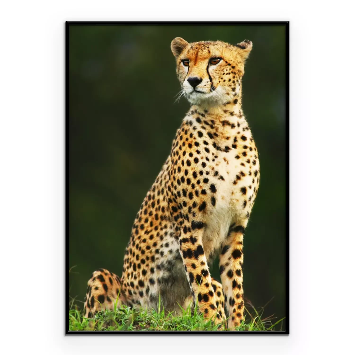 Poster: Afrikanischer Gepard sitzend auf dem Gras