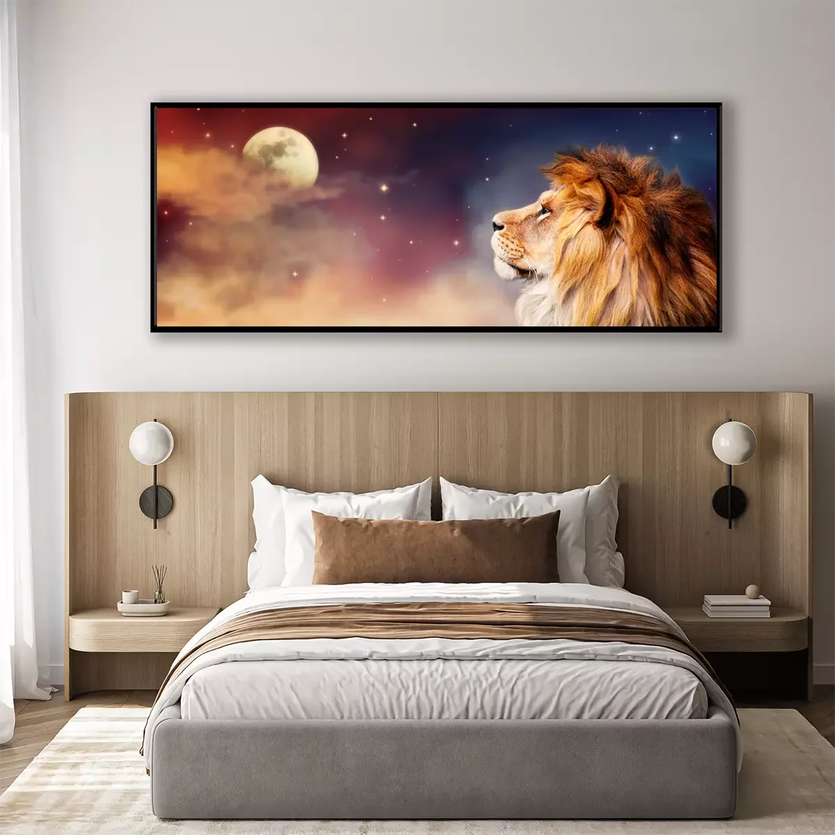Poster: Afrikanischer Löwe schaut den Mond an