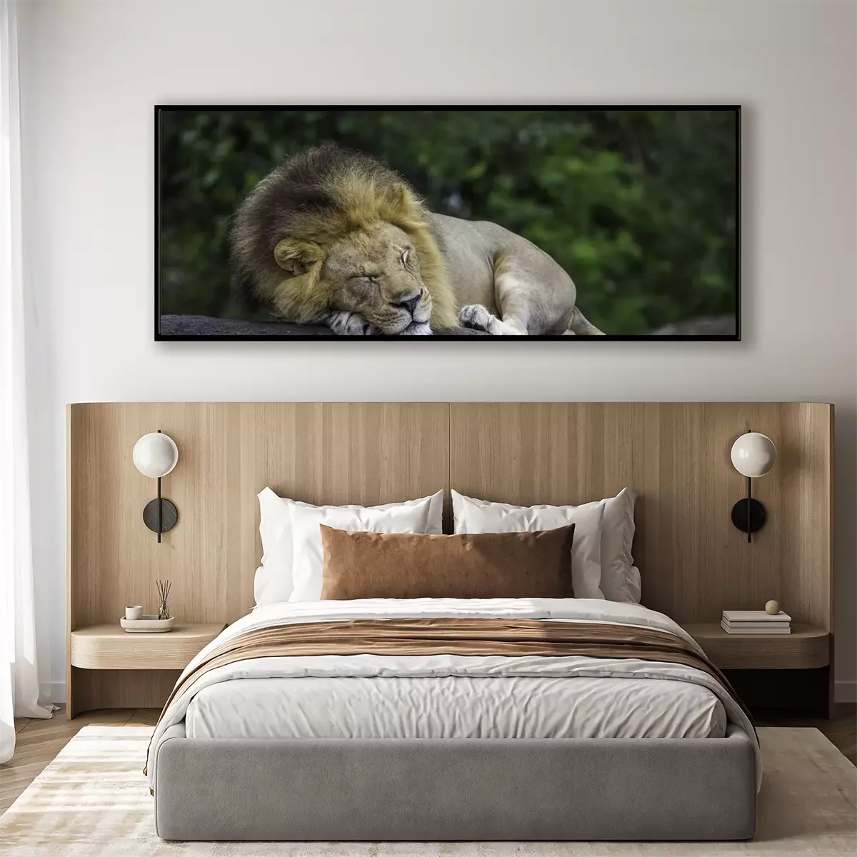 Poster: Afrikanischer Löwe schläft auf Felsen
