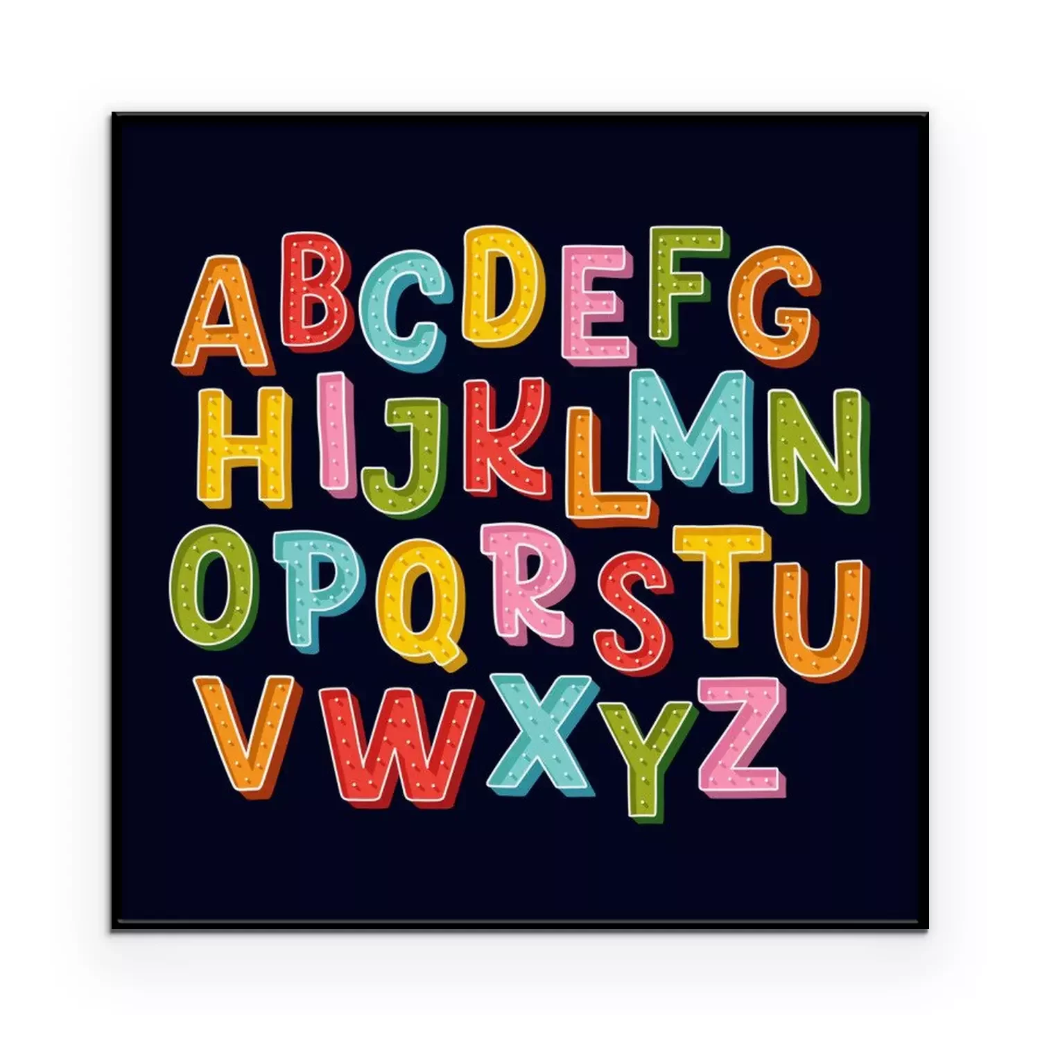 Alphabet in Pastelltönen auf blauem Hintergrund