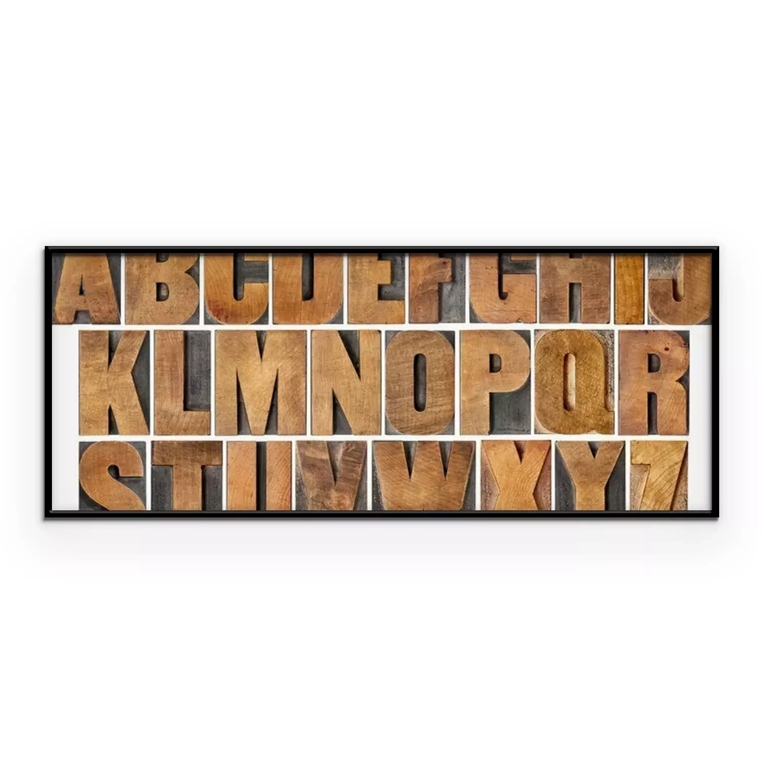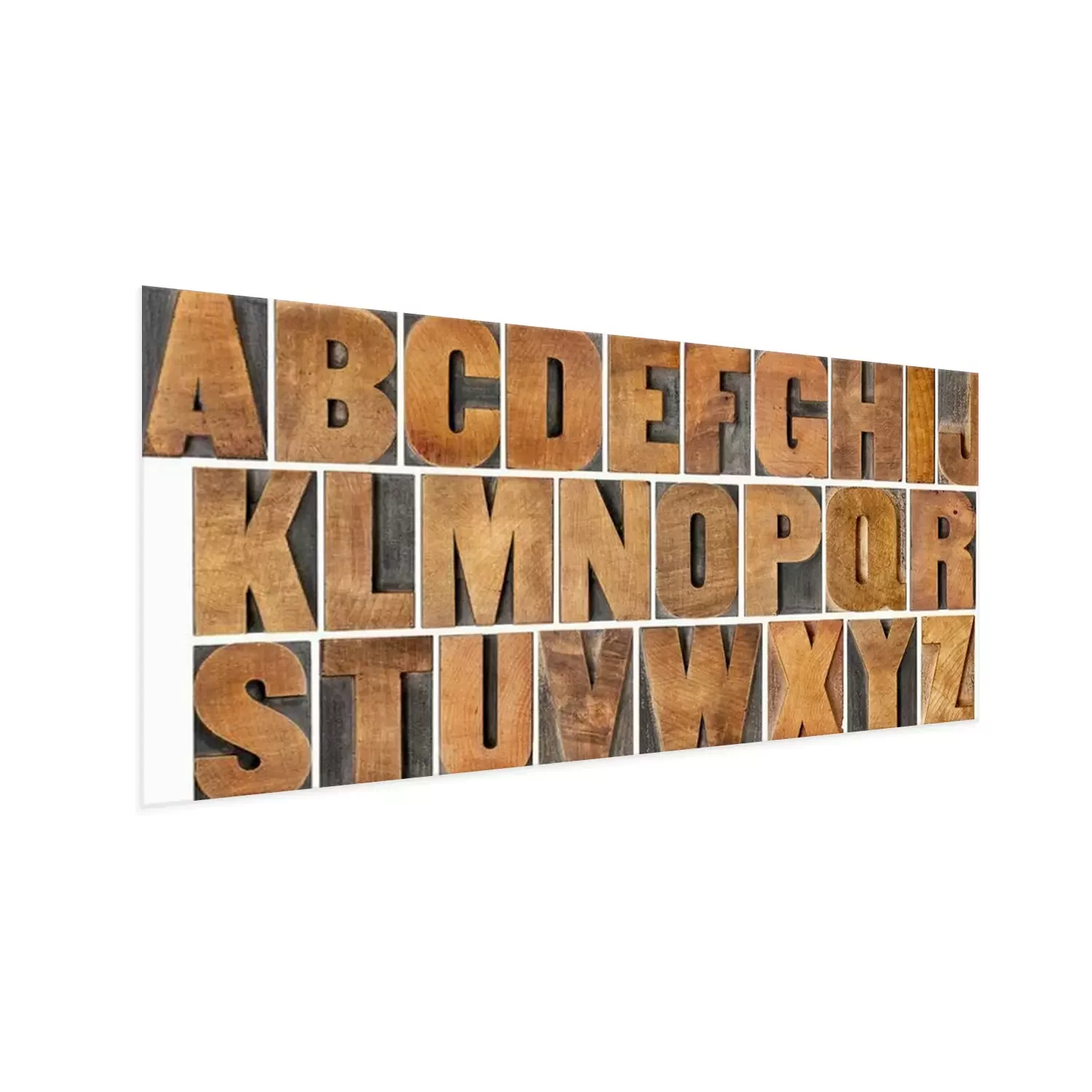 Poster Alphabet Buchstaben aus Holz im Vintage-Stil
