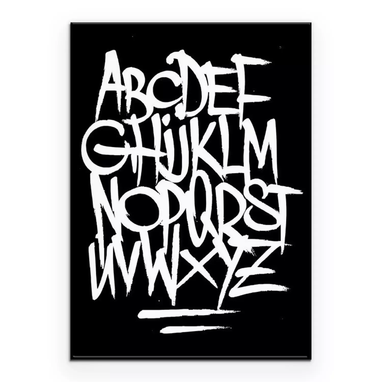 Gedruckte Buchstaben auf schwarzem Hintergrund