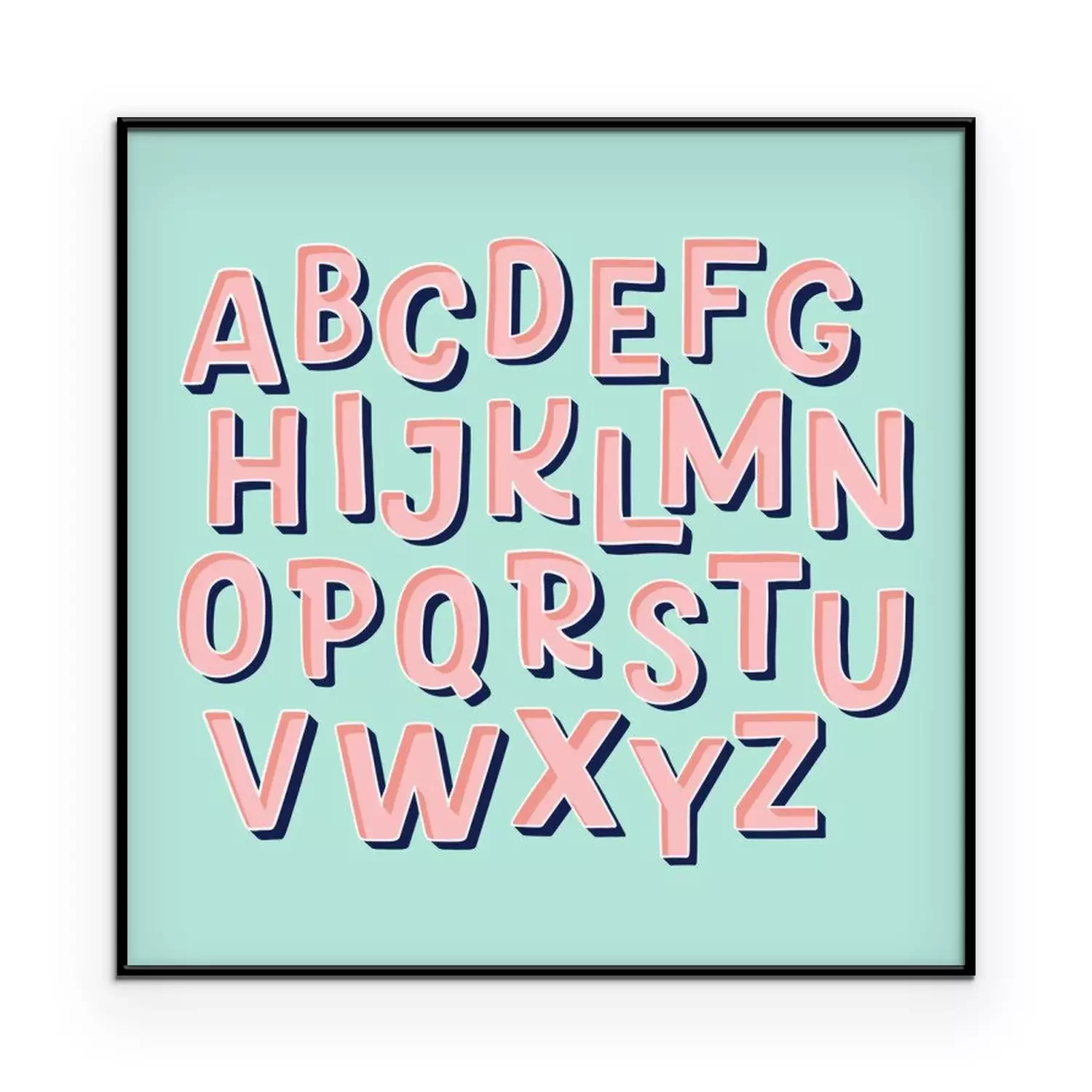 Poster Alphabet in Pastelltönen auf blauem Hintergrund