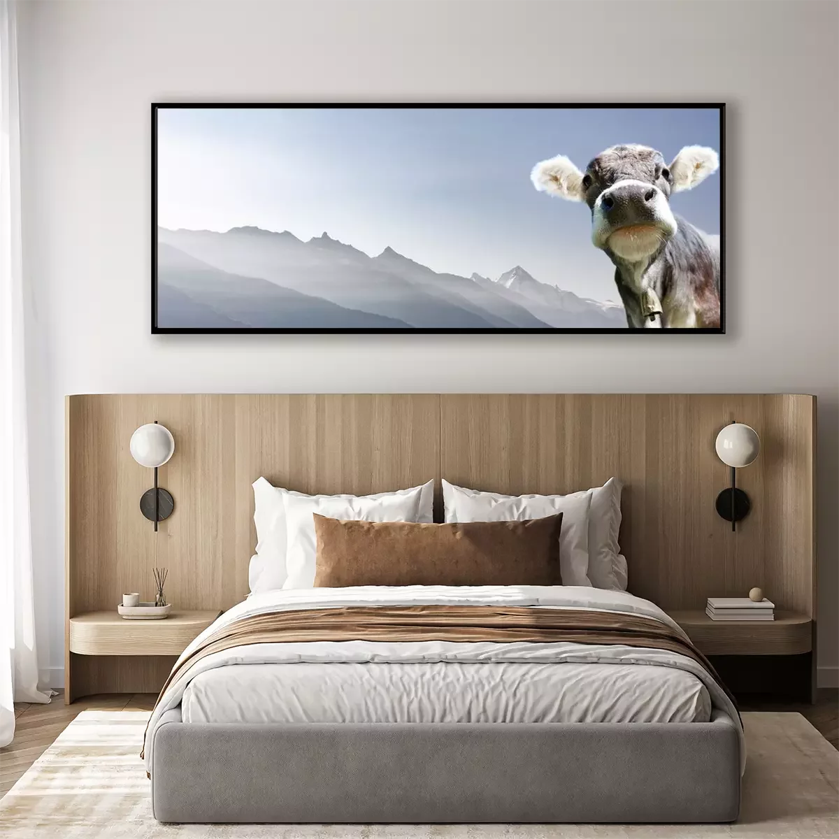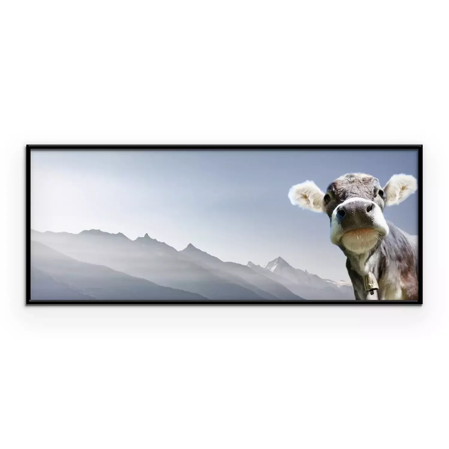 Poster: Alpine Kuh vor dem Hintergrund von Bergen