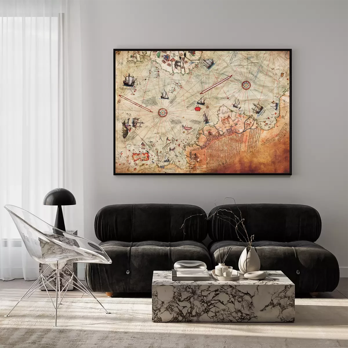 Poster Alte Karte mit Schiffen