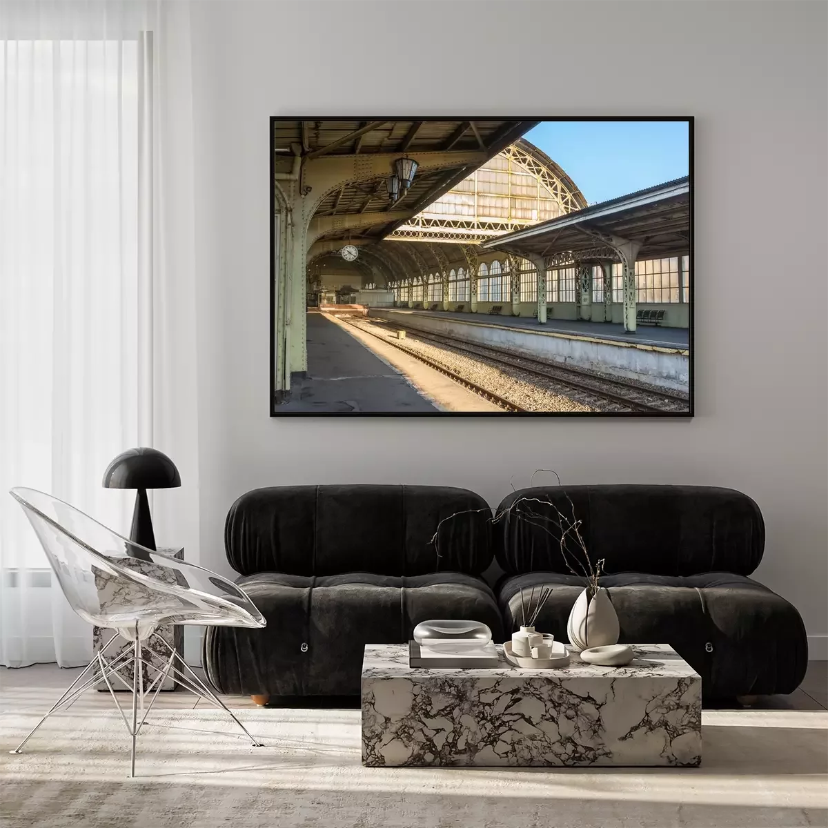 Poster: Alter Bahnhof mit leeren Bahnsteigen