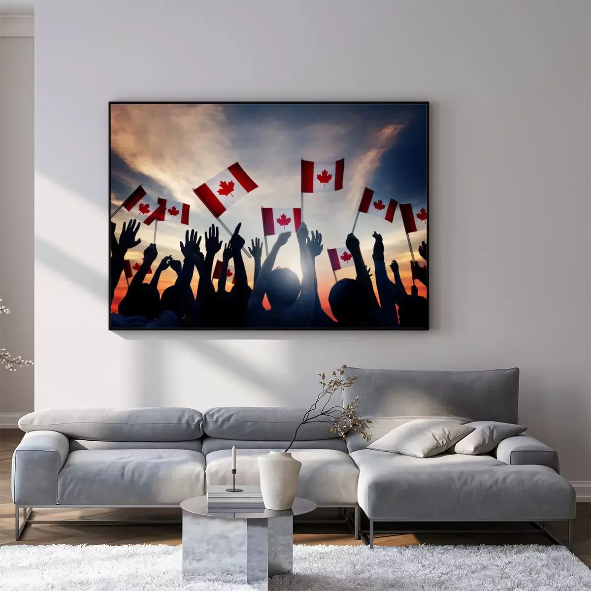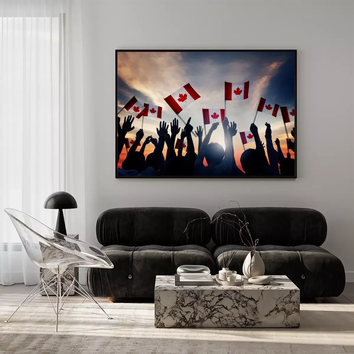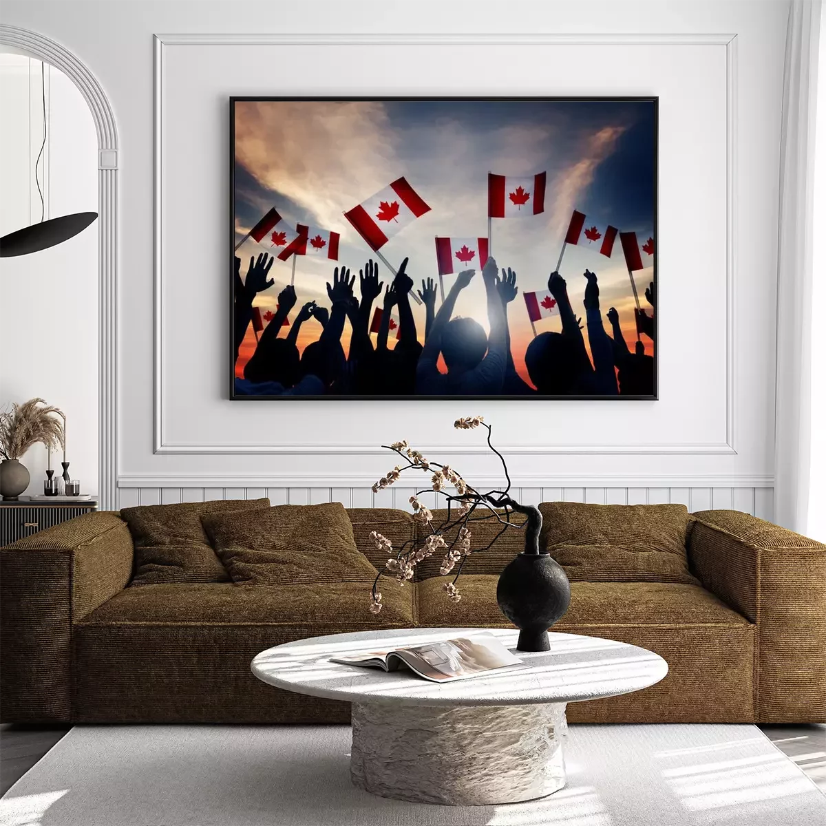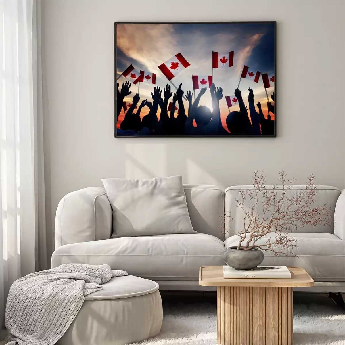 Poster Amerika Menschenmenge mit kanadischen Flaggen