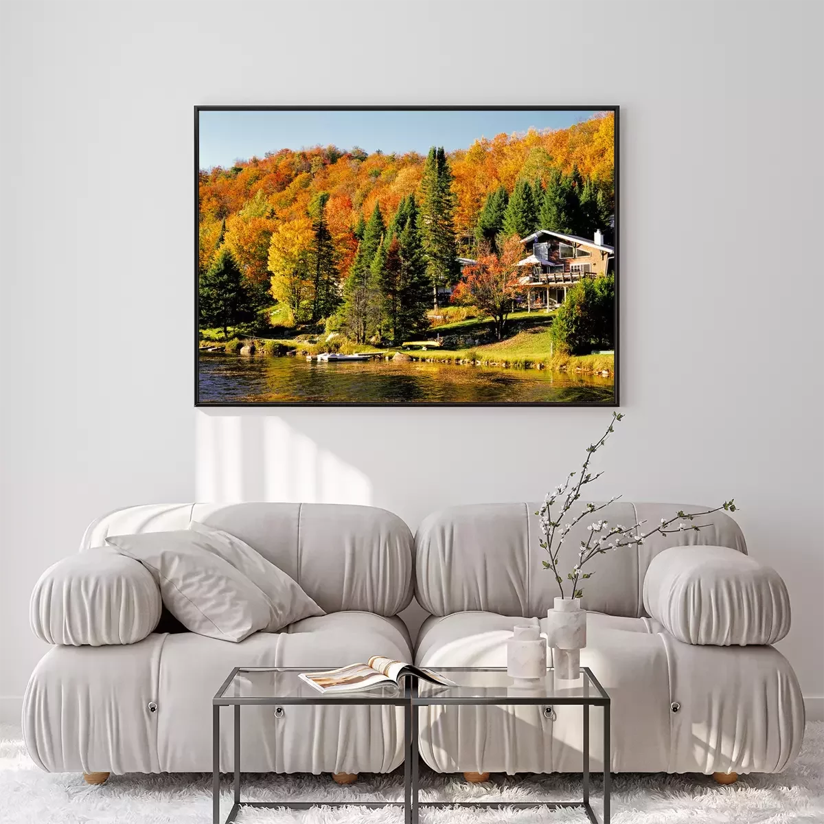 Poster: Amerikanische Waldvilla am Seeufer