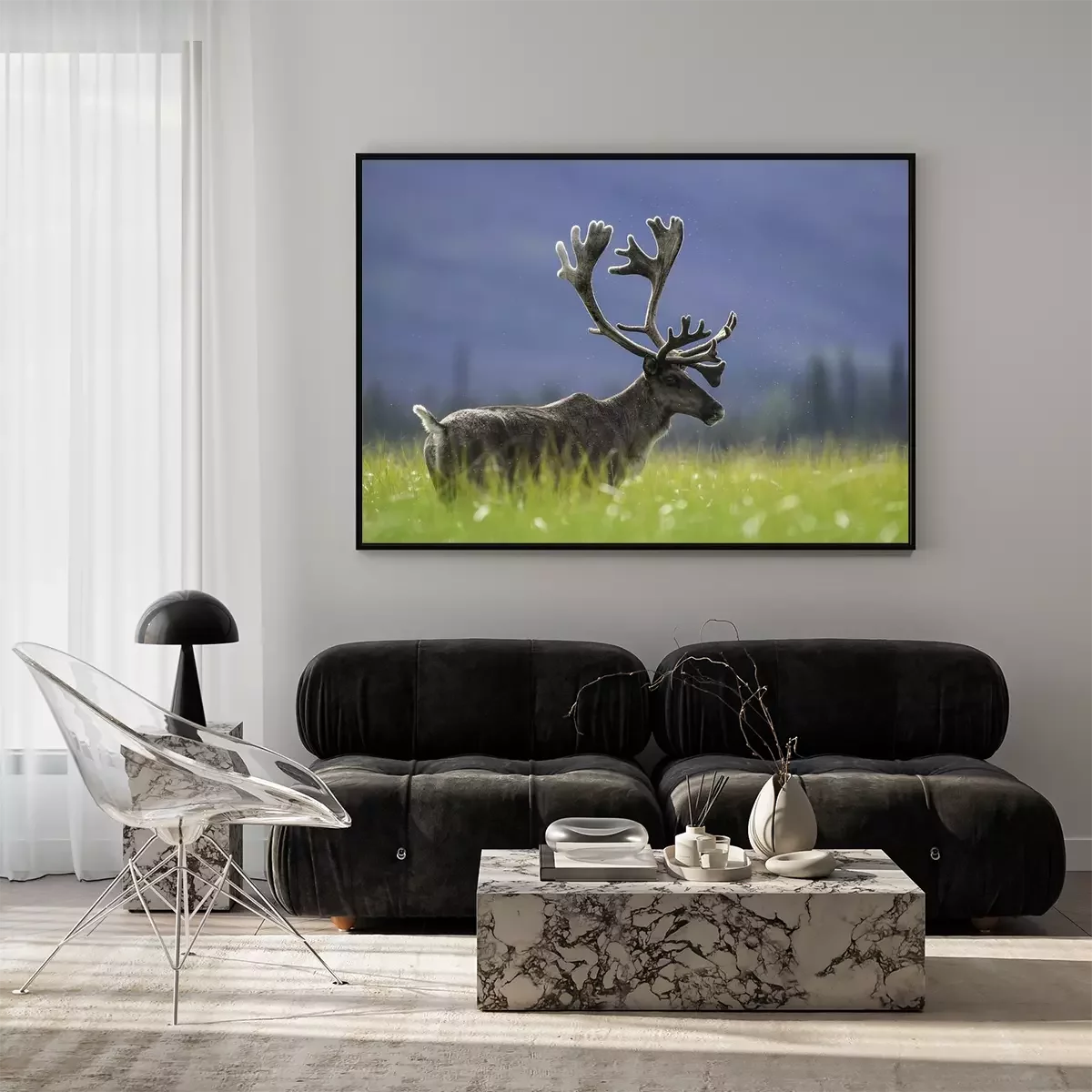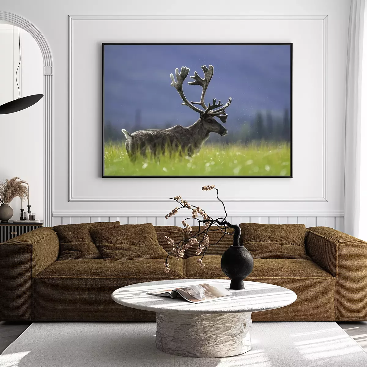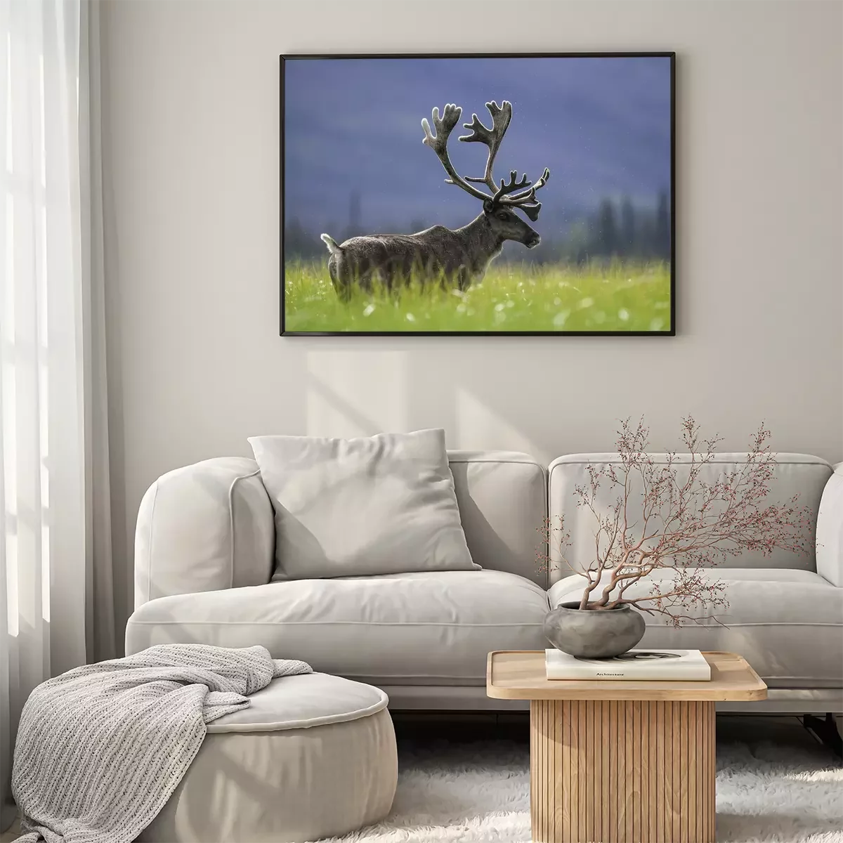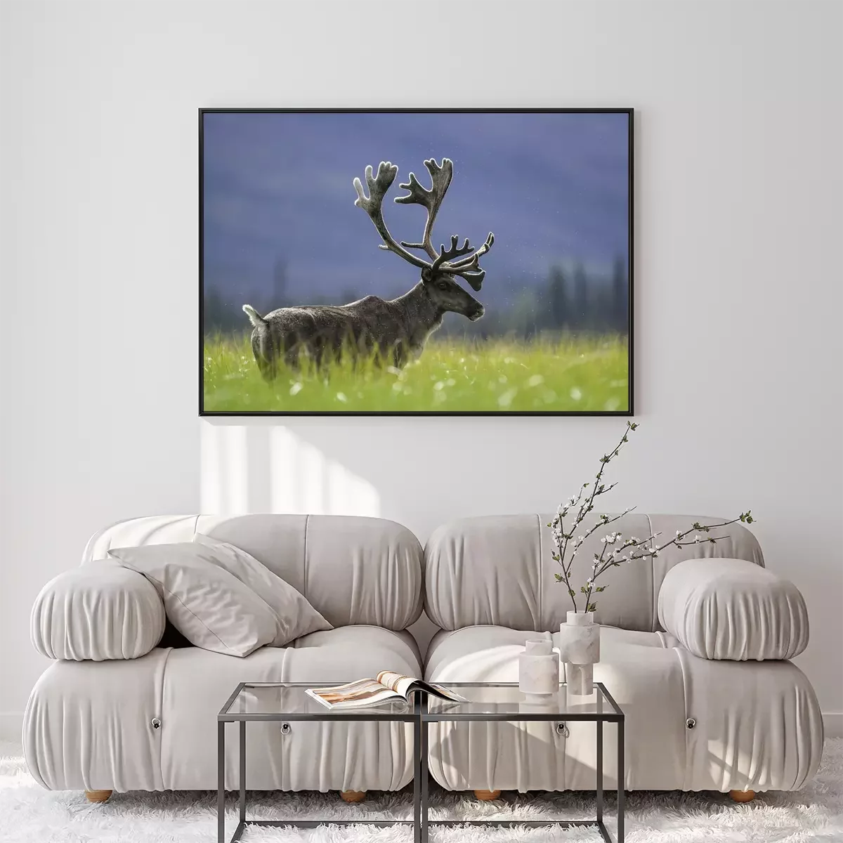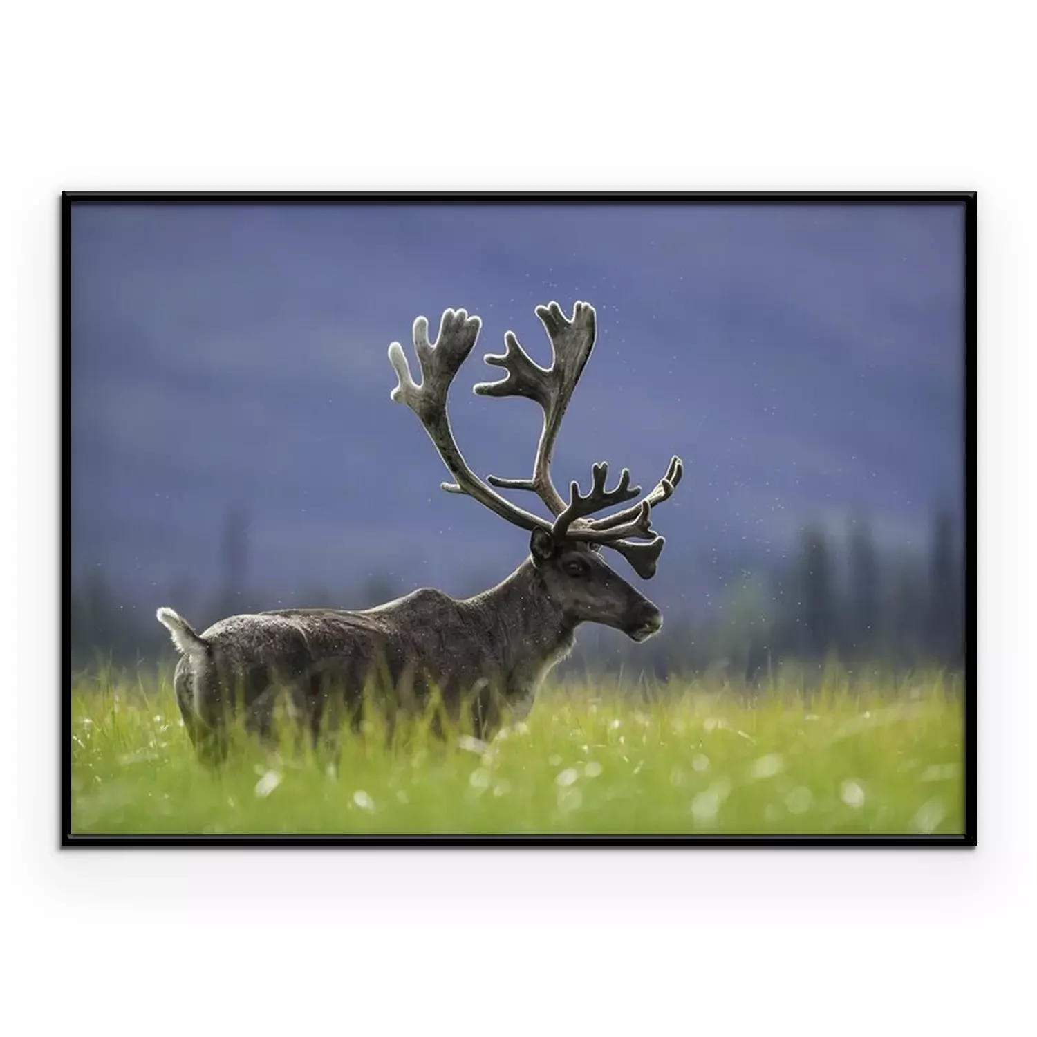 Poster: Amerikanisches Rentier auf einer grünen Wiese