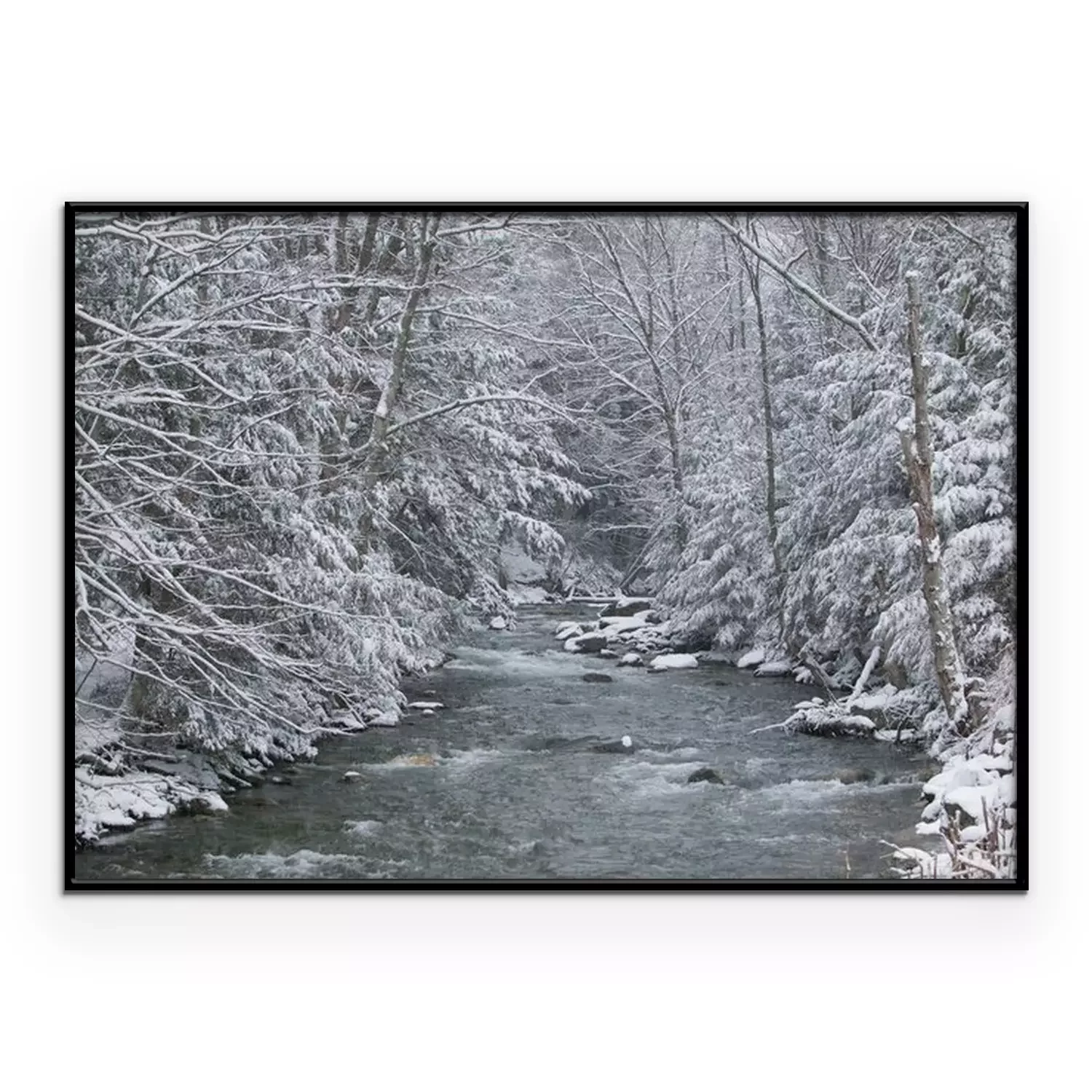 Poster: Amerikas Fluss fließt zwischen schneebedeckten Bäumen