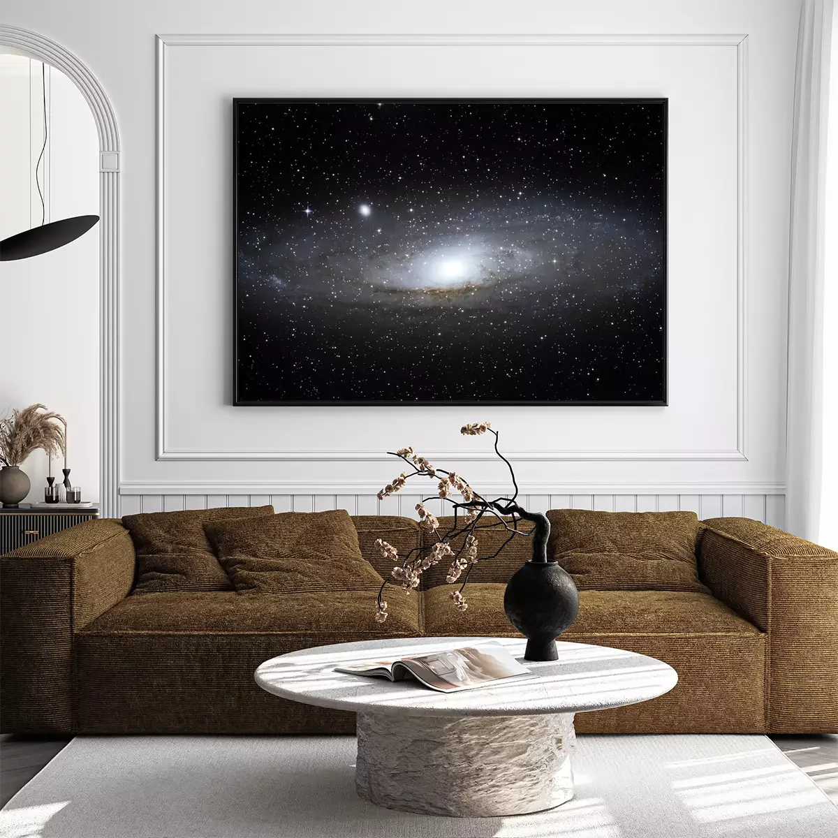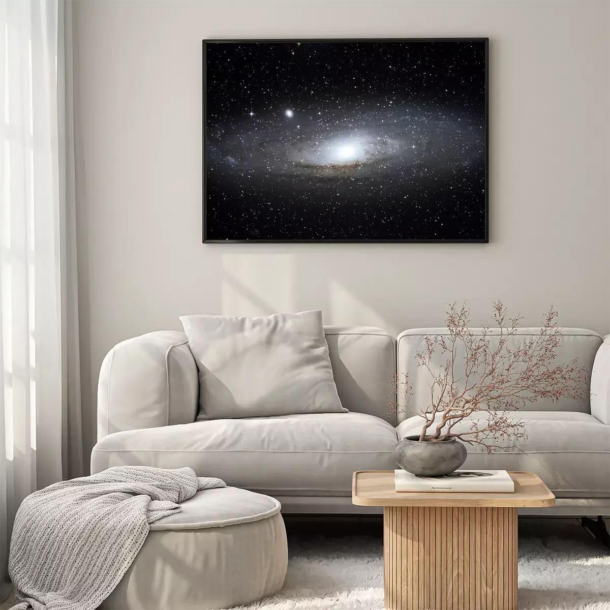 Poster: Andromeda Galaxie mit einem hellen Fleck in der Mitte