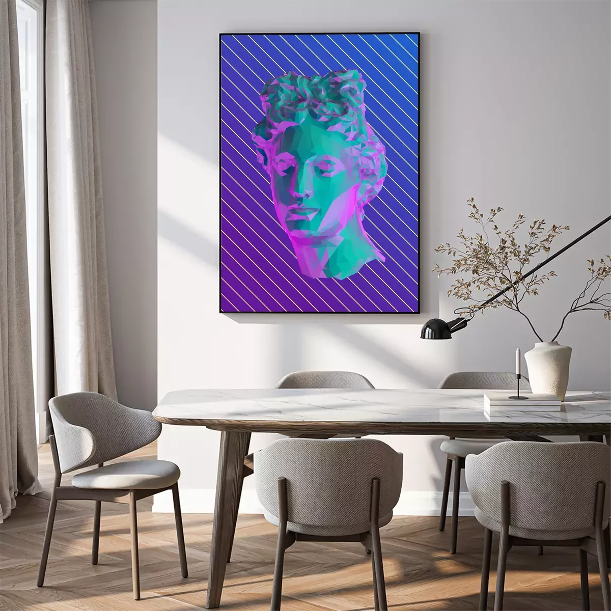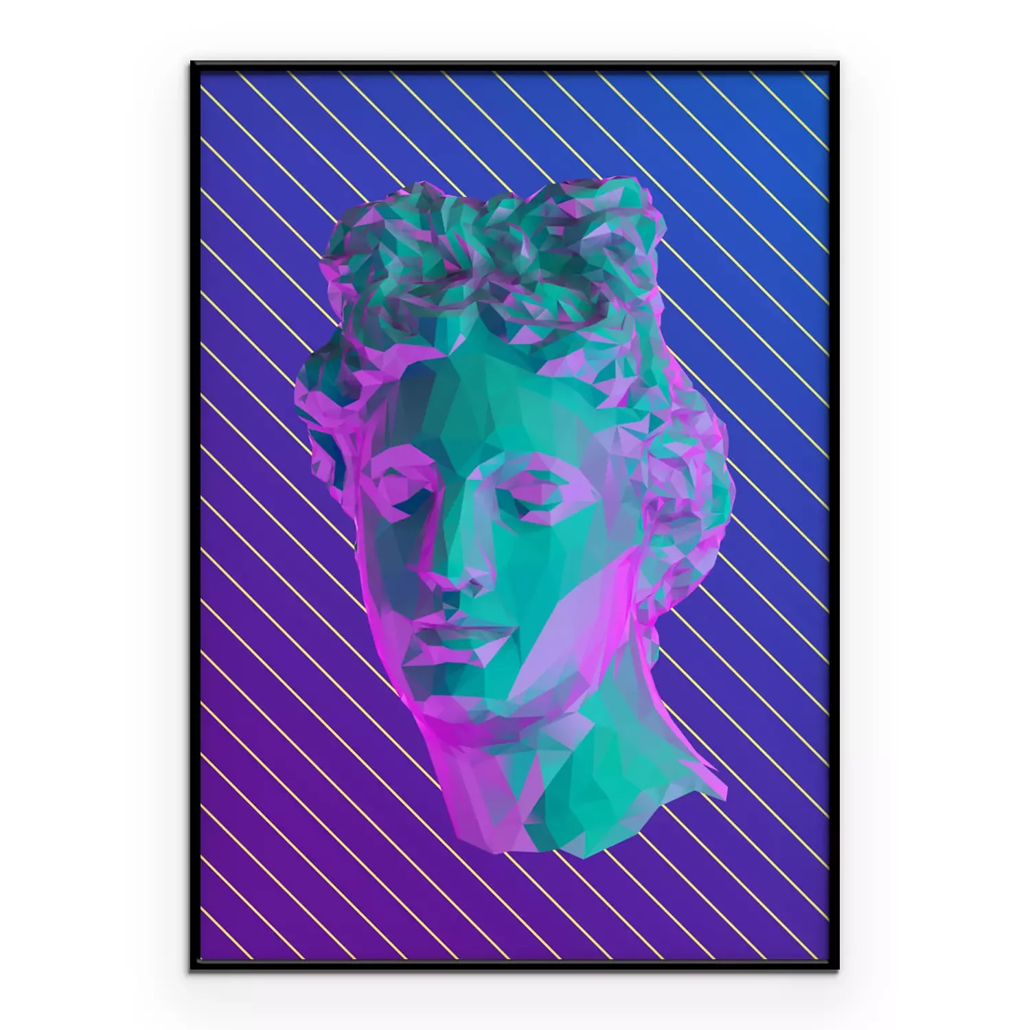 Poster: Antike Skulptur auf gestreiftem Hintergrund