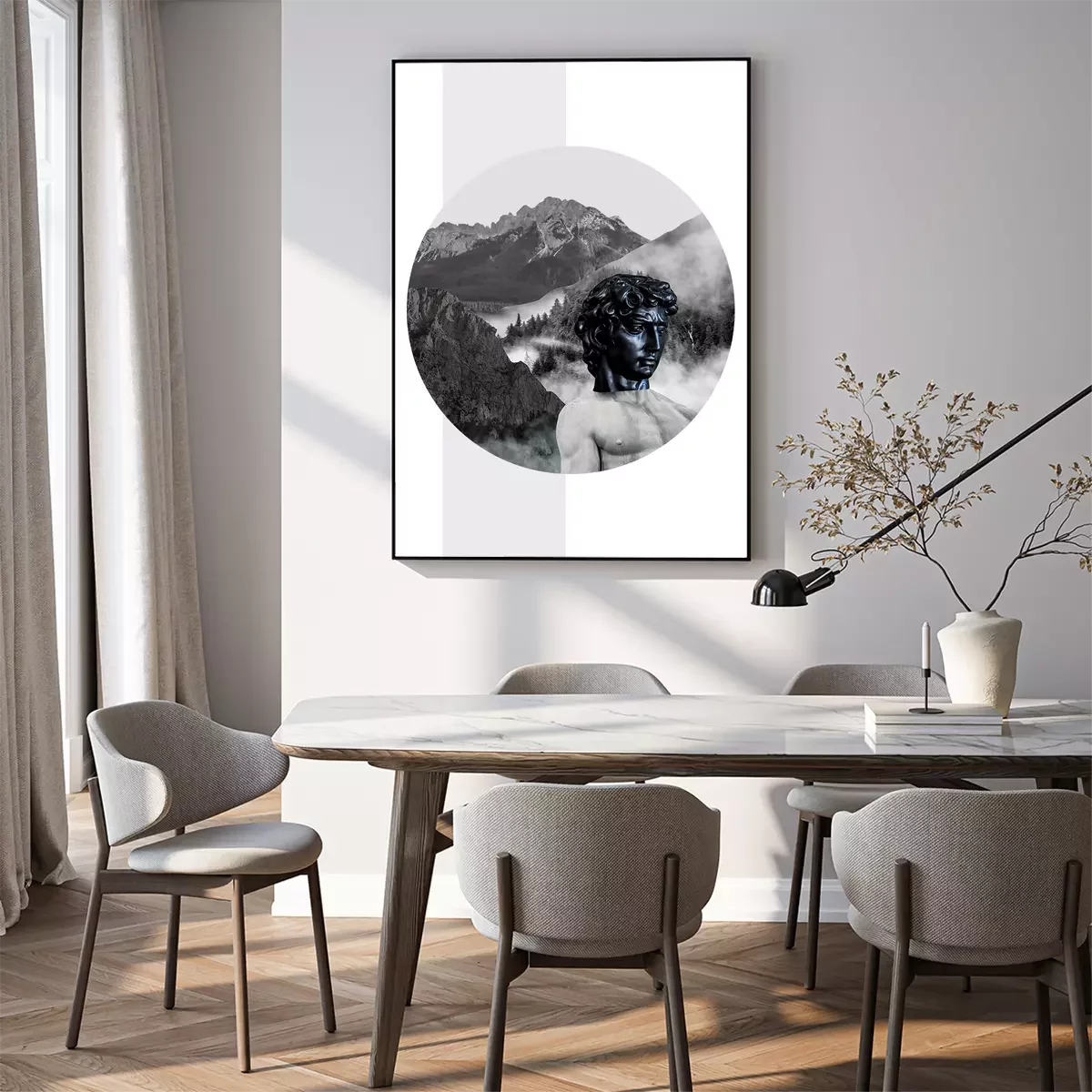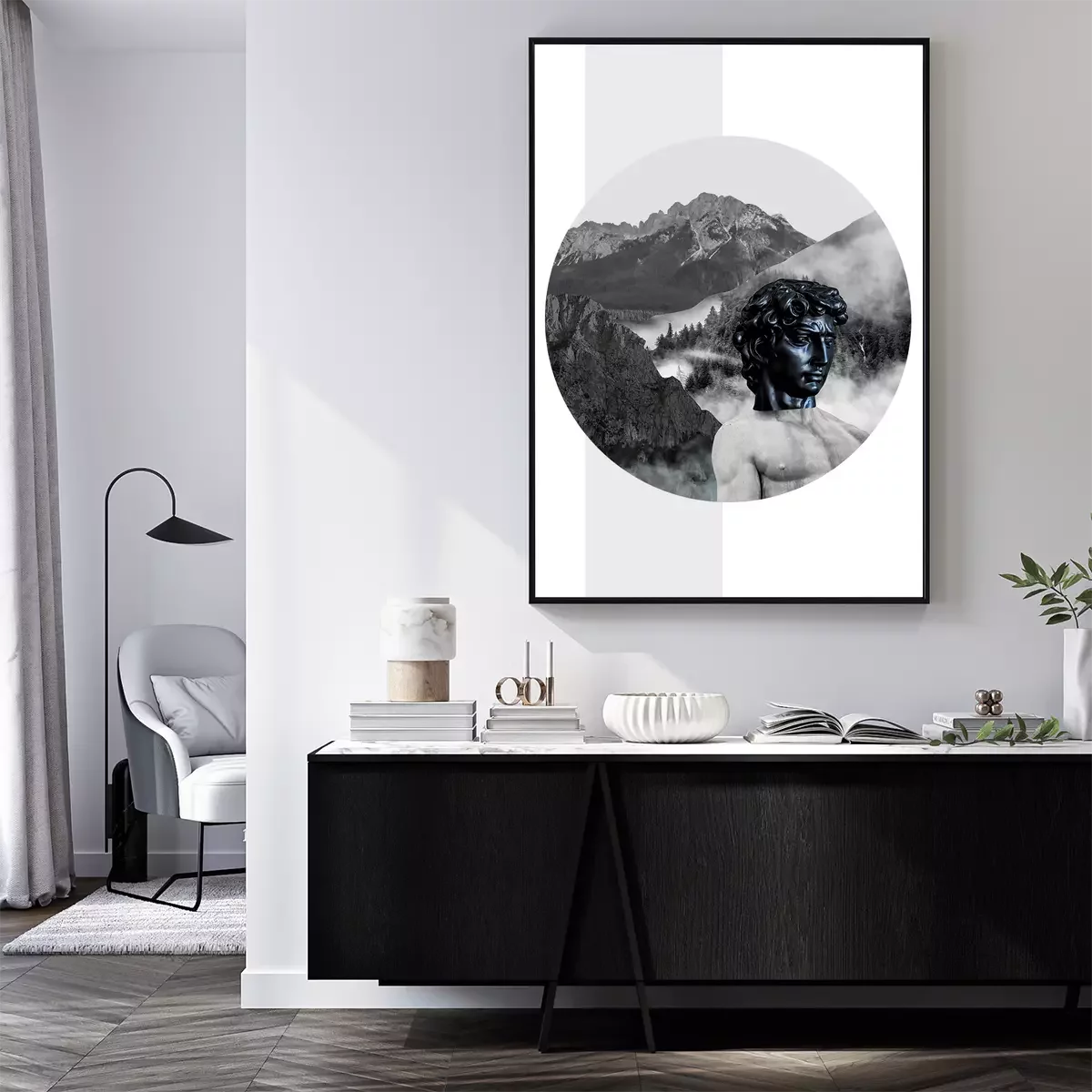 Poster: Antike Skulptur im Gebirge
