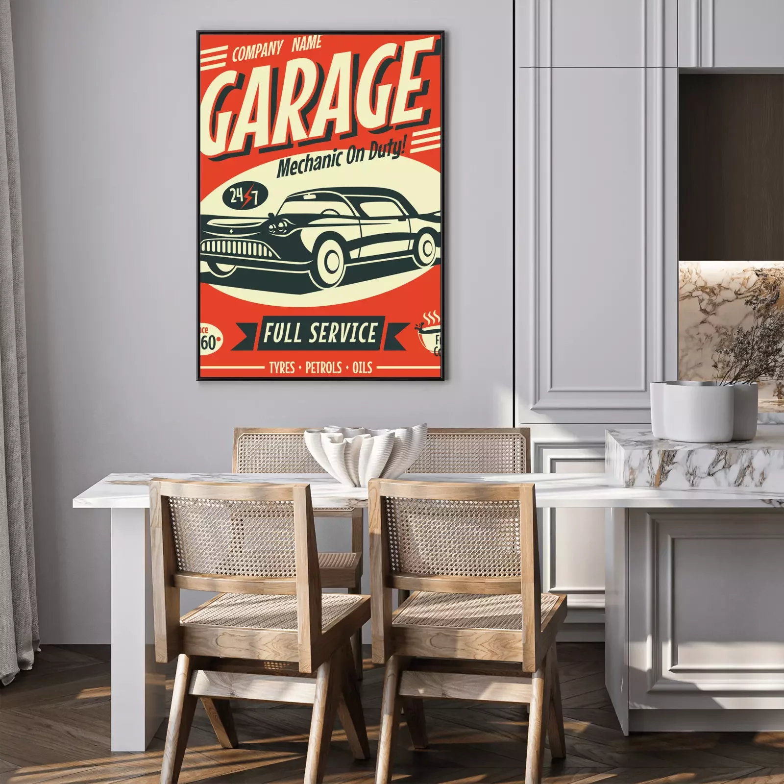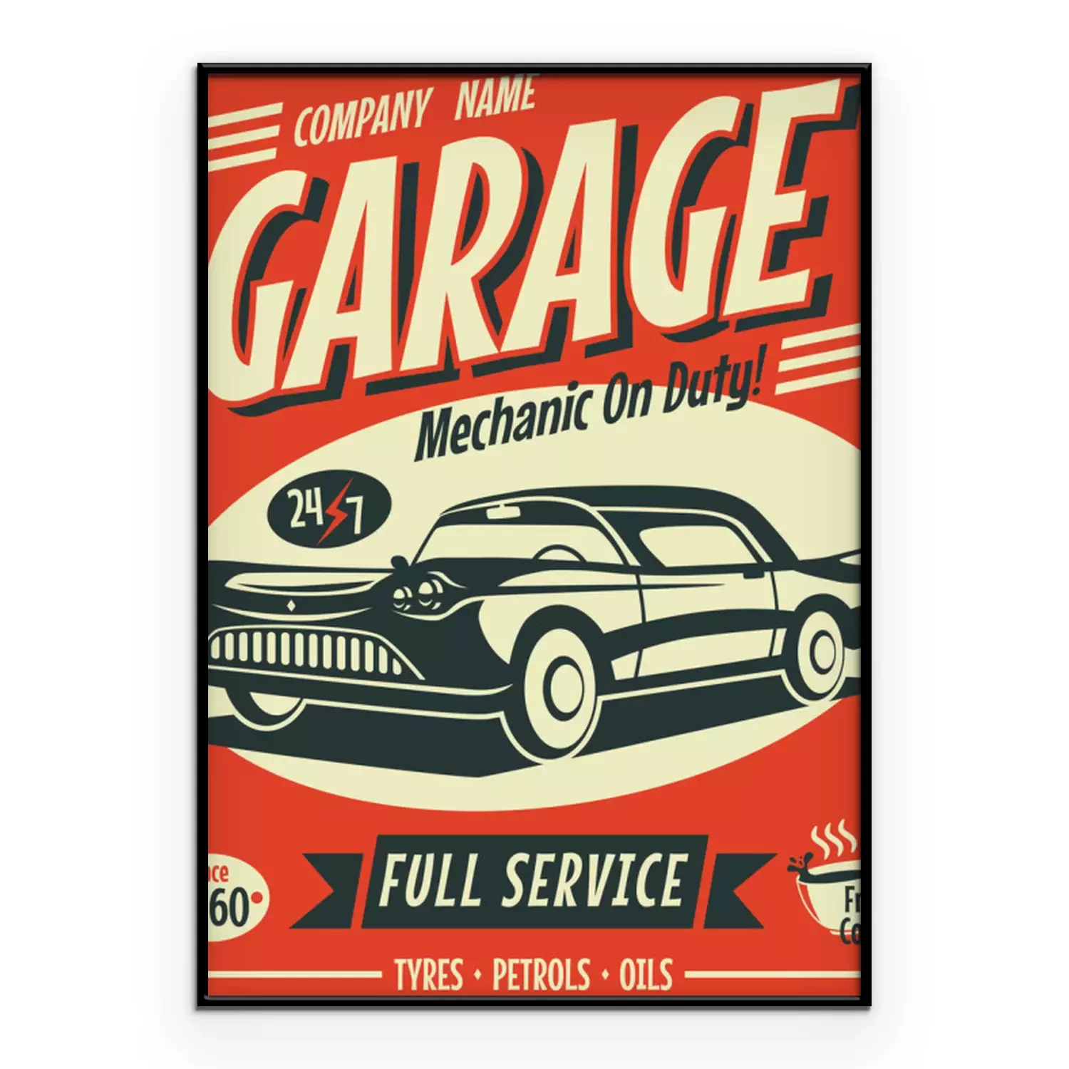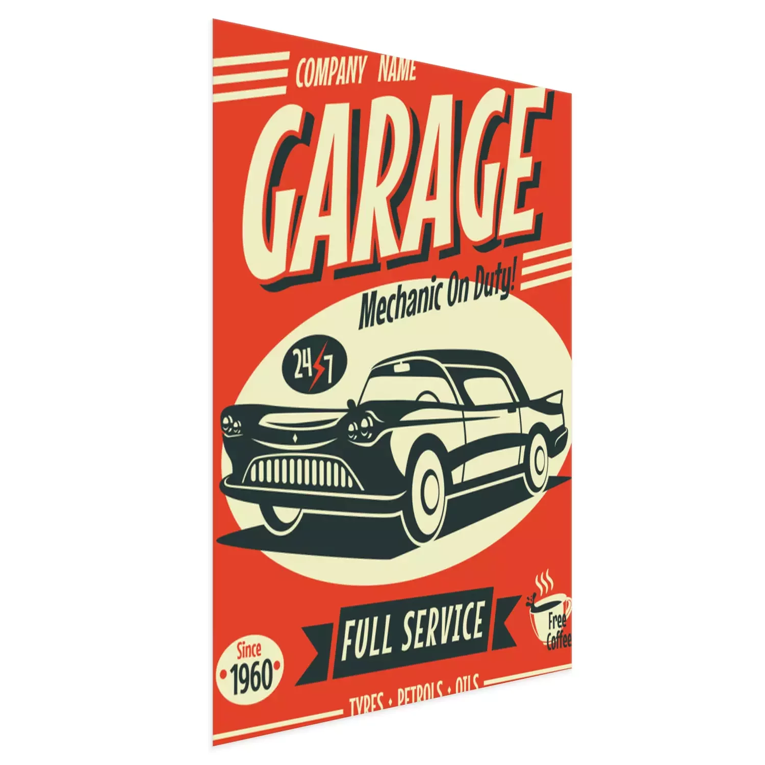 Poster: Anzeige einer Oldtimer-Werkstatt