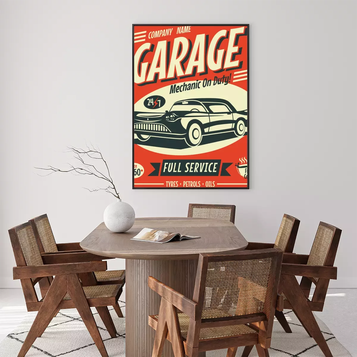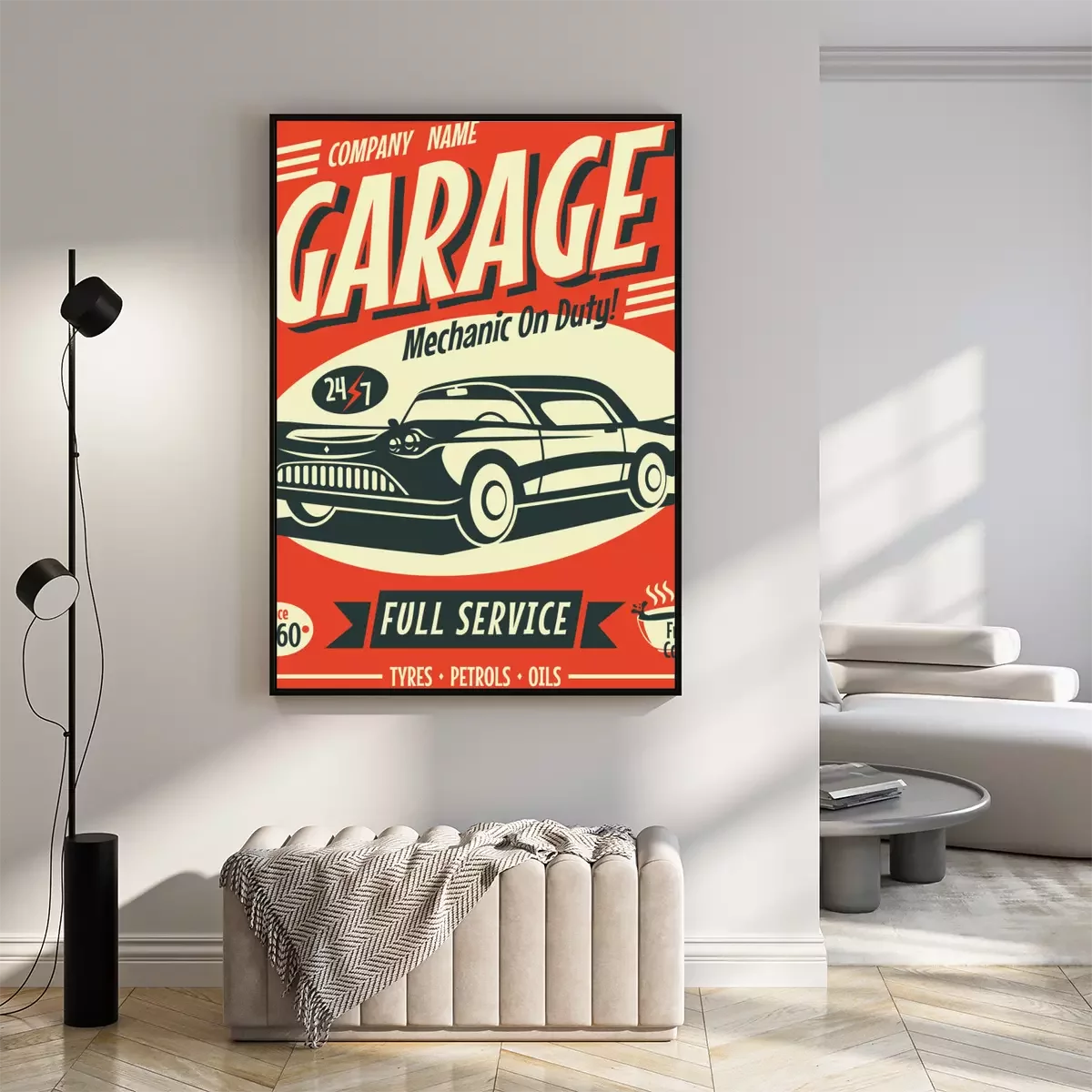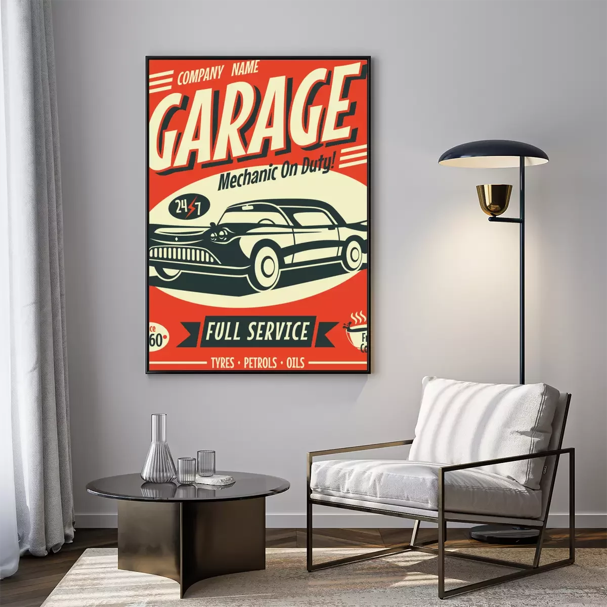 Poster: Anzeige einer Oldtimer-Werkstatt