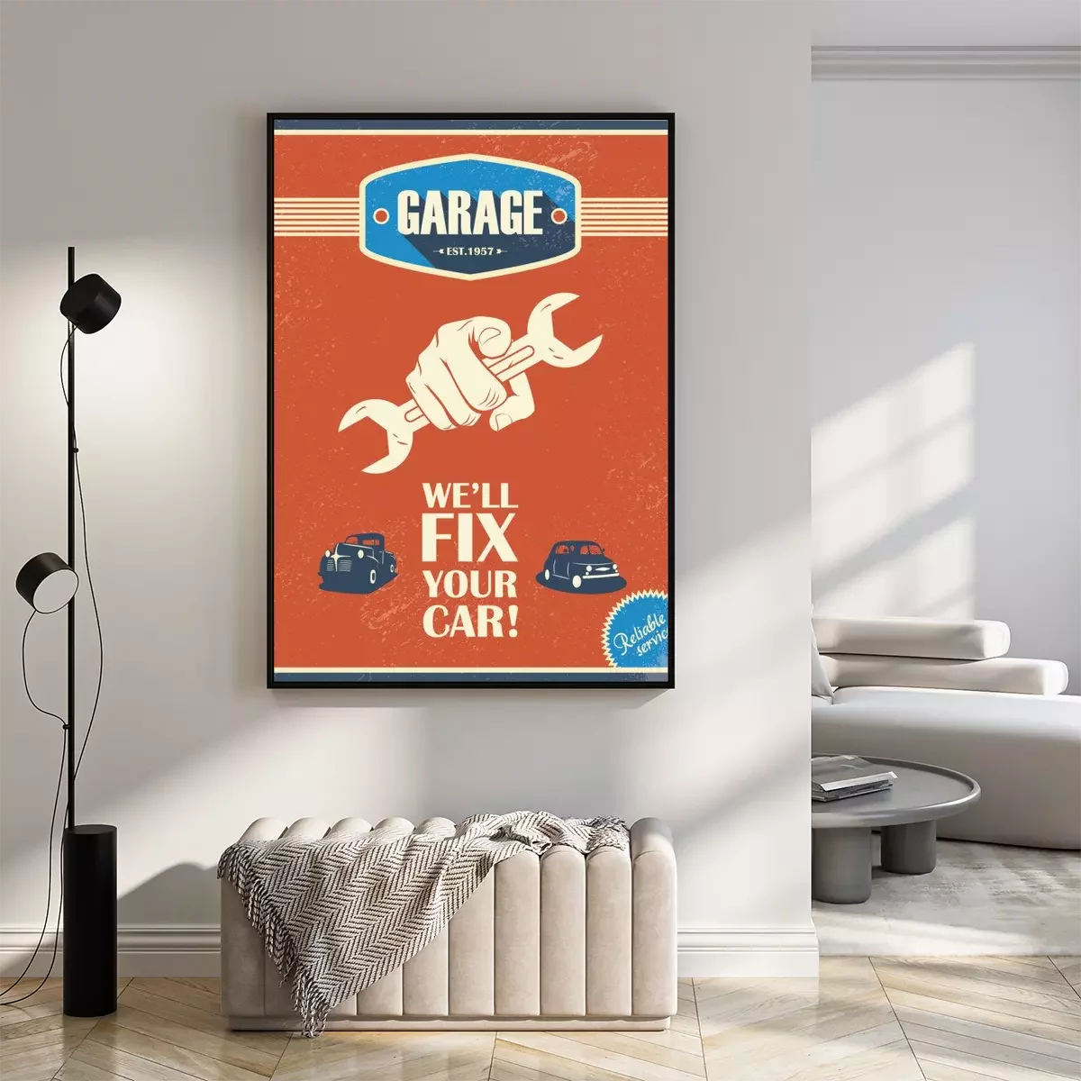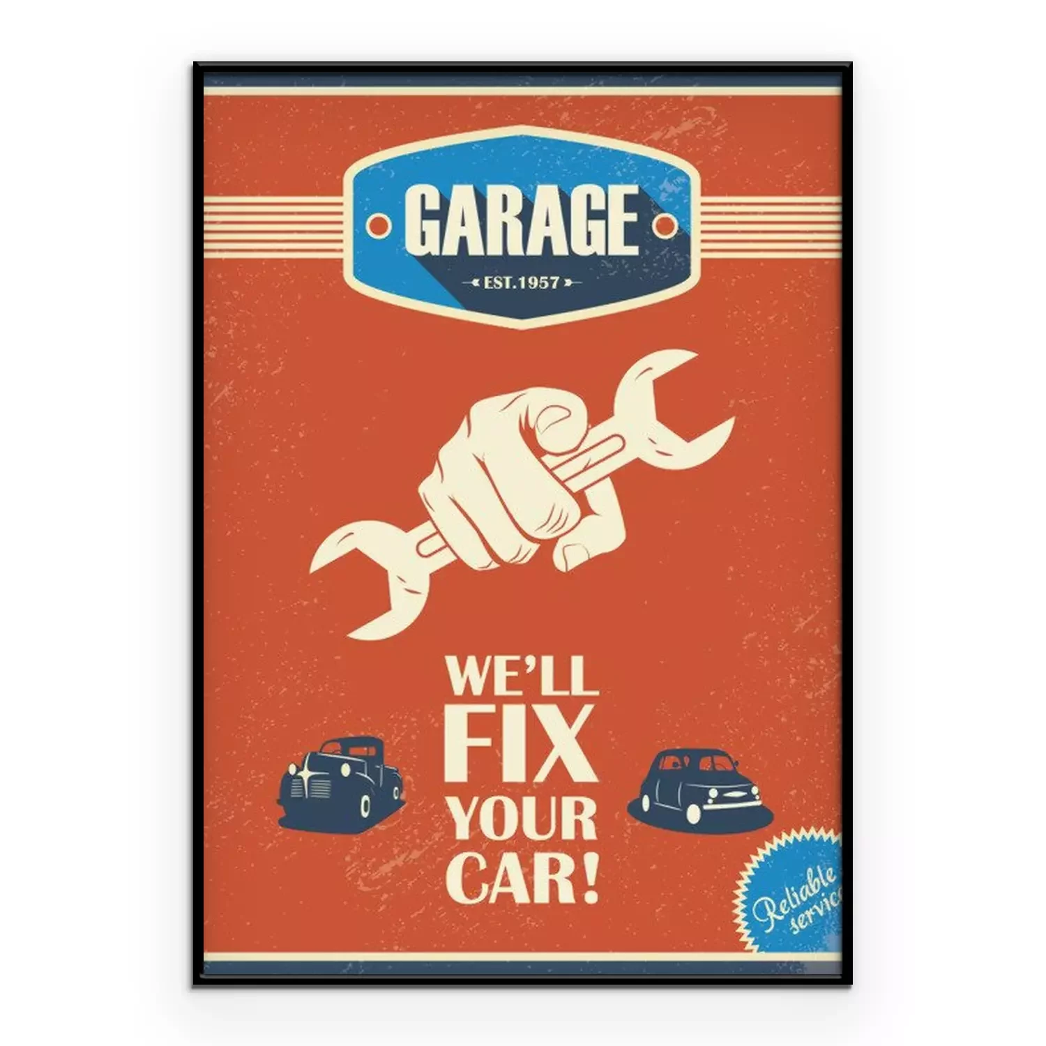 Poster: Anzeige einer Oldtimer-Werkstatt