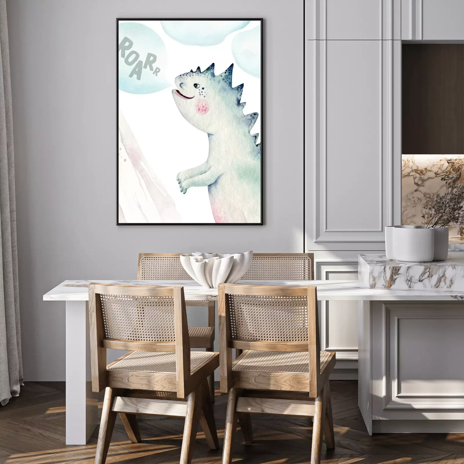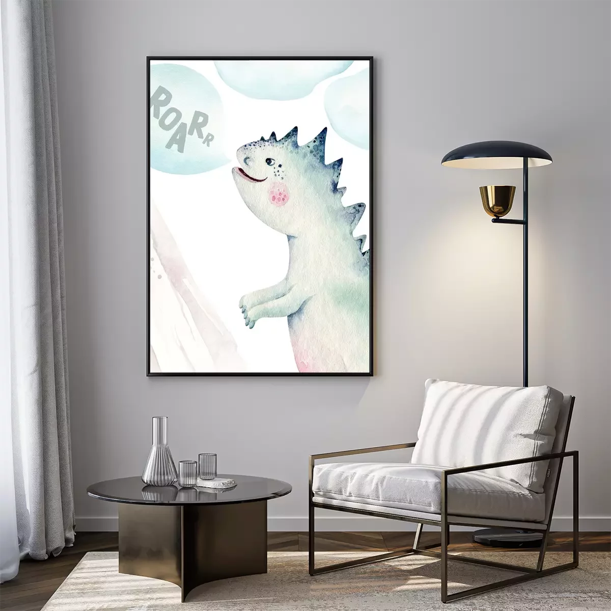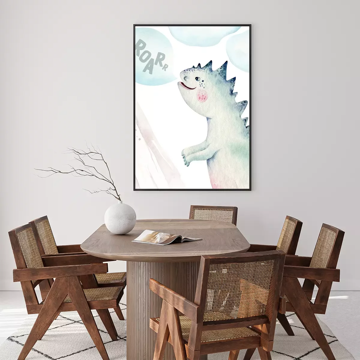 Poster: Aquarell-Dinosaurier auf weißem Hintergrund