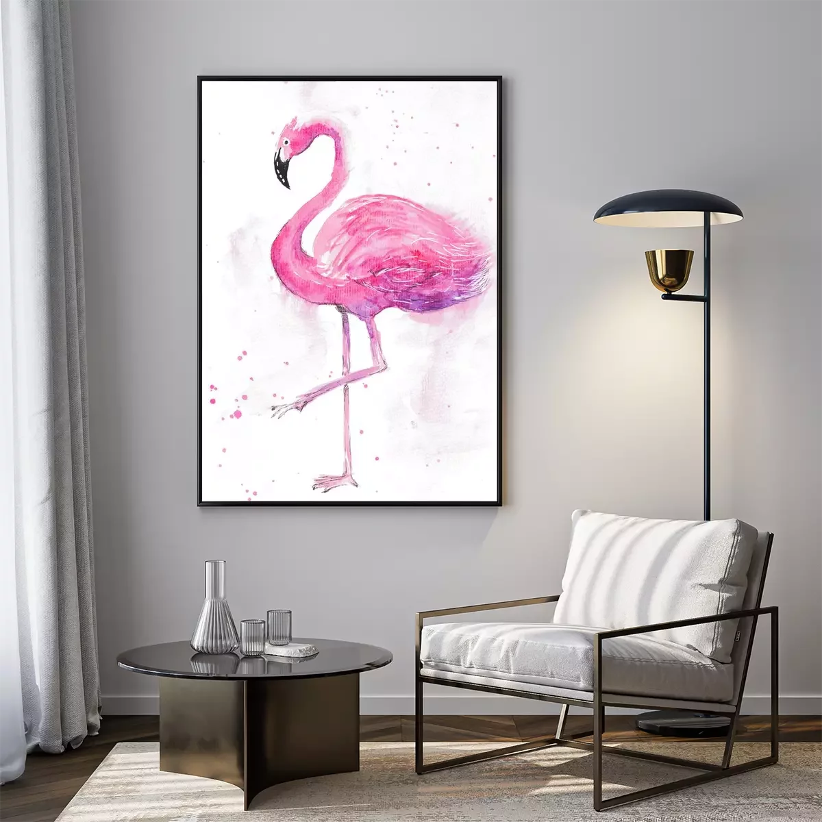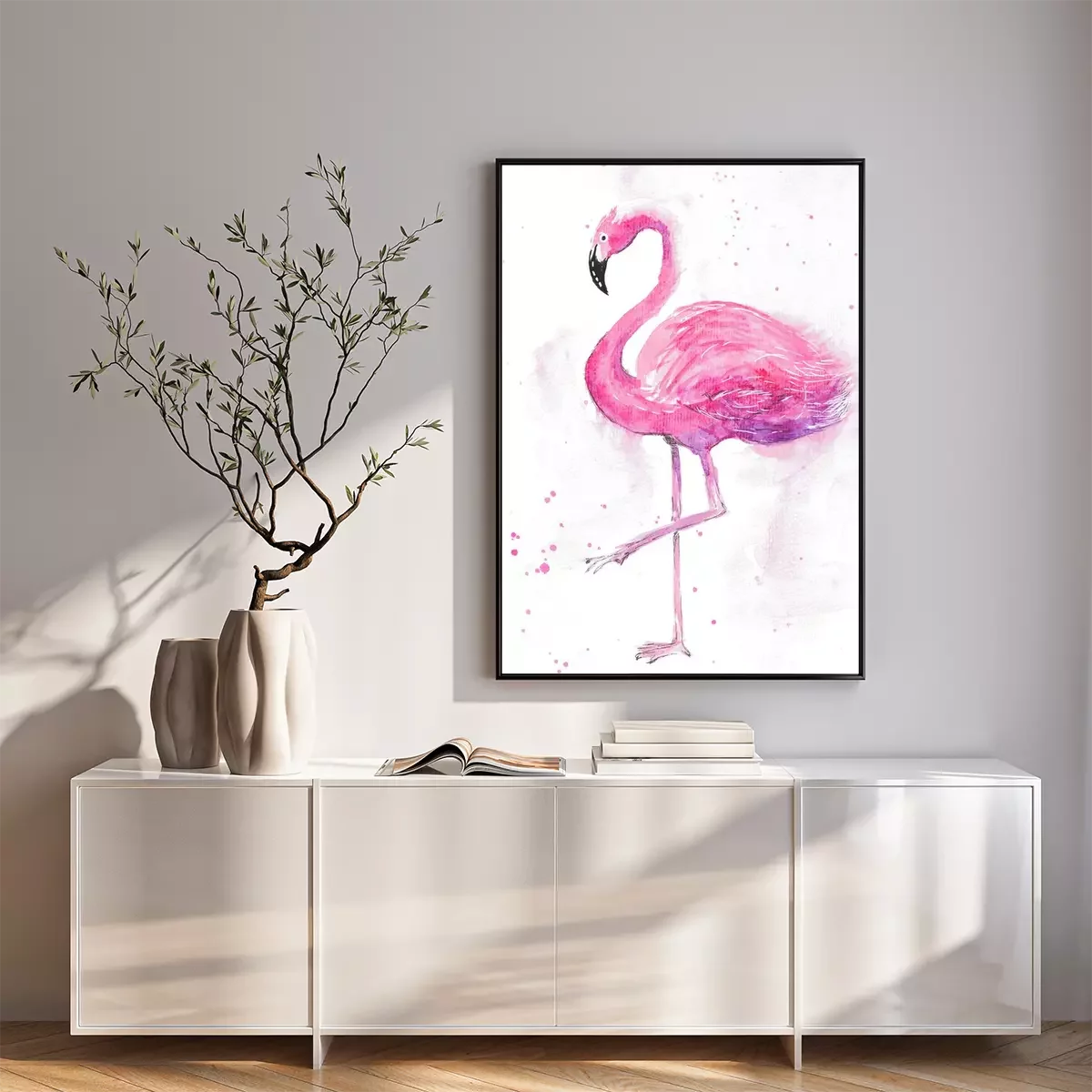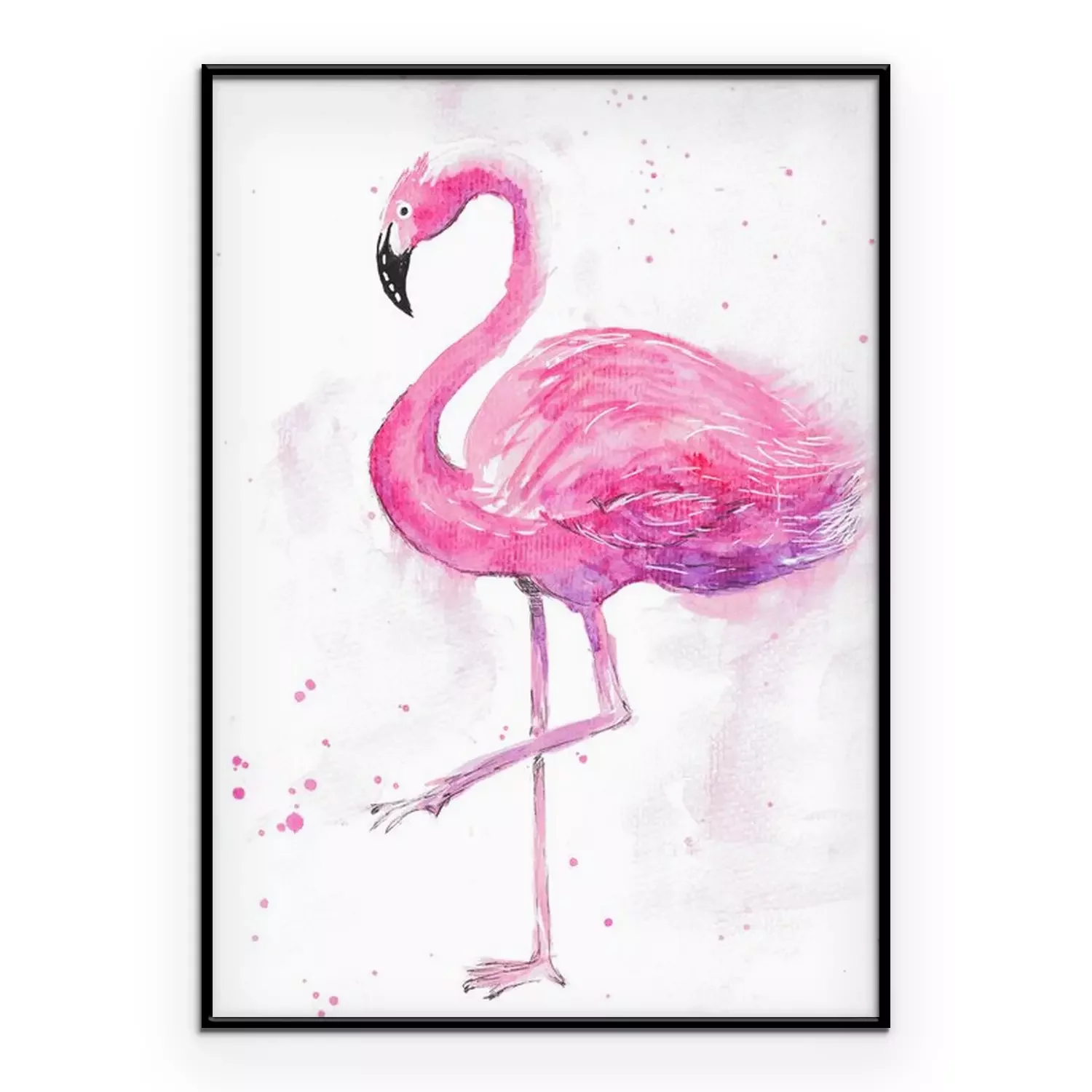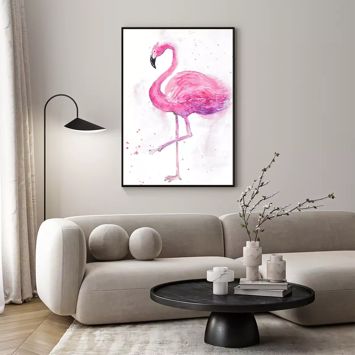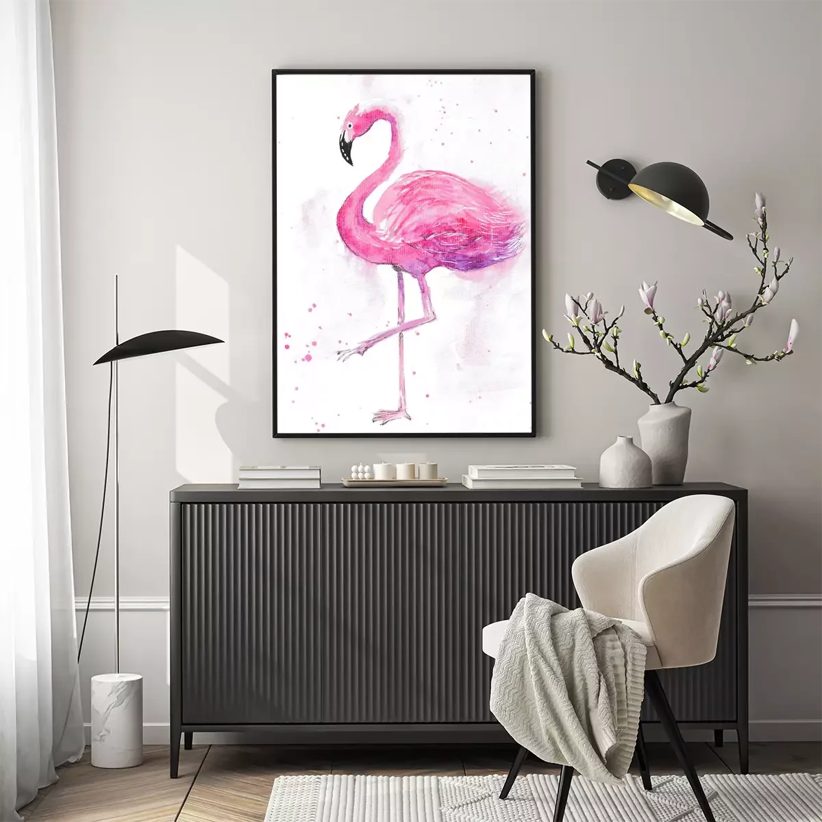 Poster: Aquarell Flamingo auf hellem Hintergrund