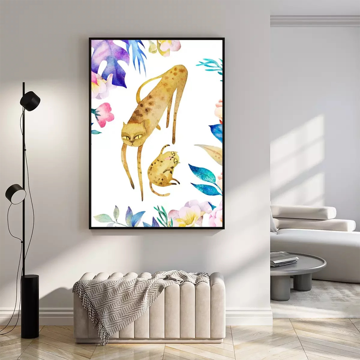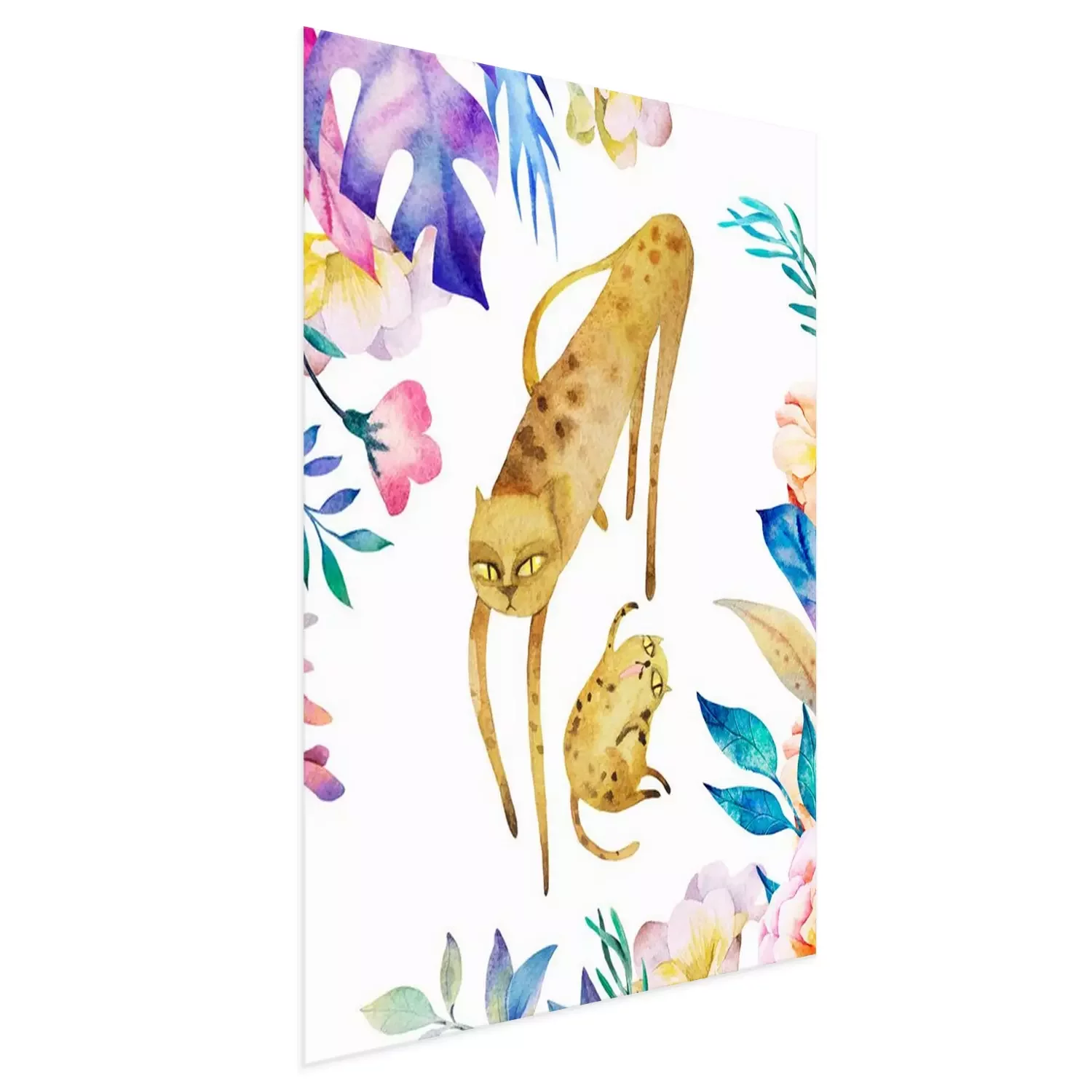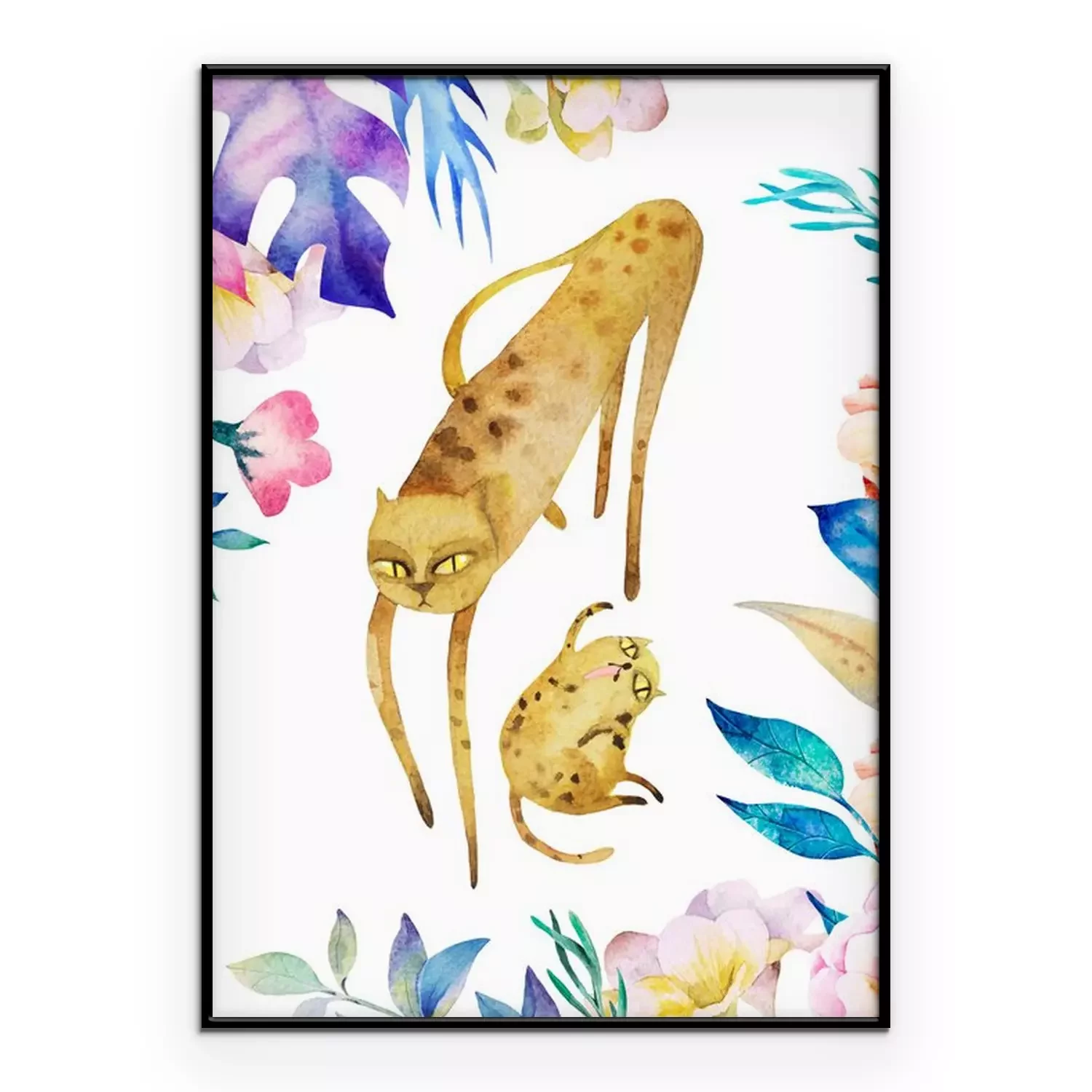 Poster Aquarell-Geparden inmitten von mehrfarbigen Blättern