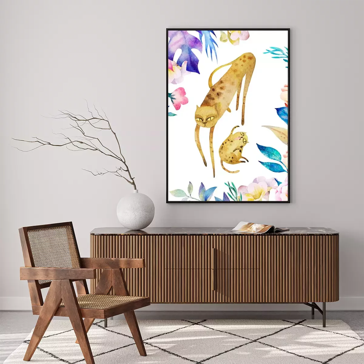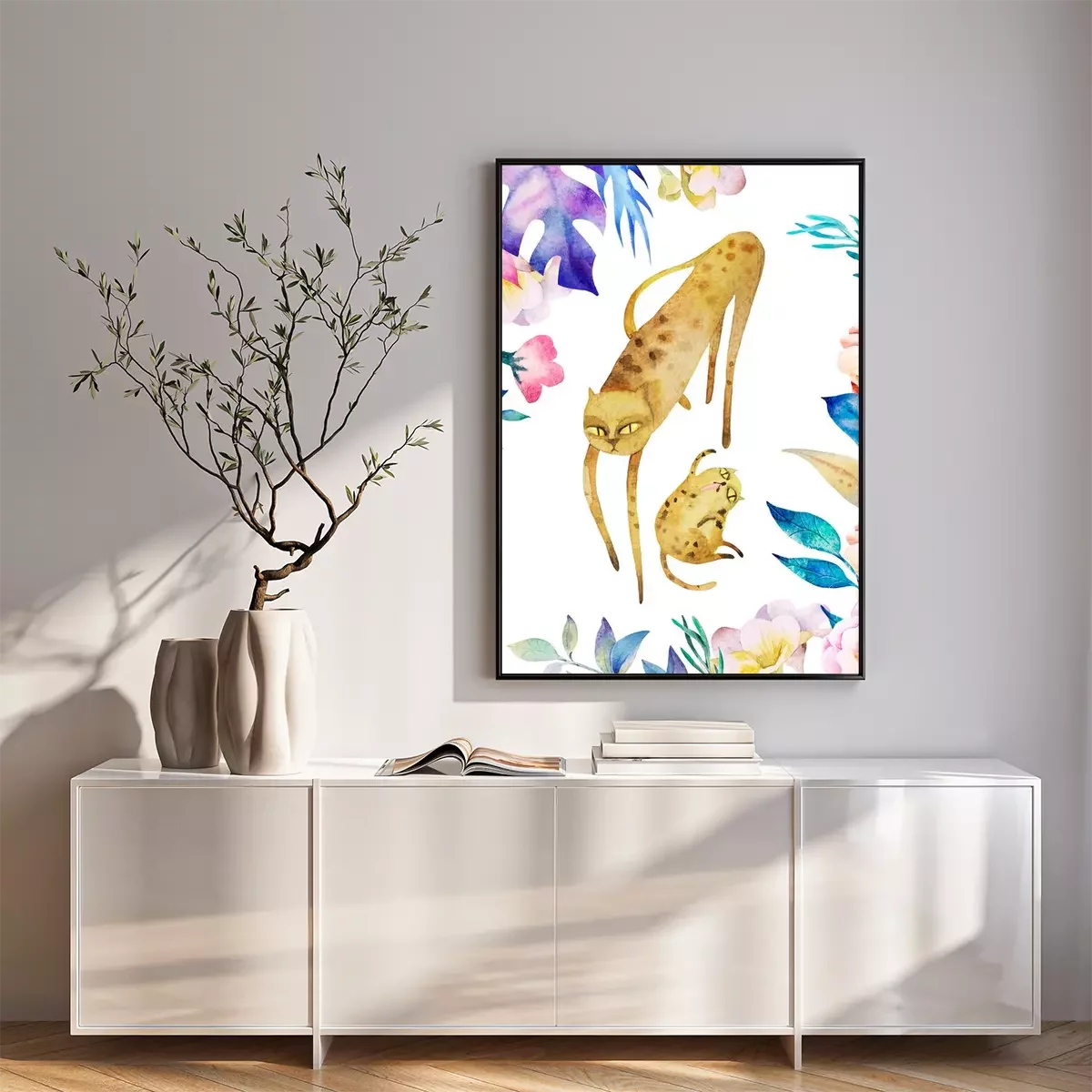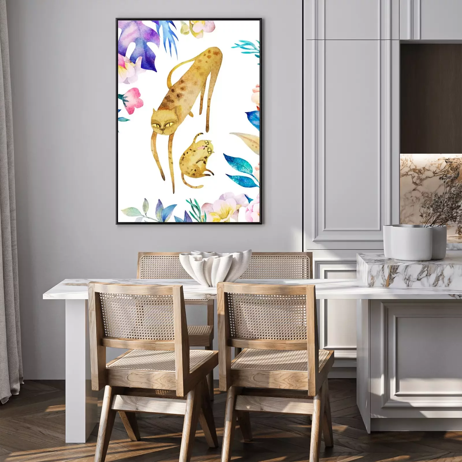 Poster Aquarell-Geparden inmitten von mehrfarbigen Blättern