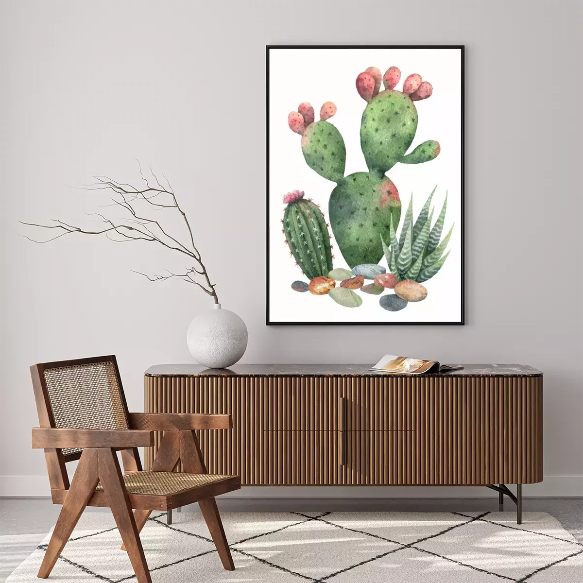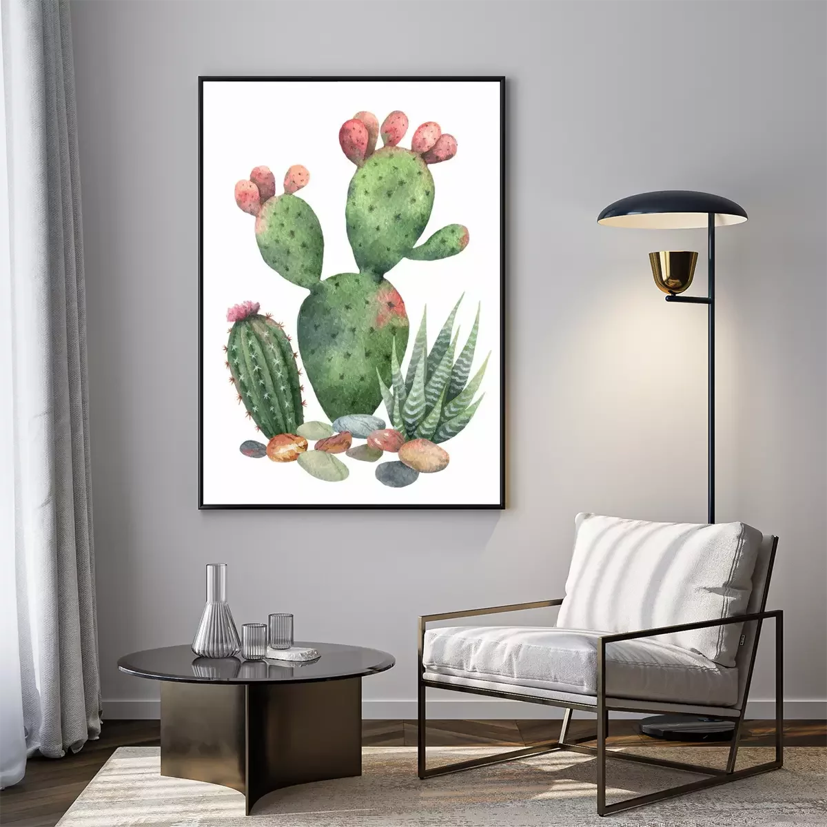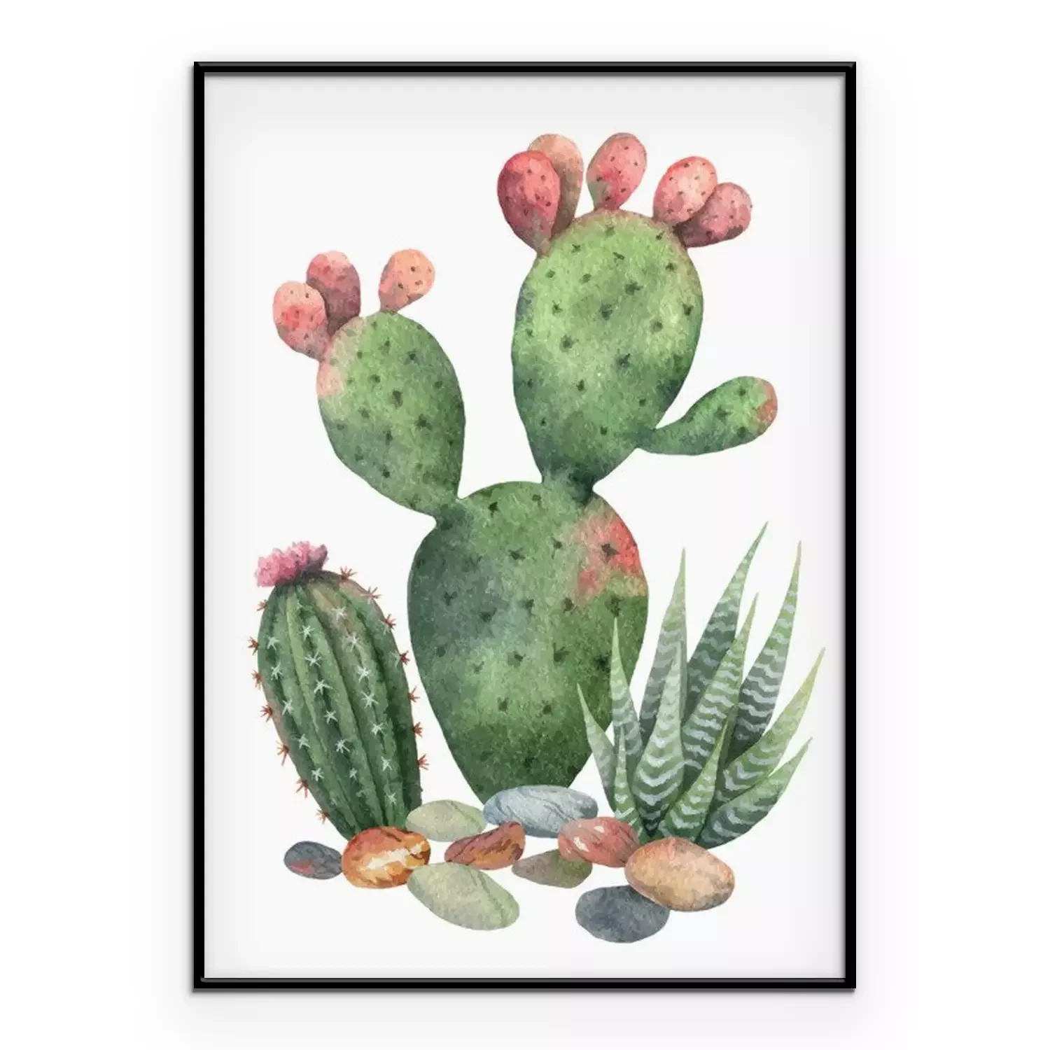 Poster: Aquarell-Kaktus mit rosa Spitzen