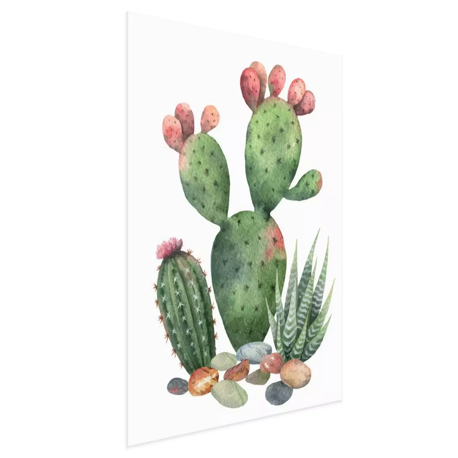 Poster Aquarell-Kaktus mit rosa Spitzen