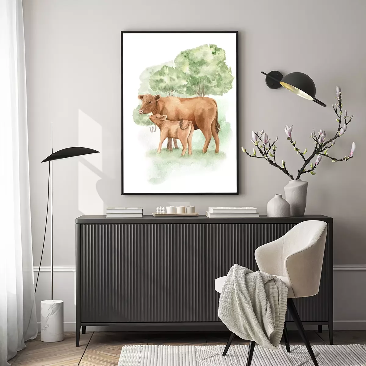 Poster: Aquarell-Kühe für Kinder