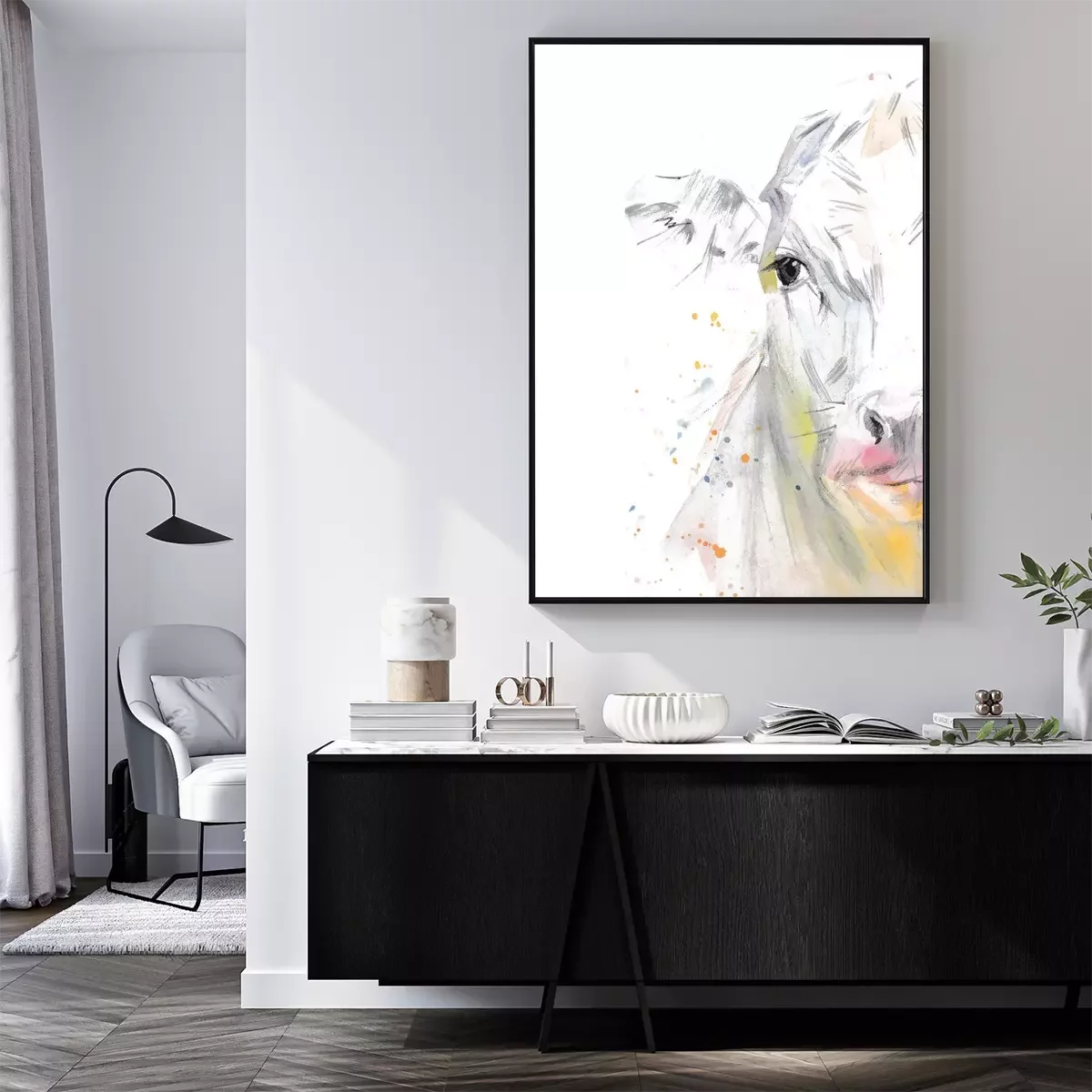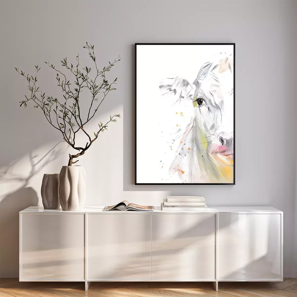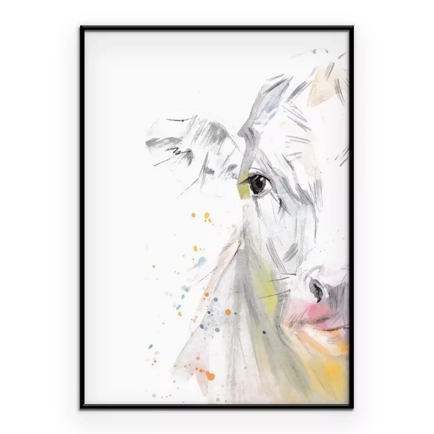 Poster: Aquarell-Kuh auf weißem Hintergrund