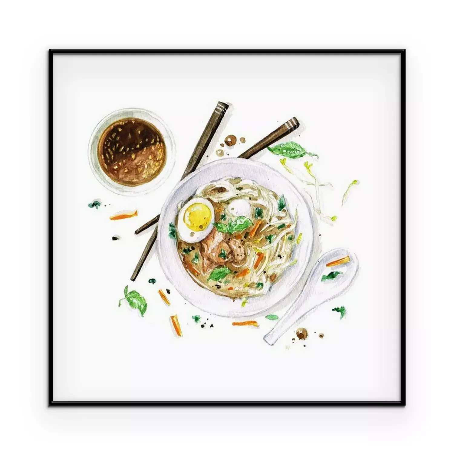 Poster: Aquarell Lebensmittel Malerei - Pho Soup