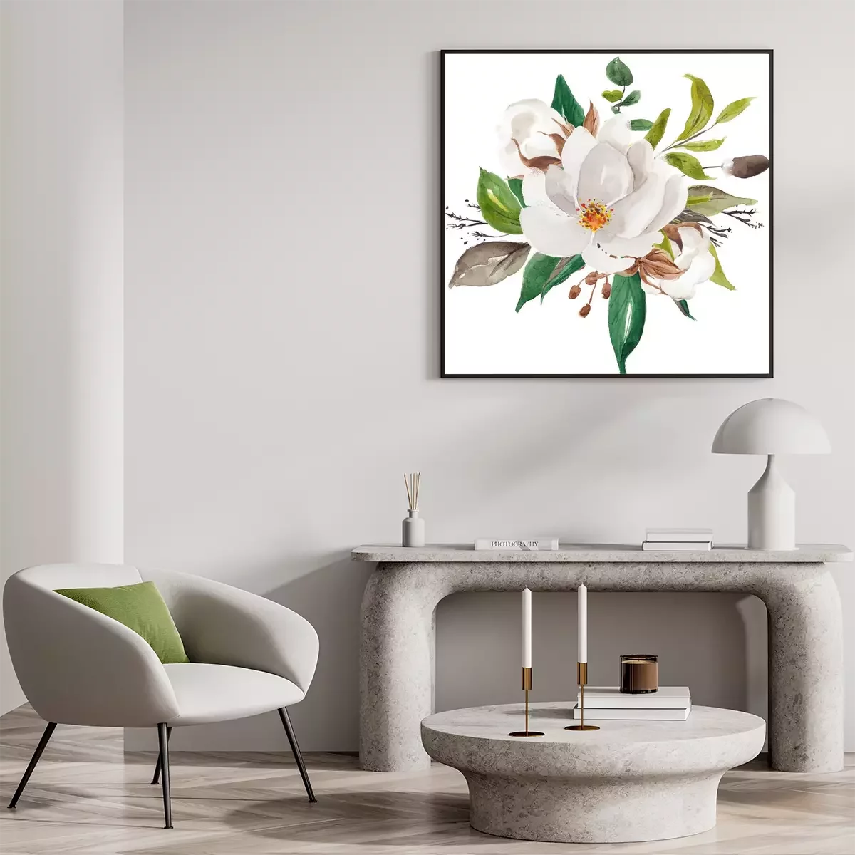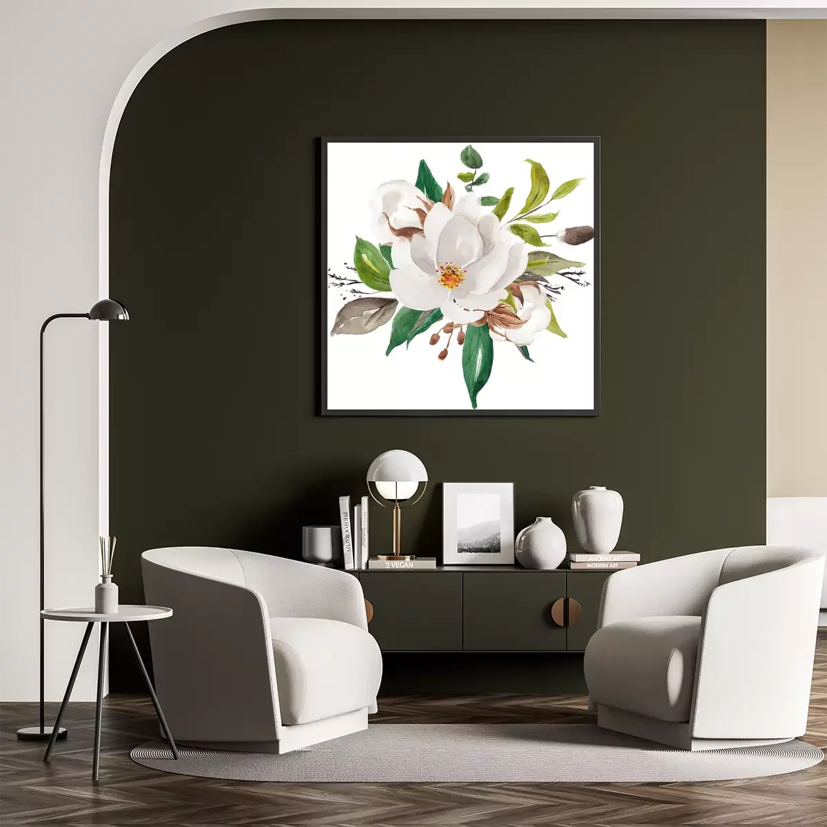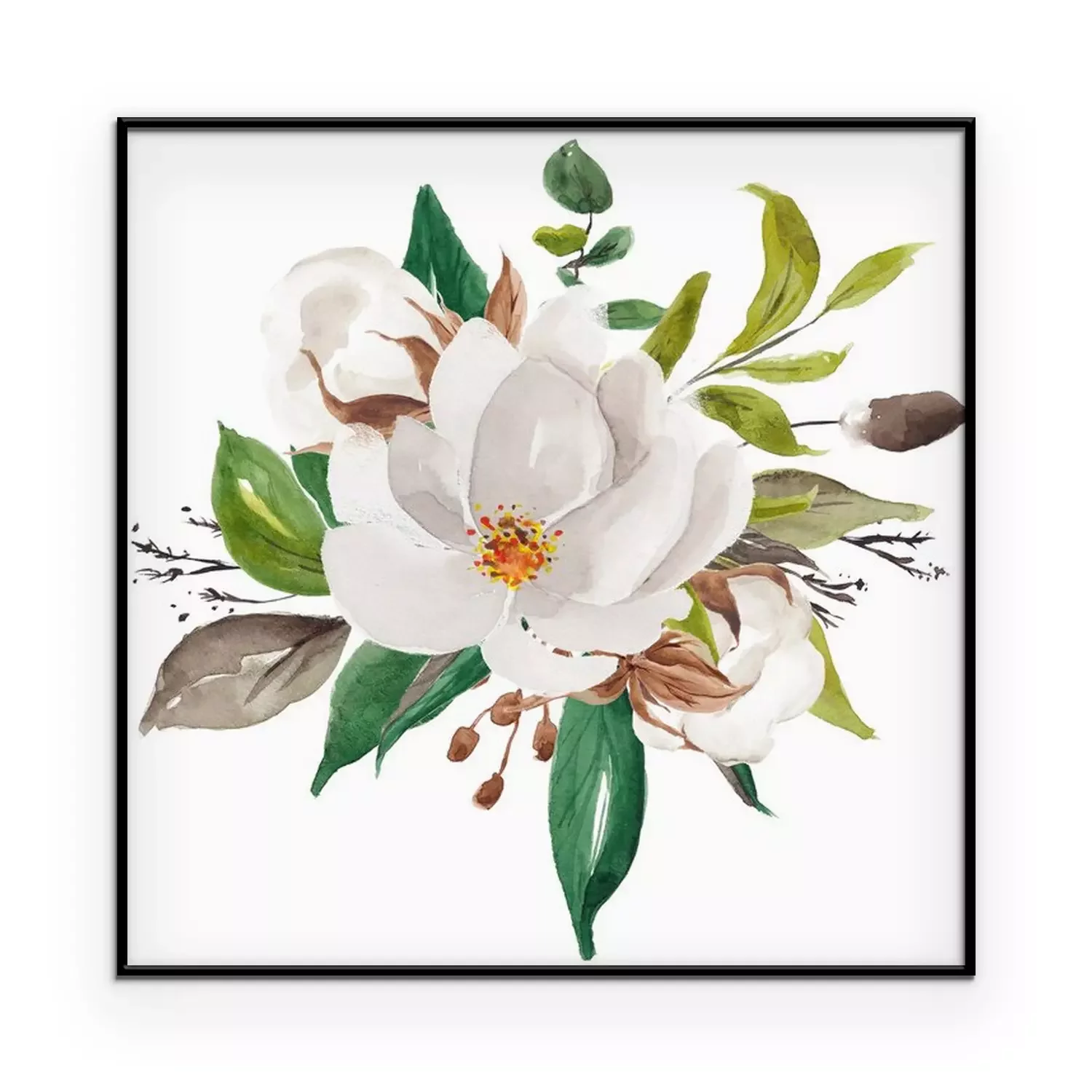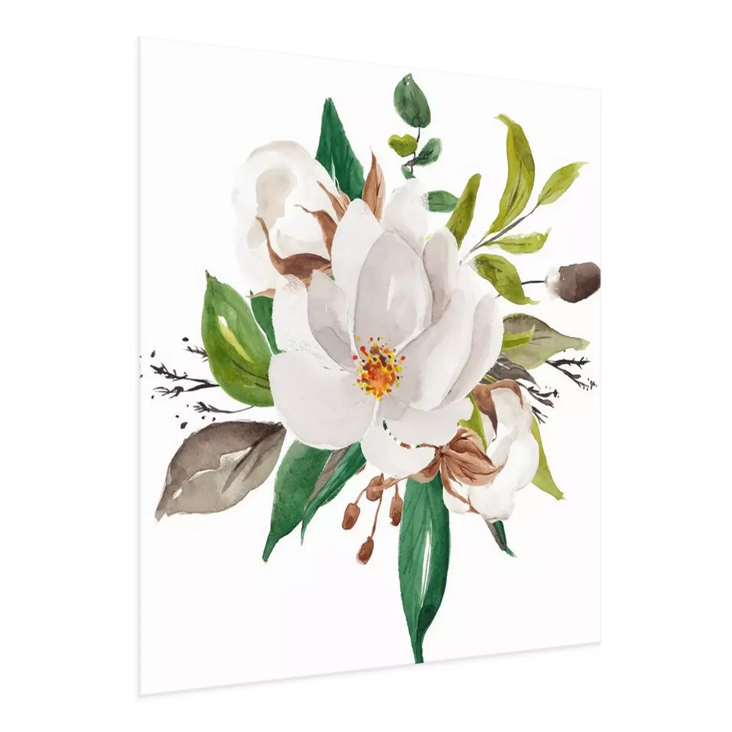 Poster: Aquarell Magnolien Zusammensetzung mit Blättern