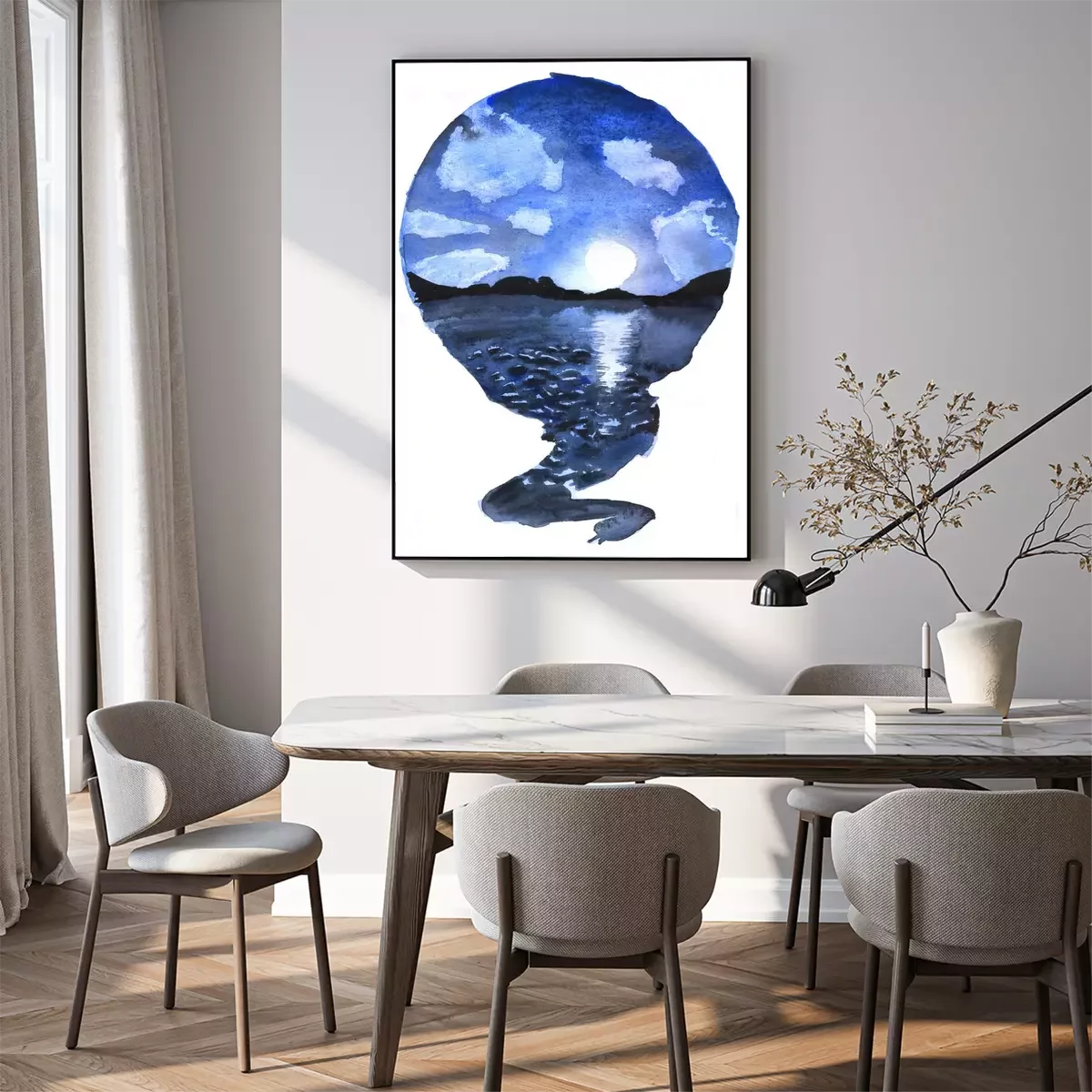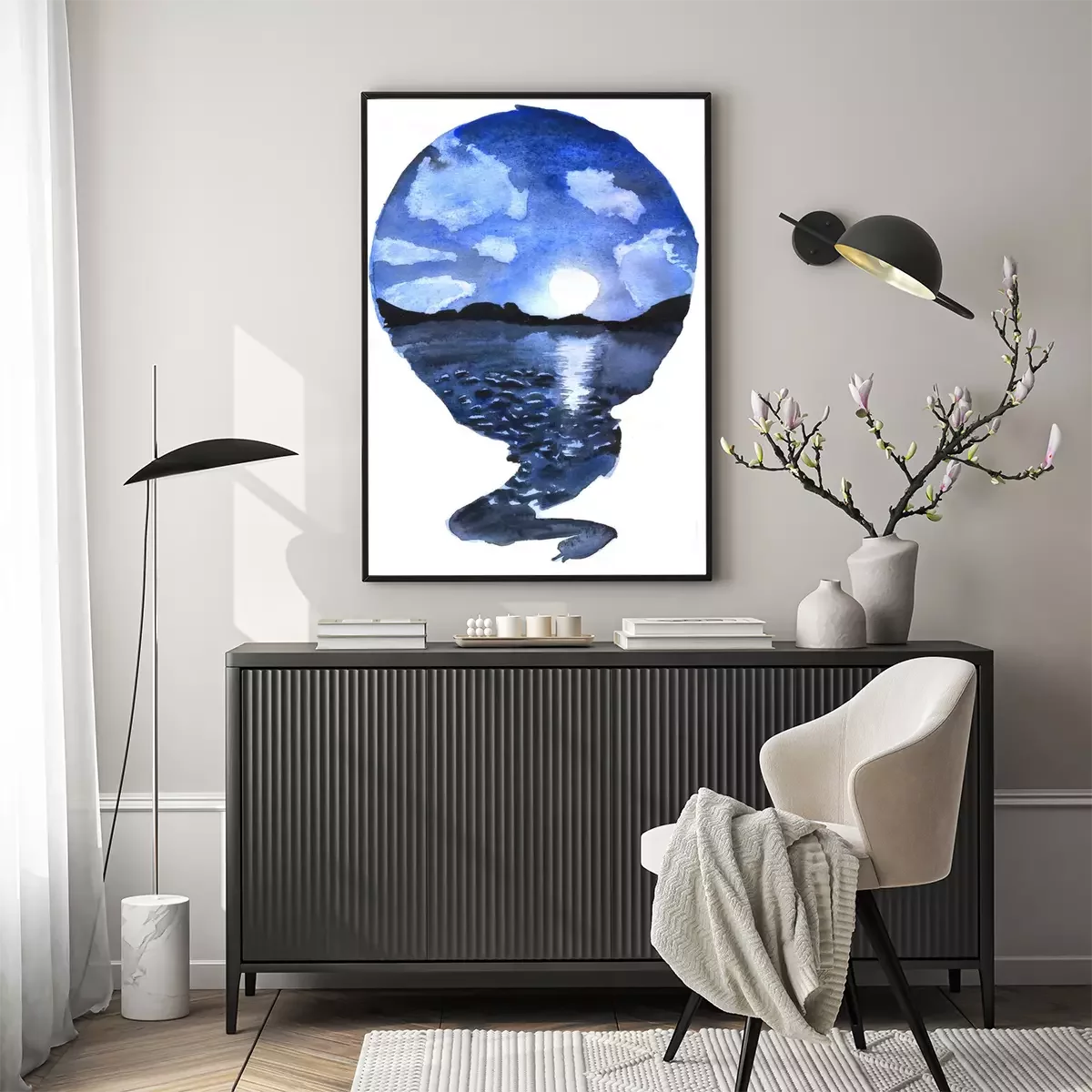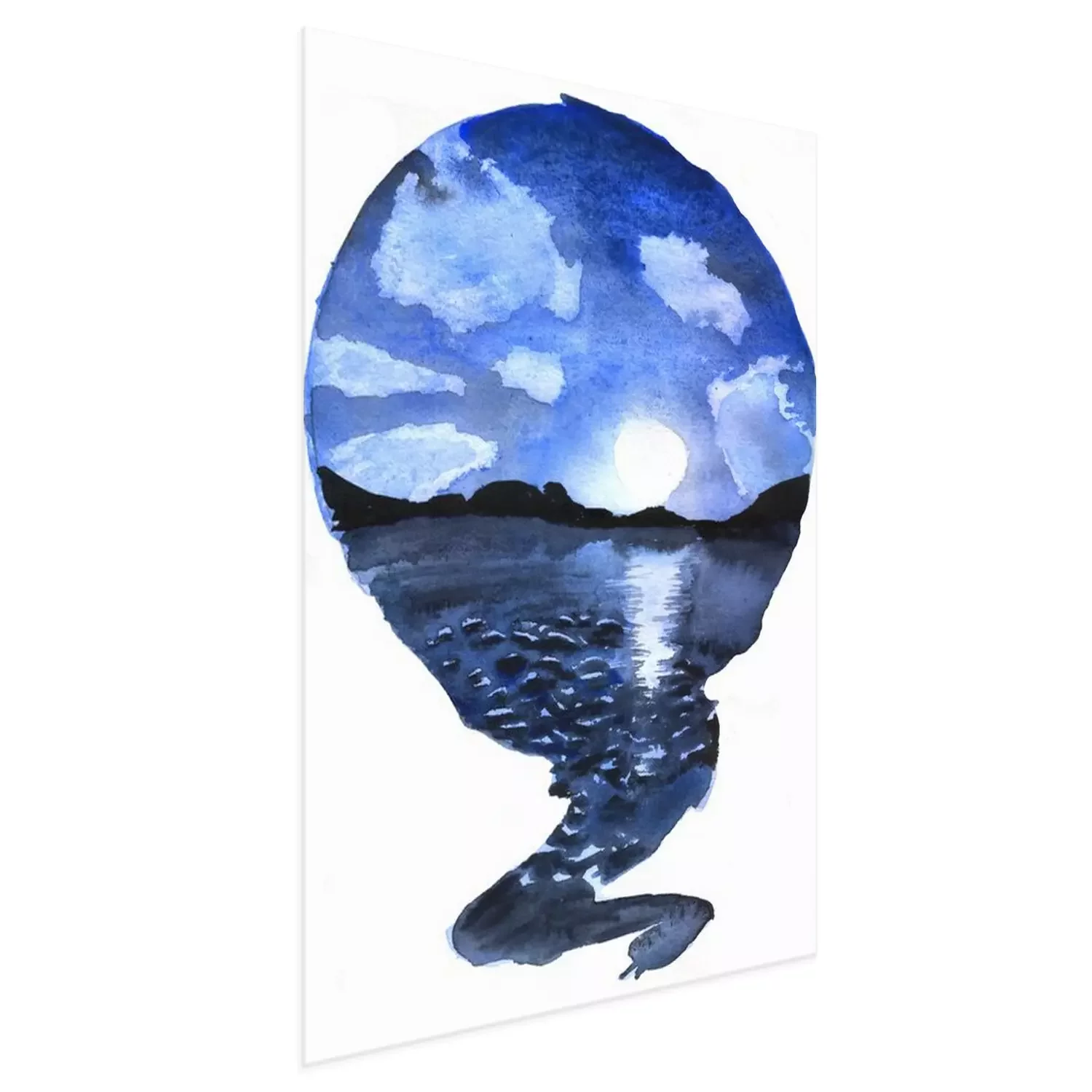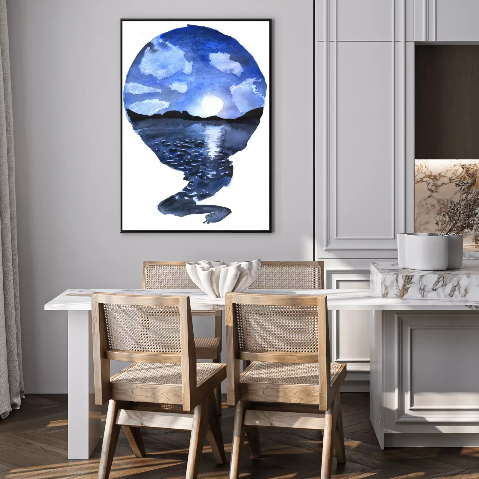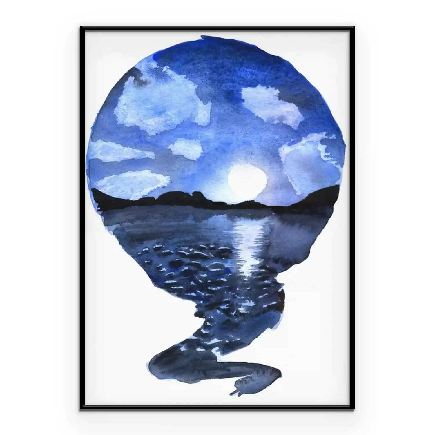 Poster: Aquarell-Meereslandschaft im Mondlicht