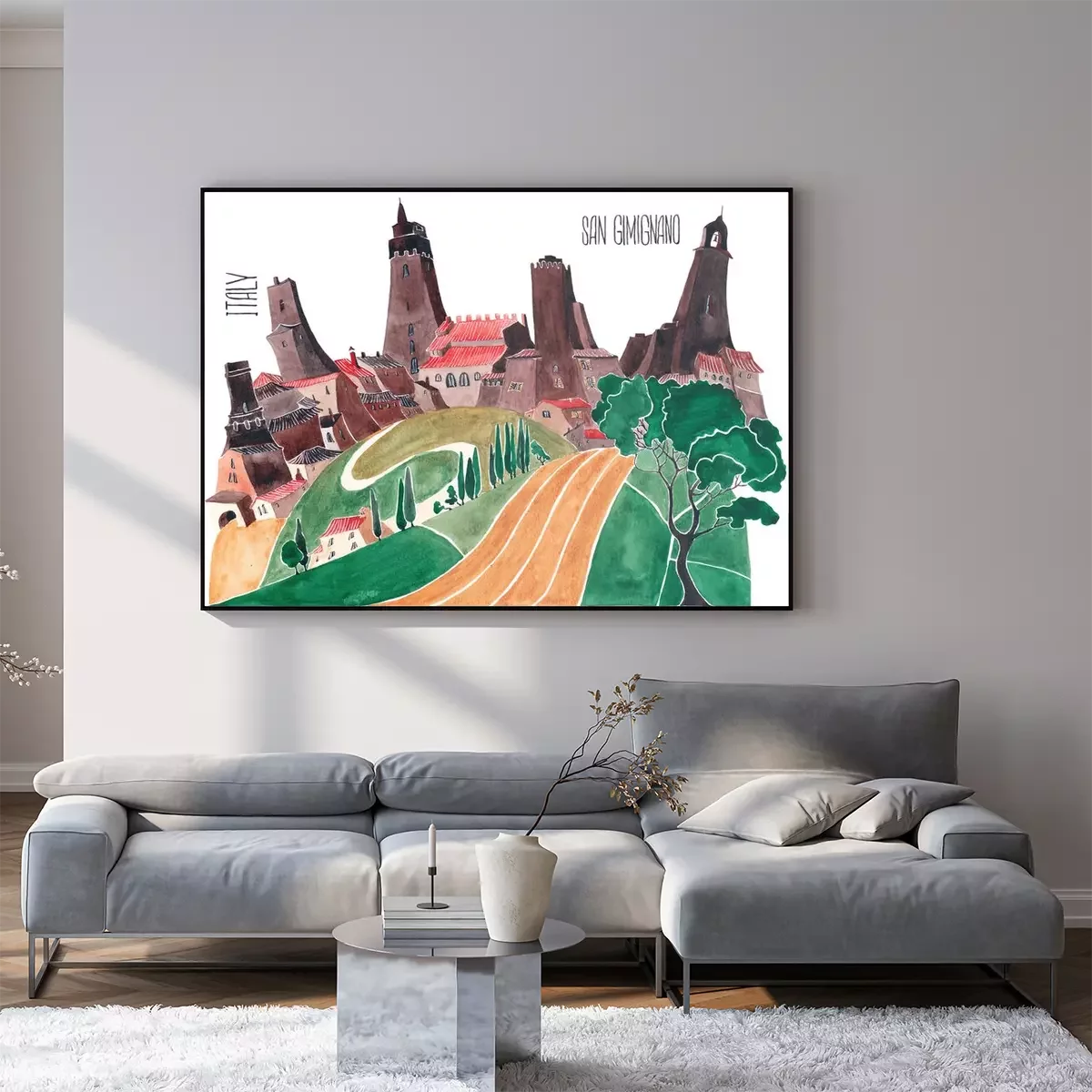Poster Aquarell mit Gebäuden der Toskana