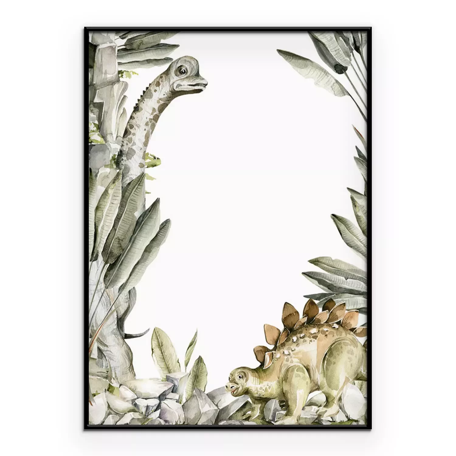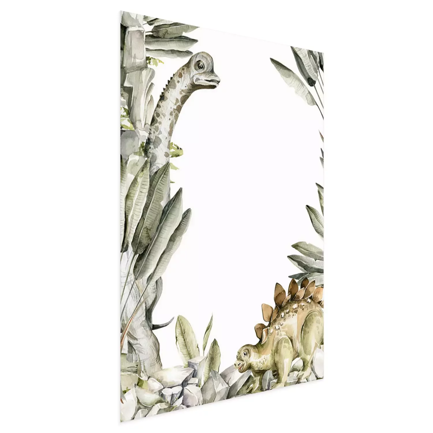 Aquarell-Dinosaurier inmitten von exotischen Blättern