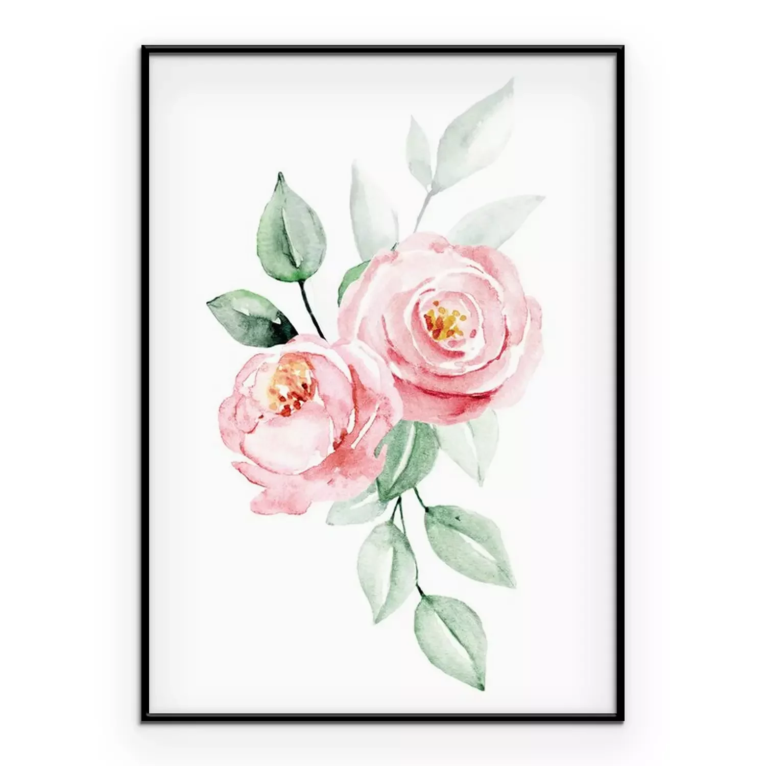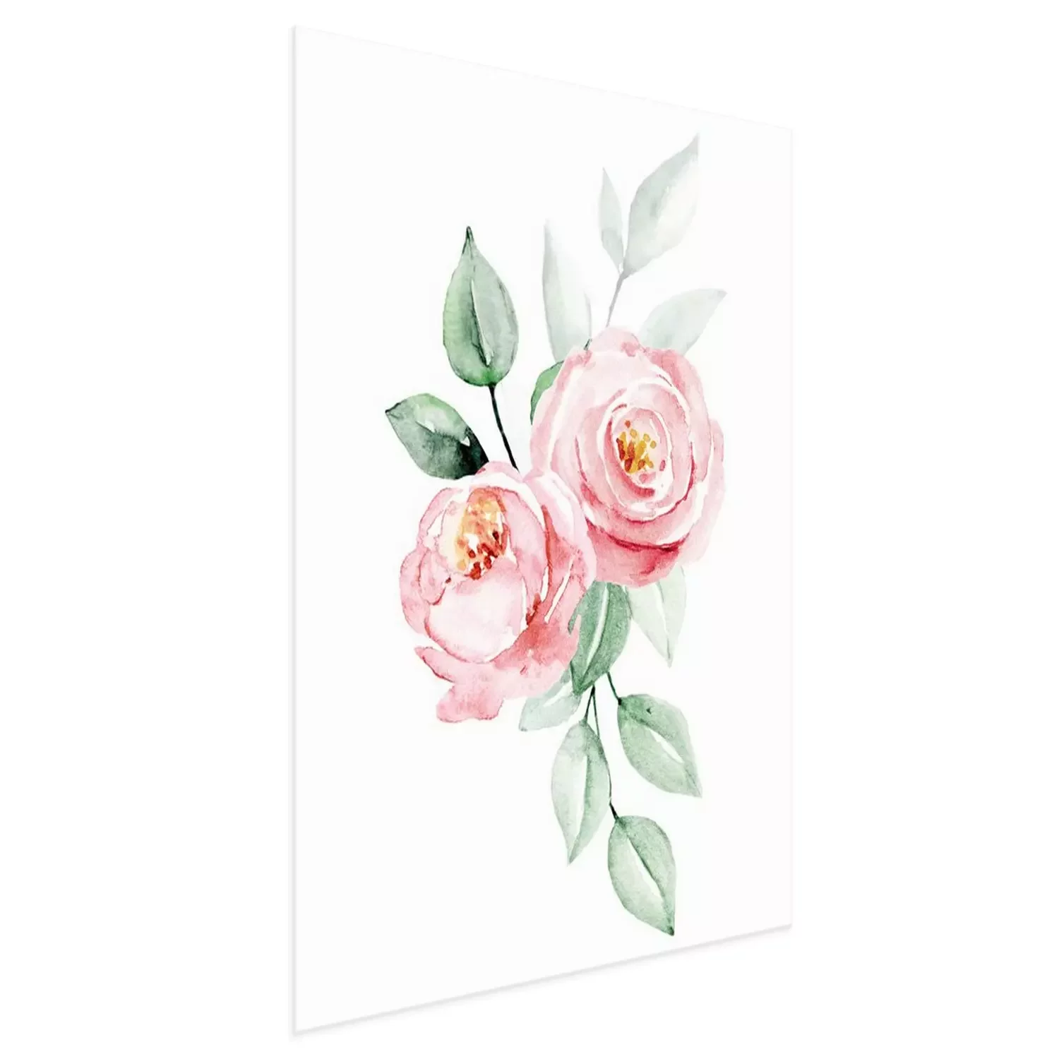 Poster: Aquarell Rosen auf einem Hintergrund von unscharfen Blättern