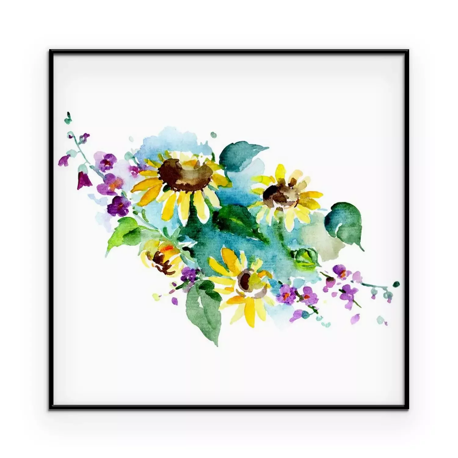 Poster: Aquarell-Sonnenblumen im romantischen Strauß