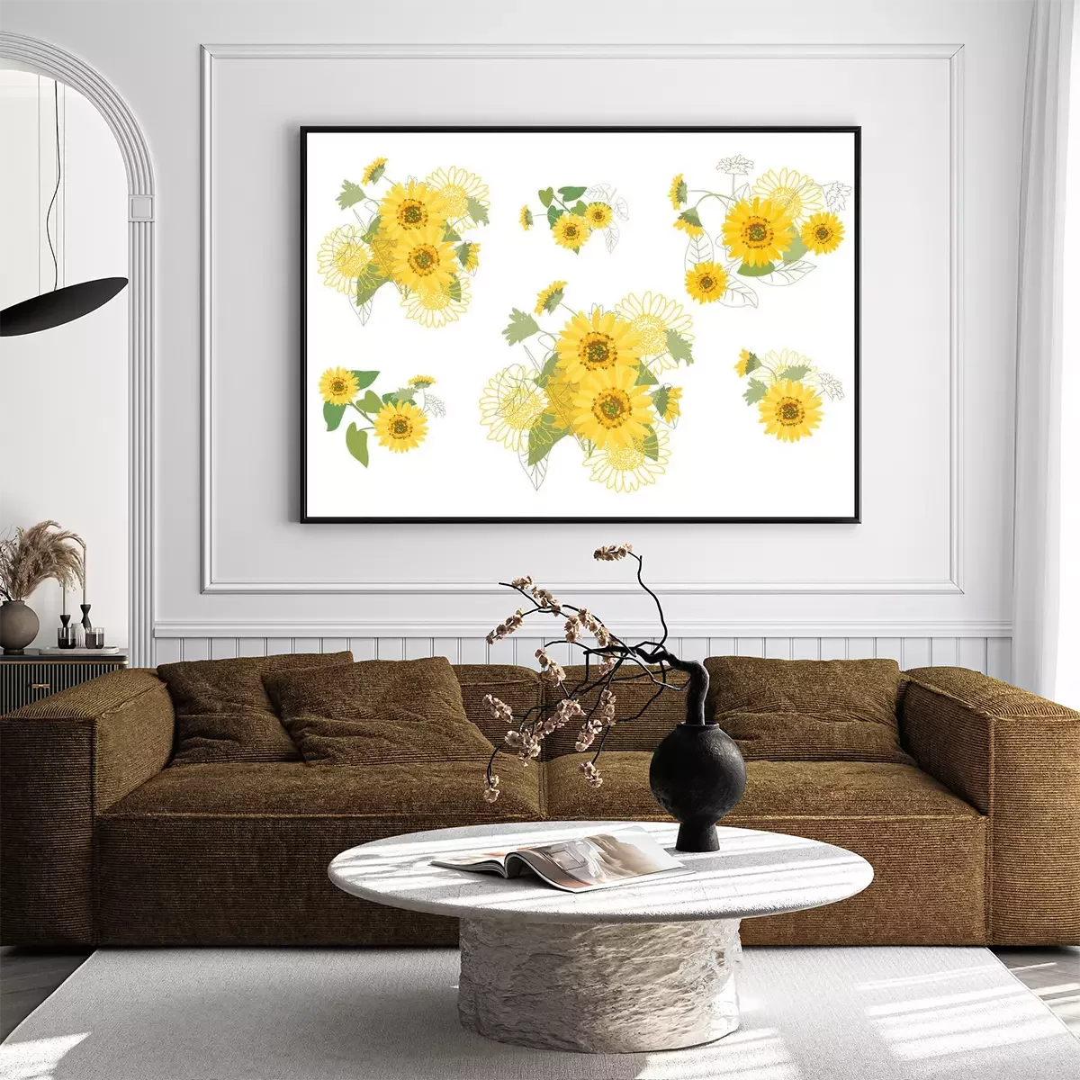 Poster: Aquarell-Sonnenblumen ohne Stängel
