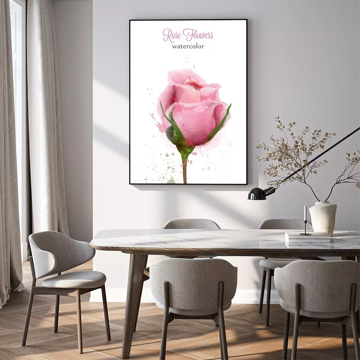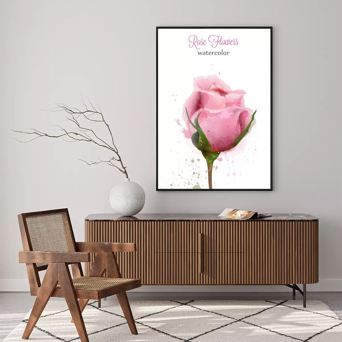 Poster: Aquarellrose mit Farbflecken bespritzt