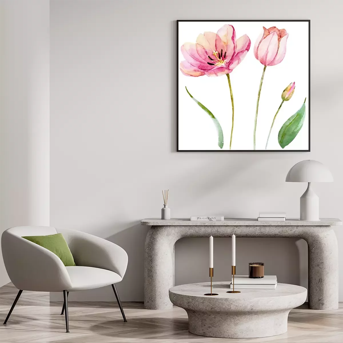 Poster: Aquarelltulpen in verschiedenen Entwicklungsstadien