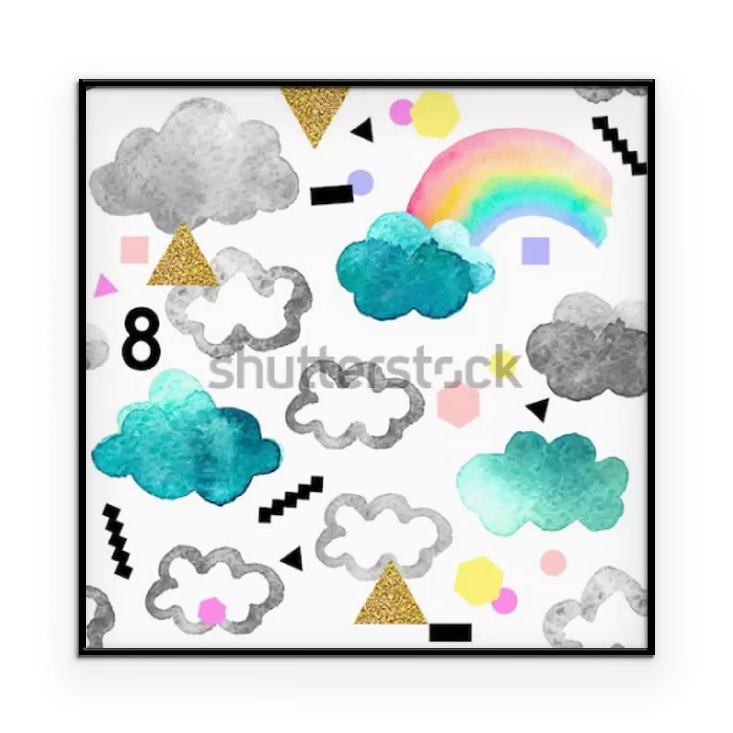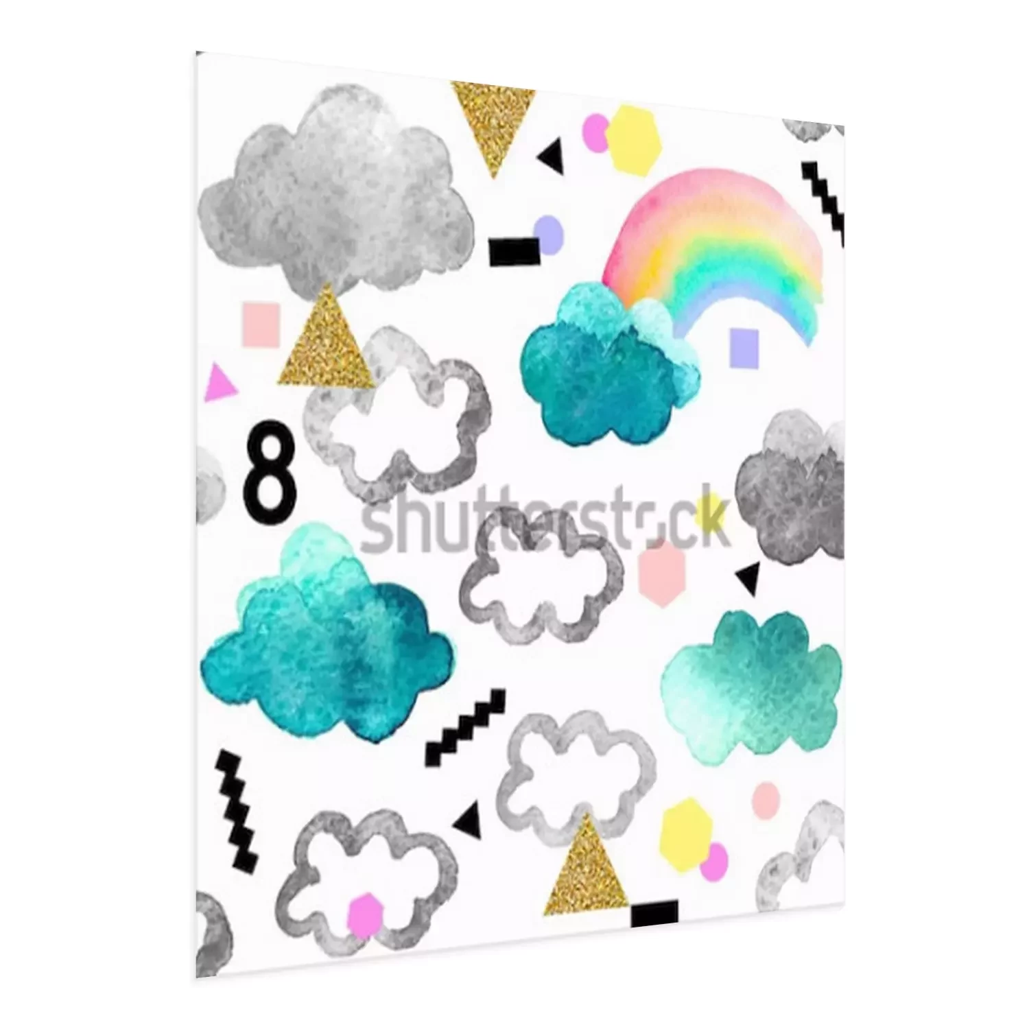 Poster: Aquarellwolken und ein mehrfarbiger Regenbogen