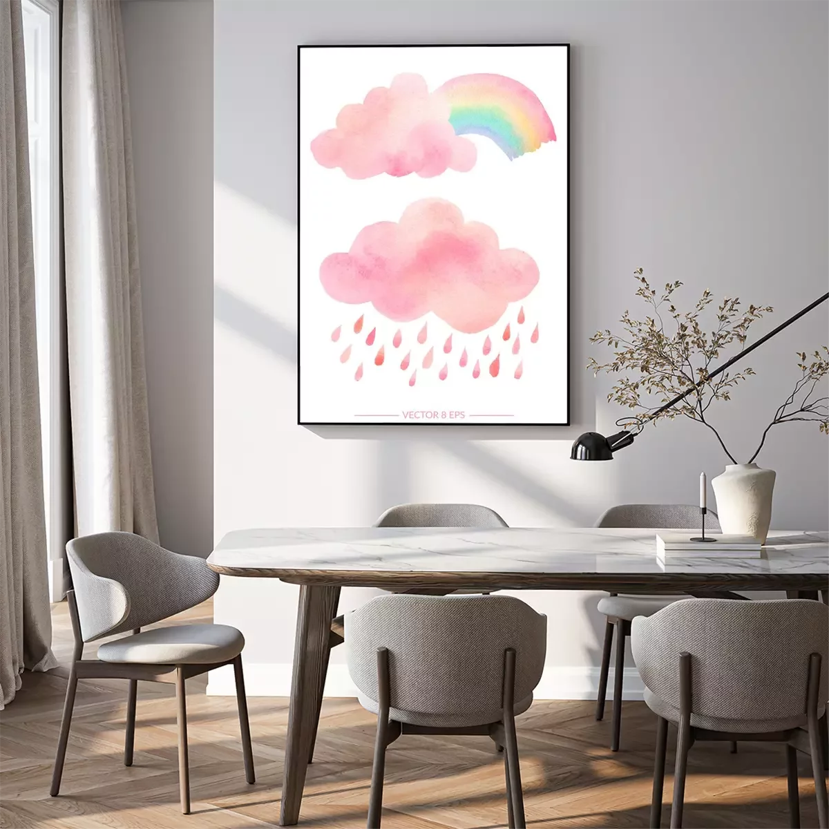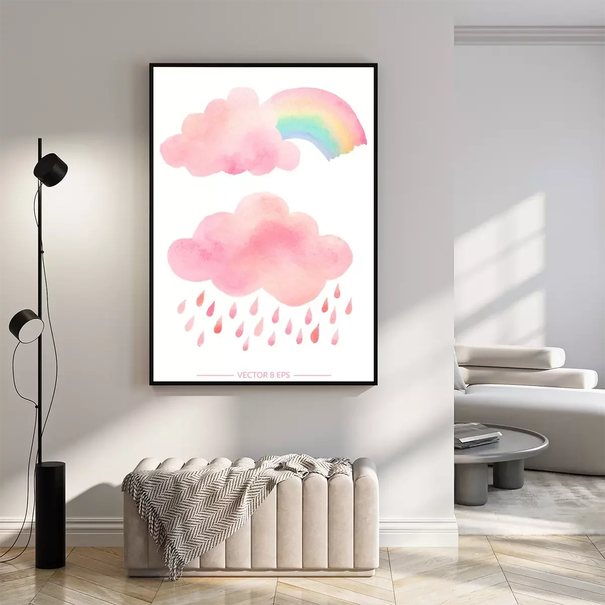 Poster: Aquarellwolken und Regenbogen