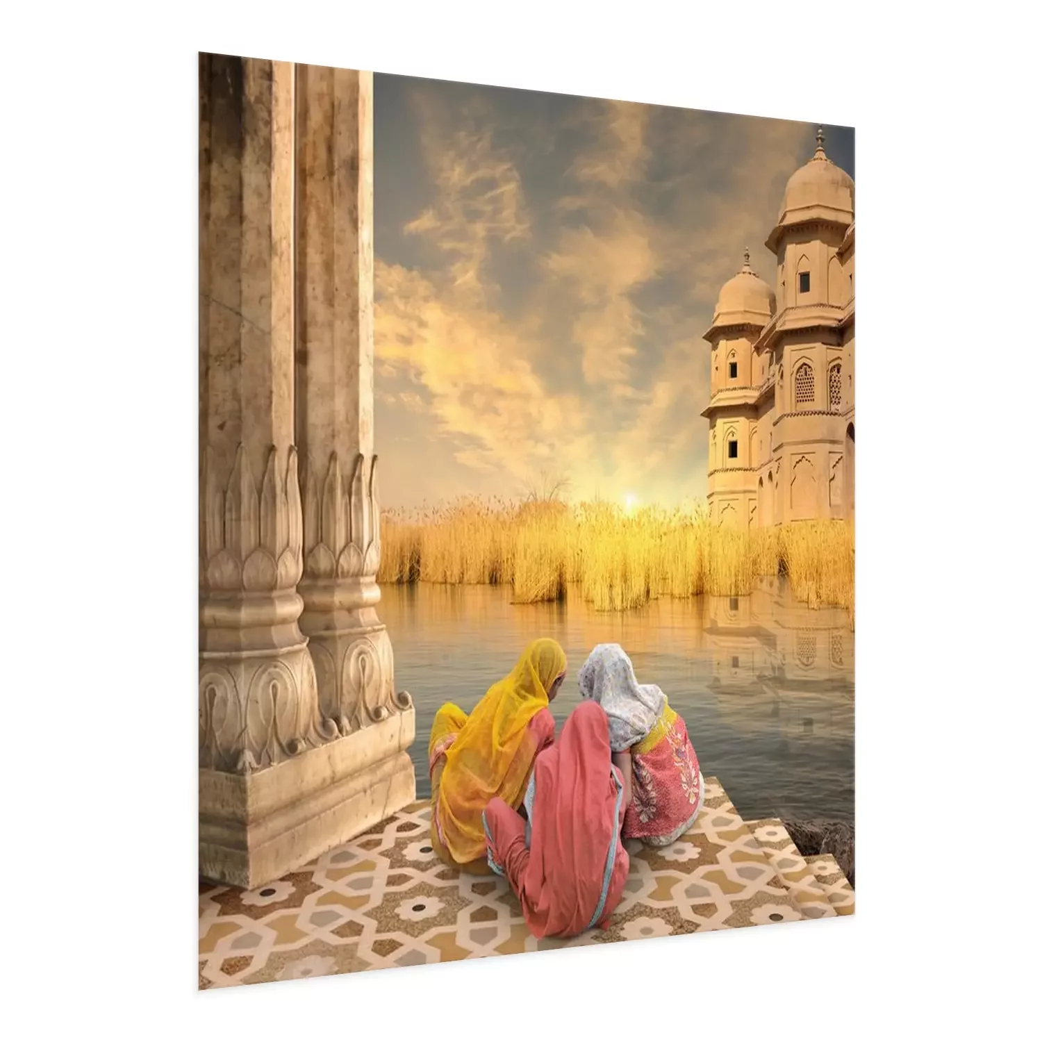 Poster: Asien Landschaft drei Frauen in einem Tempel
