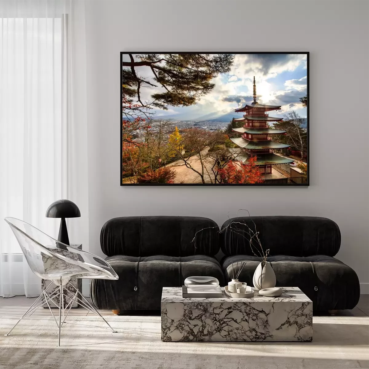 Poster Asien-Panorama vom Hügel mit dem Tempel