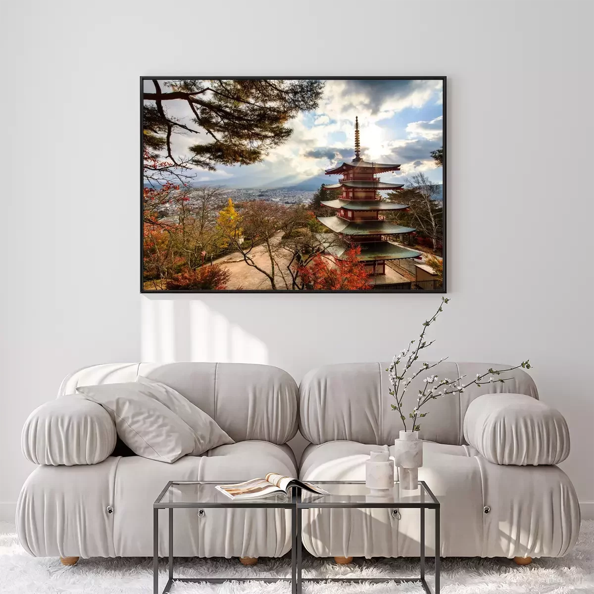 Poster: Asien-Panorama vom Hügel mit dem Tempel