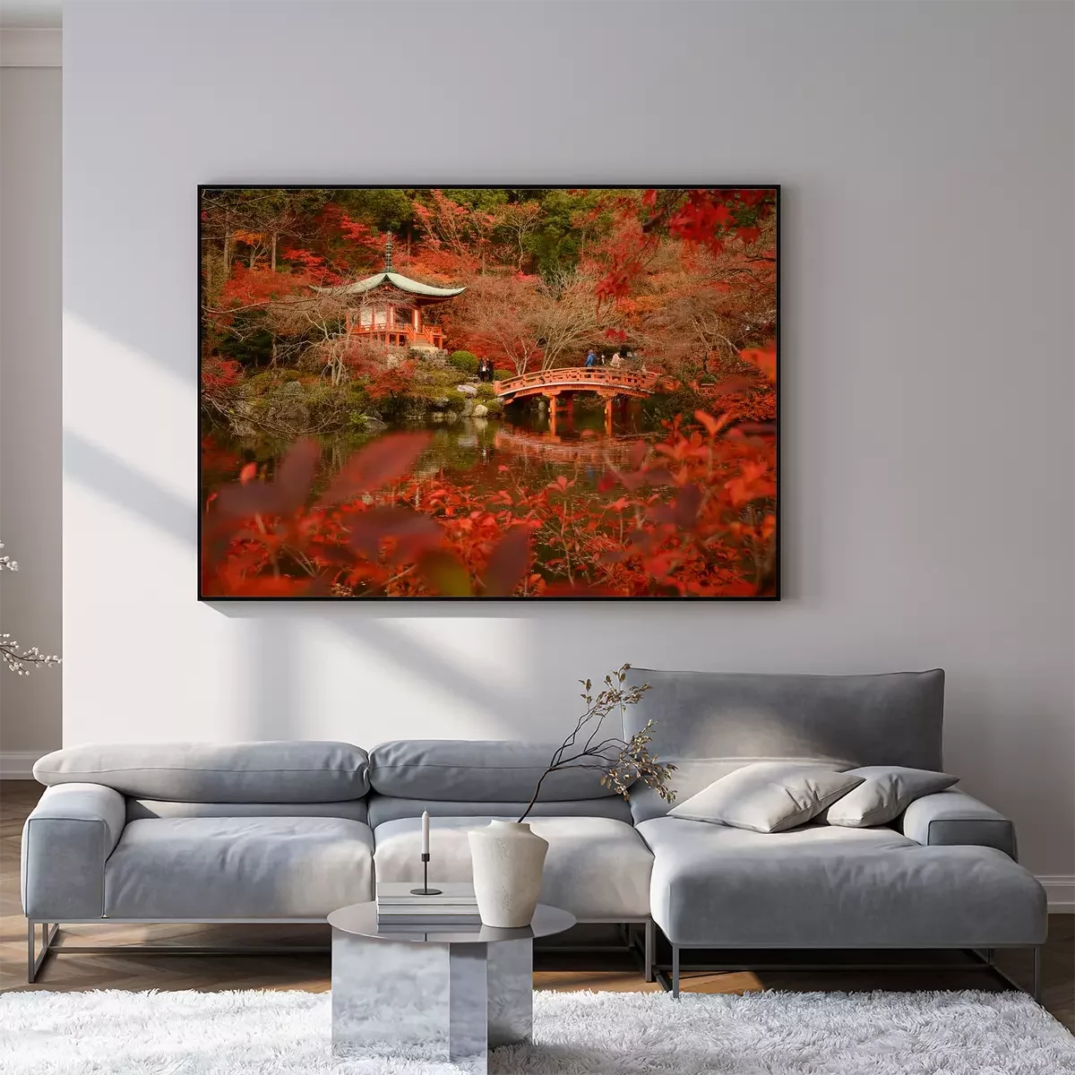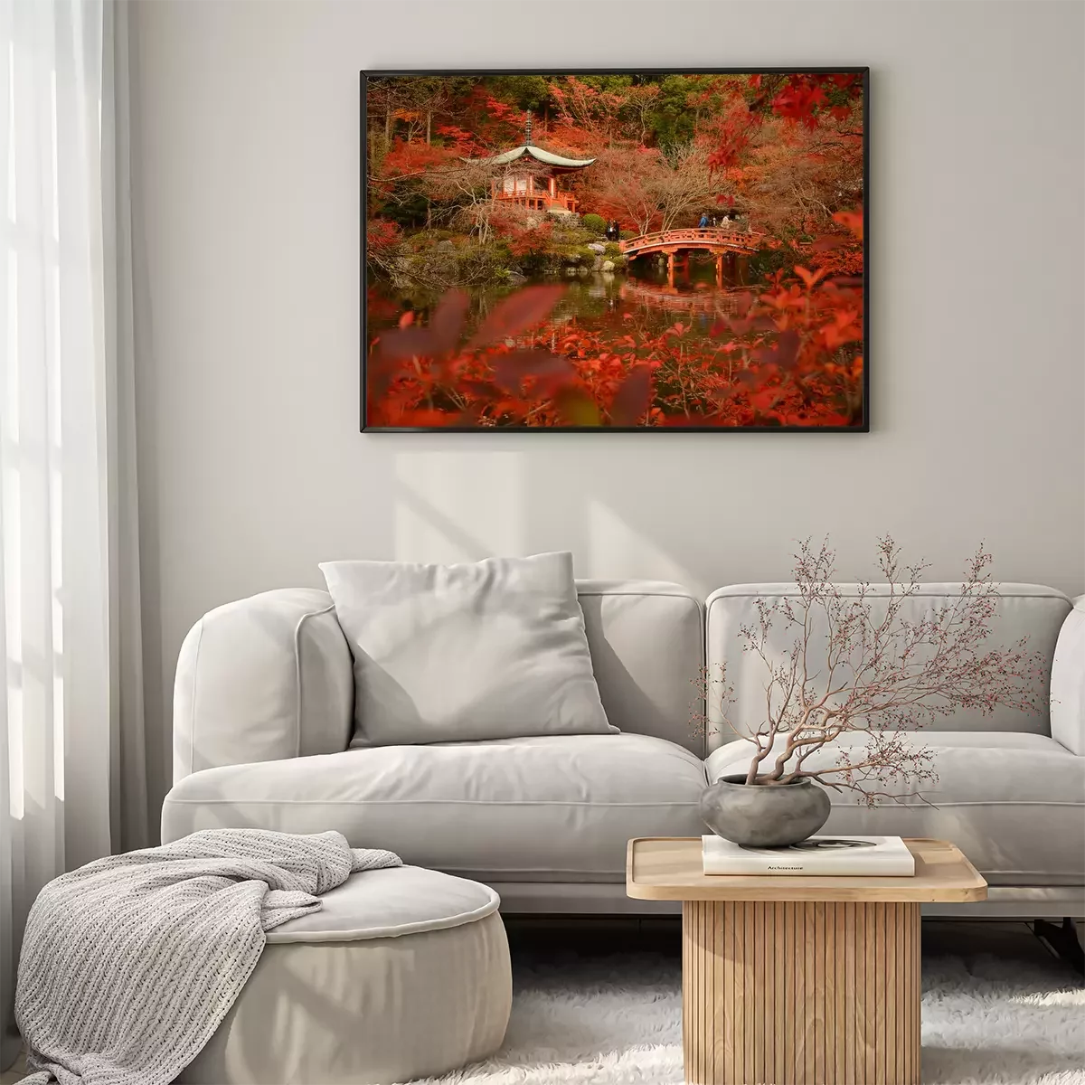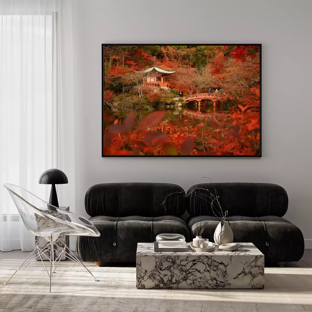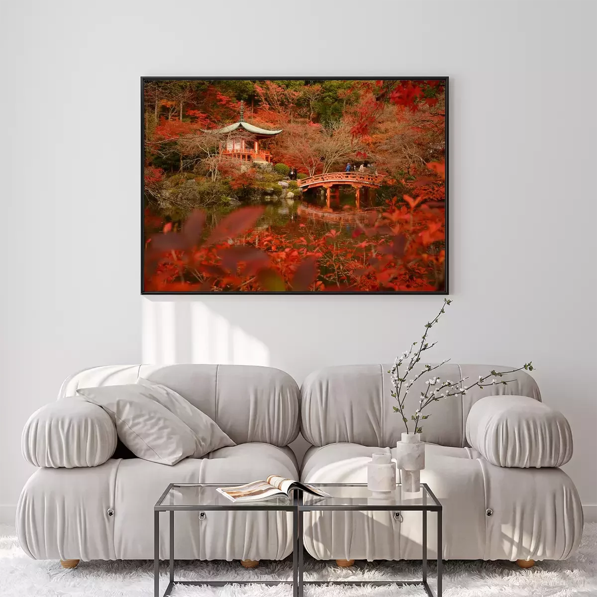 Poster: Asien Tempel inmitten von grünen und roten Pflanzen